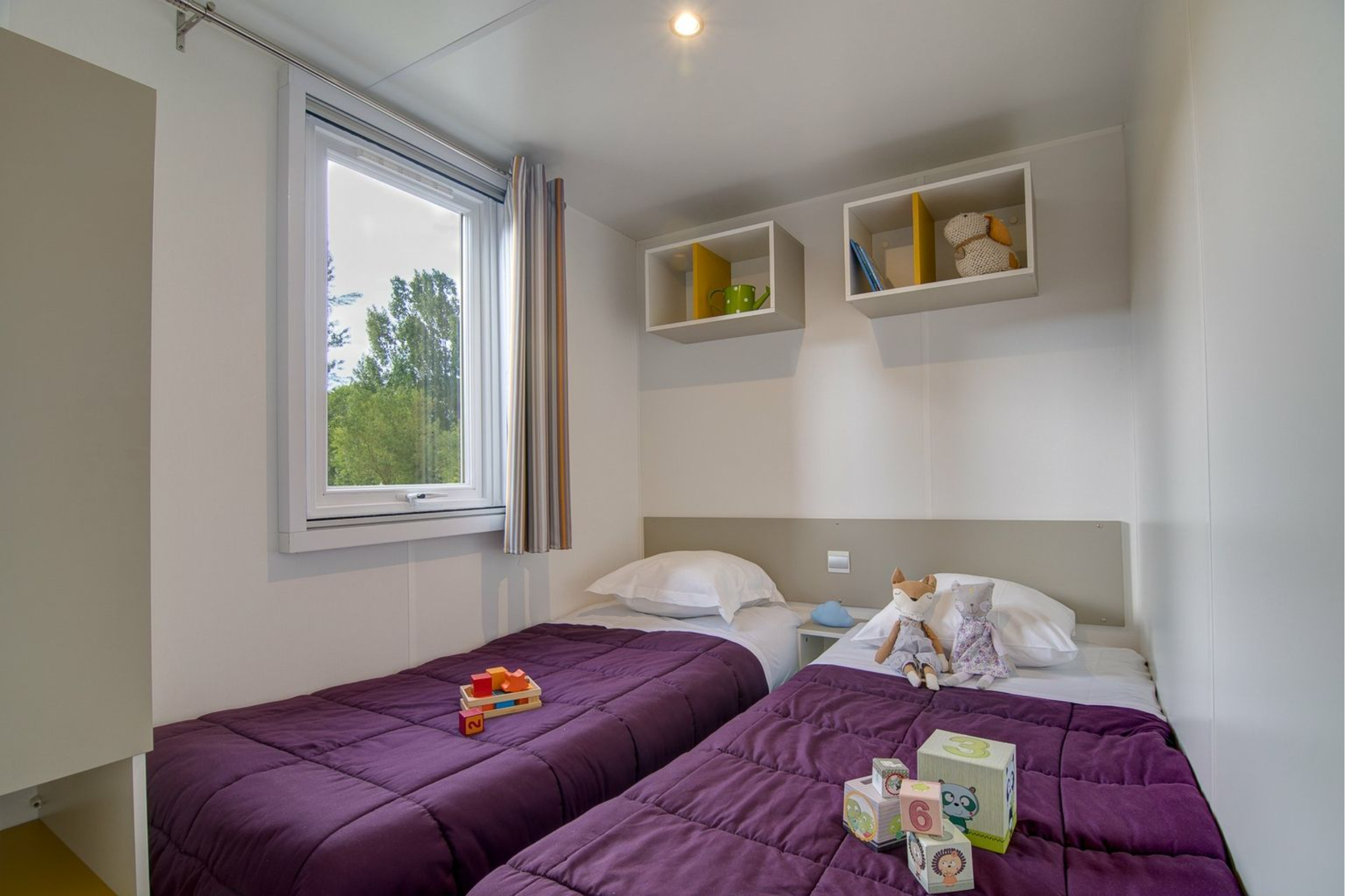 Een verblijf in Parijs met familie of vrienden wordt nog aangenamer wanneer u kunt genieten van een comfortabele, volledig uitgeruste stacaravan die plaats biedt aan maximaal zes personen. Het interieur is zorgvuldig ontworpen om privacy en gezellig samenzijn in balans te brengen, met ruime leefruimtes waar iedereen zich kan ontspannen. De lichte woonkamer nodigt uit tot gedeelde momenten, zowel tijdens een maaltijd binnen als op het half overdekte houten terras.