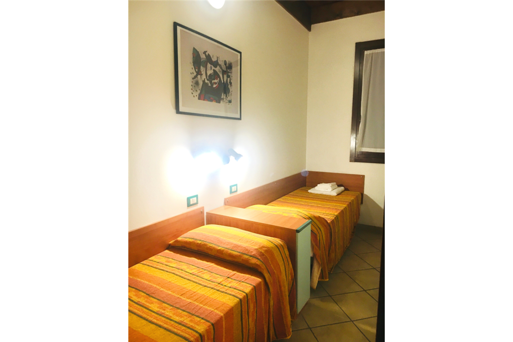 - 1 slaapnis met 2 eenpersoonsbedden (waarvan één uitschuifbaar) of stapelbedden (aanbevolen voor kinderen)