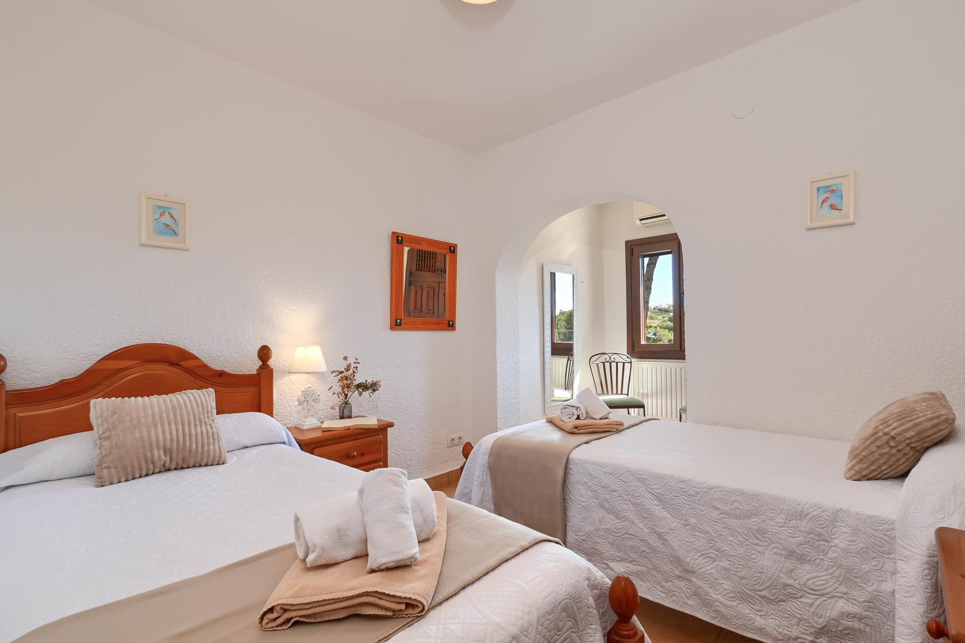 2 slaapkamers met airconditioning, elk met 2 eenpersoonsbedden (200 x 90 cm)