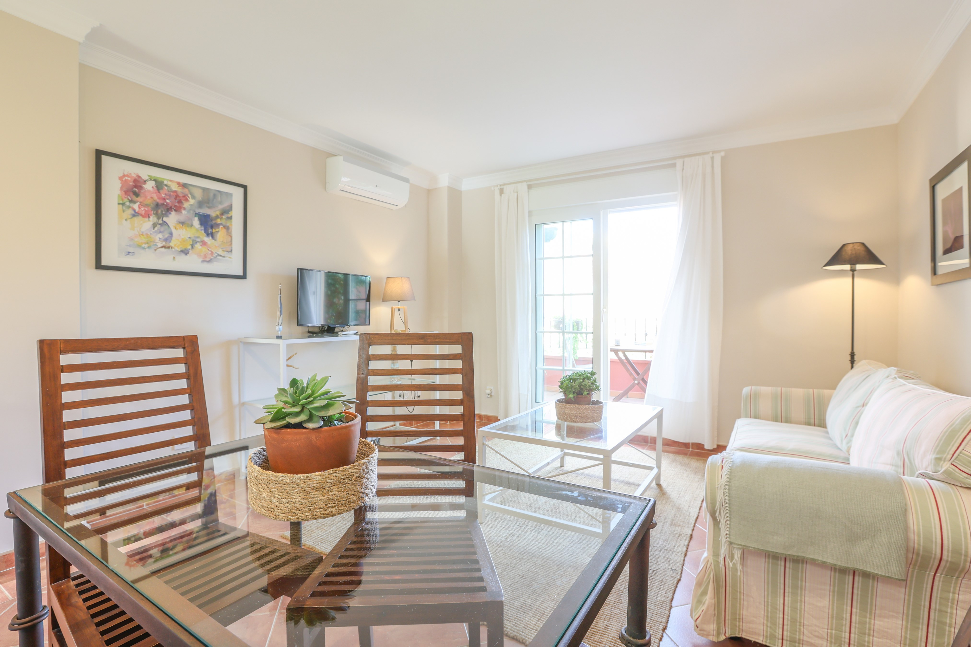 Gelegen op de eerste verdieping, biedt het gezellige interieur een uitnodigende sfeer. Begin de dag met een ontbijt op het gemeubileerde terras met uitzicht op de tuin. Binnen is de woon-eetkamer zeer licht en uitgerust met airconditioning, Smart TV en een comfortabele slaapbank waar twee gasten kunnen rusten. De keuken, voorzien van een keramische kookplaat, heeft alle benodigde keukengerei om comfortabel te koken en je thuis te voelen. De slaapkamer heeft een tweepersoonsbed, en de badkamer, met een bad, maakt je verblijf compleet. Verder is er een wasmachine, strijkijzer en strijkplank. Houd er rekening mee dat er geen wieg of hoge stoel op het terrein aanwezig zijn.