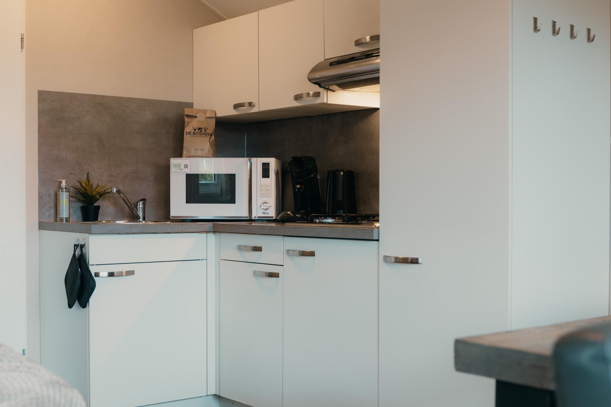 Deze accommodatie bestaat uit twee Veluwelounges die naast elkaar liggen. De genoemde faciliteiten zijn dus verdeeld over beide chalets.