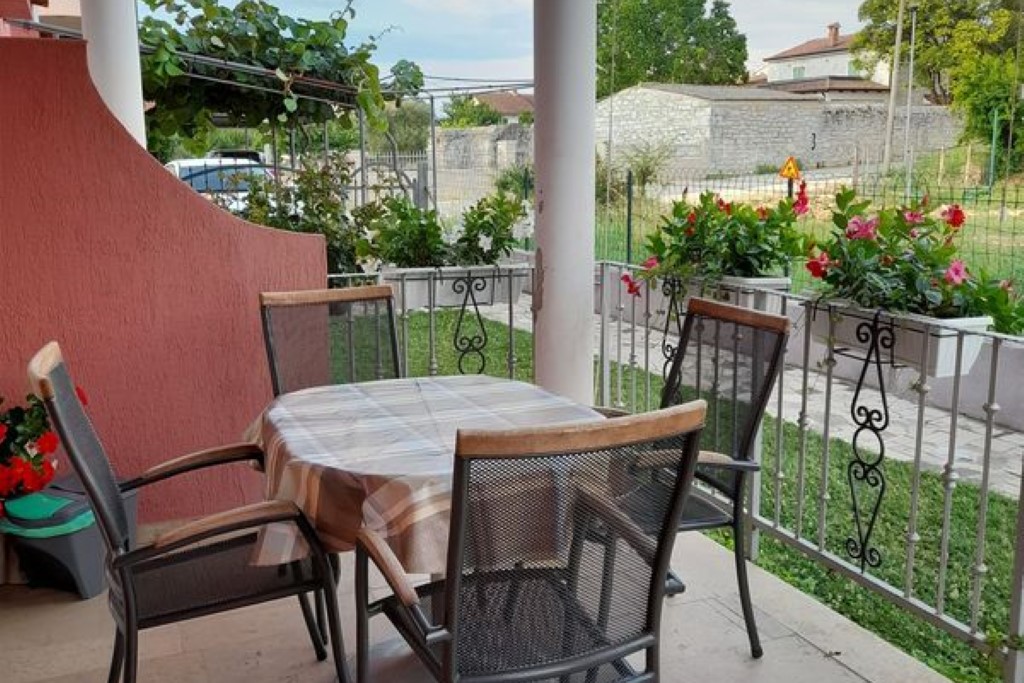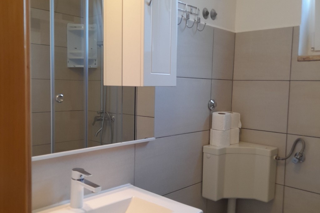 Het appartement is gelegen op de begane grond, heeft een oppervlakte van 35m2, en biedt onderdak voor 3 personen. In de aparte slaapkamer bevinden zich een tweepersoonsbed en een éénpersoonsbed. Er bestaat de mogelijkheid, nog een derde persoon op de canapé in de woonkamer/eetkamer onder te brengen. In de comfortabel ingerichte woonkamer bevindt zich een satelliet televisie, en verder staat ook een eetkamer ter beschikking. In de keuken zijn er alle nodige huishoudelijke middelen voorhanden, zoals fornuis, koelkast, vaatwerk en servies. De badkamer is uitgerust met douche en toilet. Het appartement is voorzien met airconditioning, en er staat ook een balkon ter beschikking. De gasten kunnen hun auto naast het huis parkeren.