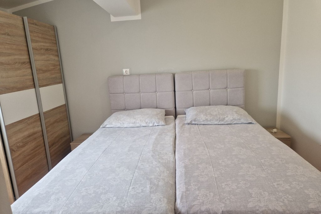 Dit comfortabel ingerichte appartement is gelegen op eerste verdieping, heeft een oppervlakte van 85m2. In het appartement bevinden zich een ruime woonkamer, een eetkamer en een badkamer. Het appartement is uitgerust met alle nodige huishoudelijke middelen. De twee aparte slaapkamers bieden plaats voor 4 personen. Op het uittrekbare bed in de woonkamer kunnen maar nog verdere twee personen (volwassenen) ondergebracht worden. De mooi ingerichte woonkamer is voorzien met een satelliet televisie, hier kunnen de gasten gezellig samen eten. De woonkamer gaat open op een groot terras. Het appartement is voorzien met airconditioning en centrale verwarming, daardoor is het ideaal ook voor wintervakantie. De gasten kunnen hun auto naast het huis parkeren.