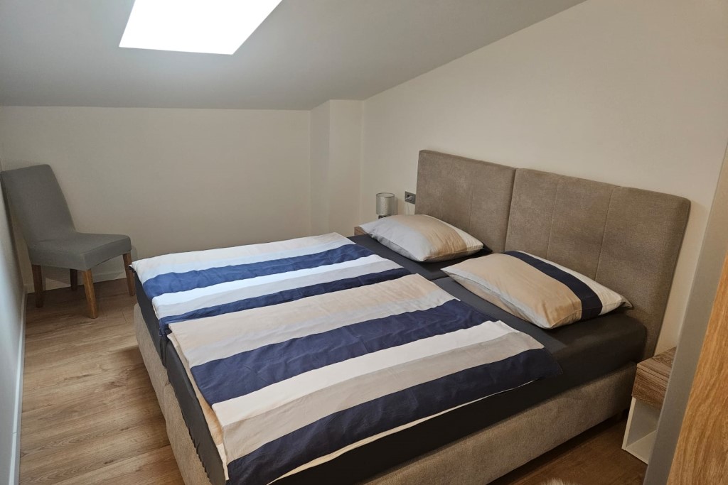 Leuk appartement van 65m2 met 2 slaapkamers. De eerste slaapkamer heeft 2 eenpersoonsbedden die naar wens samengevoegd of gescheiden kunnen worden, en 1 tweepersoonsbed. De tweede kamer heeft 2 eenpersoonsbedden. De gezellige woonkamer heeft een slaapbank waar een extra persoon kan slapen. De keuken is voorzien van alle benodigde apparatuur. De badkamer heeft een douche. Verder vindt u een terras, parkeerplaats voor 1 auto, barbecue, Wi-Fi, TV/SAT.