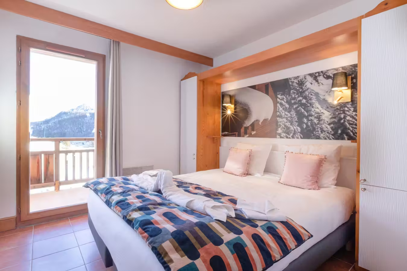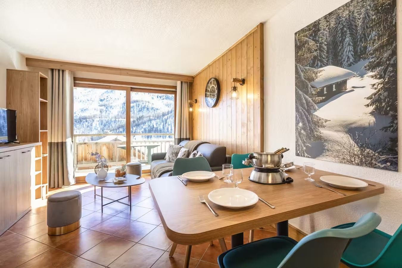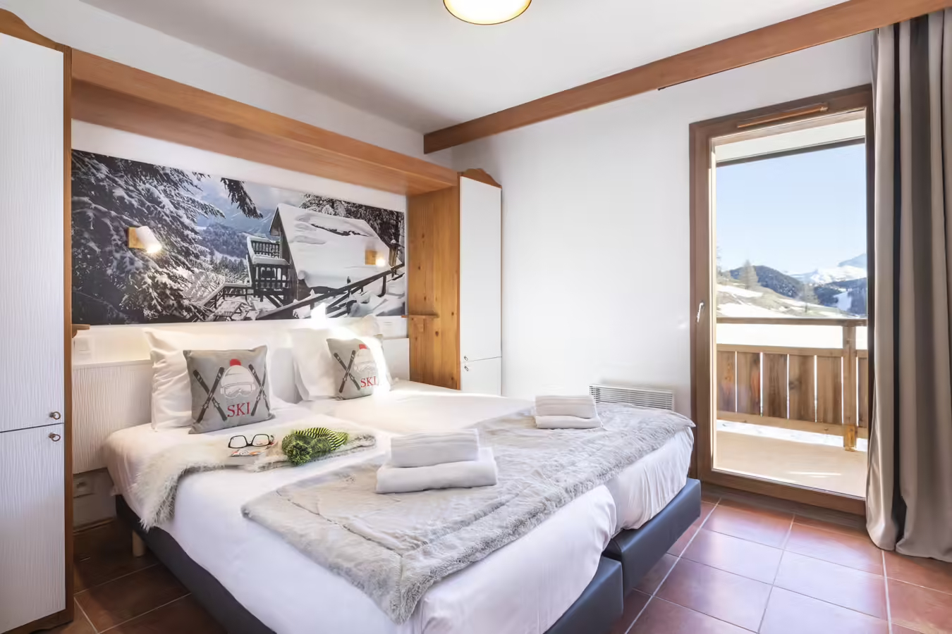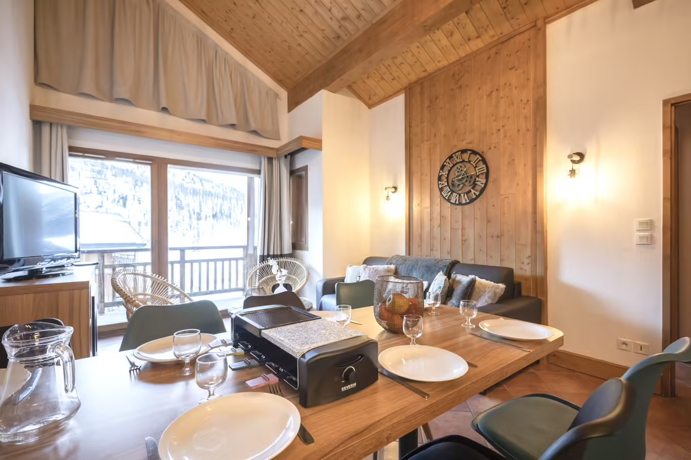 Binnenin vindt u een ruime woon- en eetkamer met een slaapbank of uitschuifbaar bed voor twee personen, een flatscreen-tv met TNT-kanalen, een sfeervolle open haard en toegang tot een privébalkon of terras om van de berglucht te genieten. De open keuken is volledig uitgerust met een keramische kookplaat, vaatwasser, gecombineerde magnetron, koelkast, koffiezetapparaat, waterkoker en broodrooster - alles voor een comfortabel verblijf.