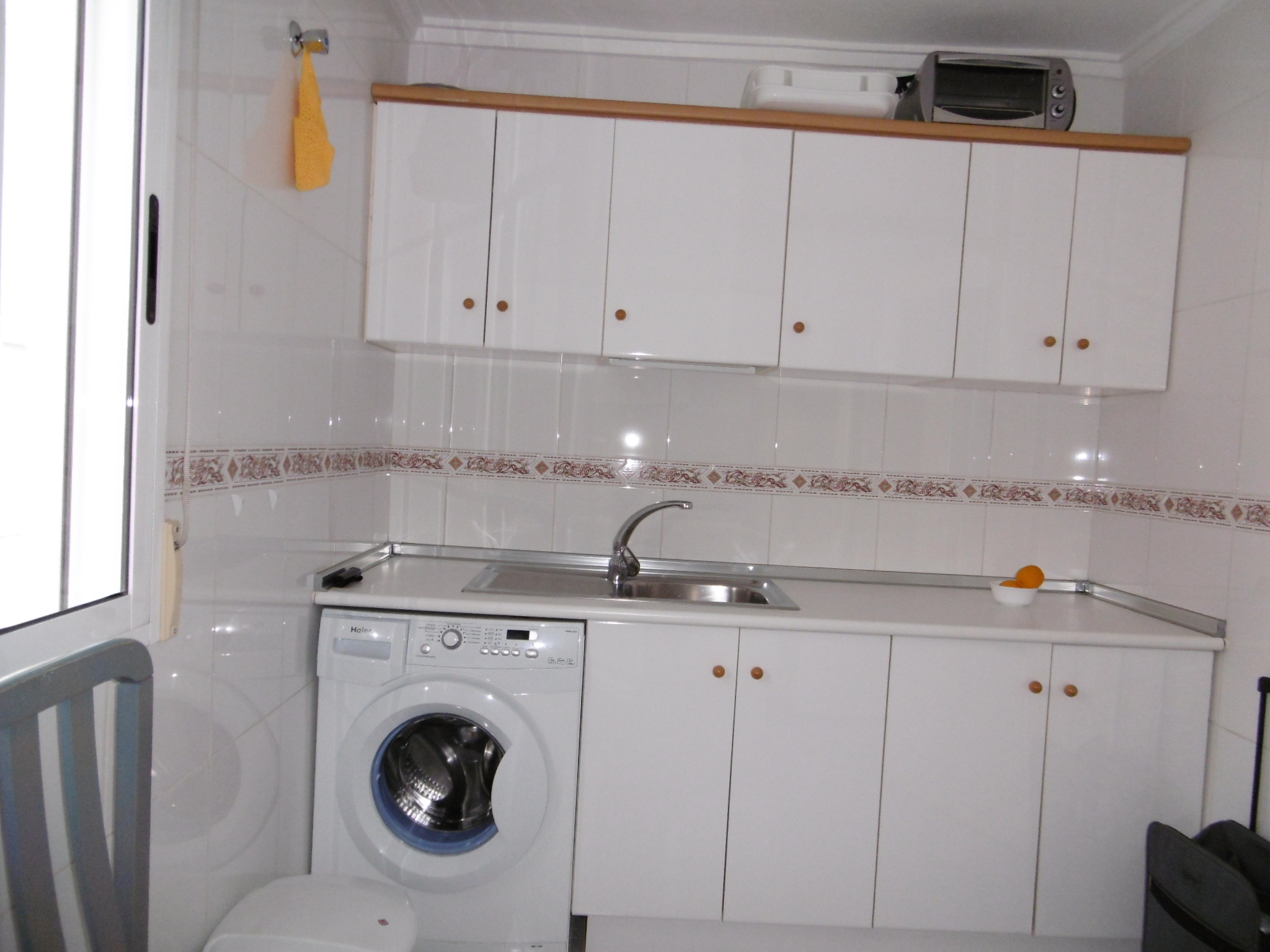 De ingebouwde keuken is volledig uitgerust met een elektrisch fornuis, ingebouwde kasten, een afzuigkap, een koel-/vriescombinatie en een wasmachine. De woon- en eetkamer zijn voorzien van een kledingkast met een tv- en satellietaansluiting (ontvanger), een bank die dient als extra slaapplaats en een tafel. De eethoek heeft een uitschuifbare tafel met stoelen. Voor comfort het hele jaar door is het appartement uitgerust met windafzuigers, een mobiele gaskachel en airconditioning (beschikbaar tegen meerprijs).