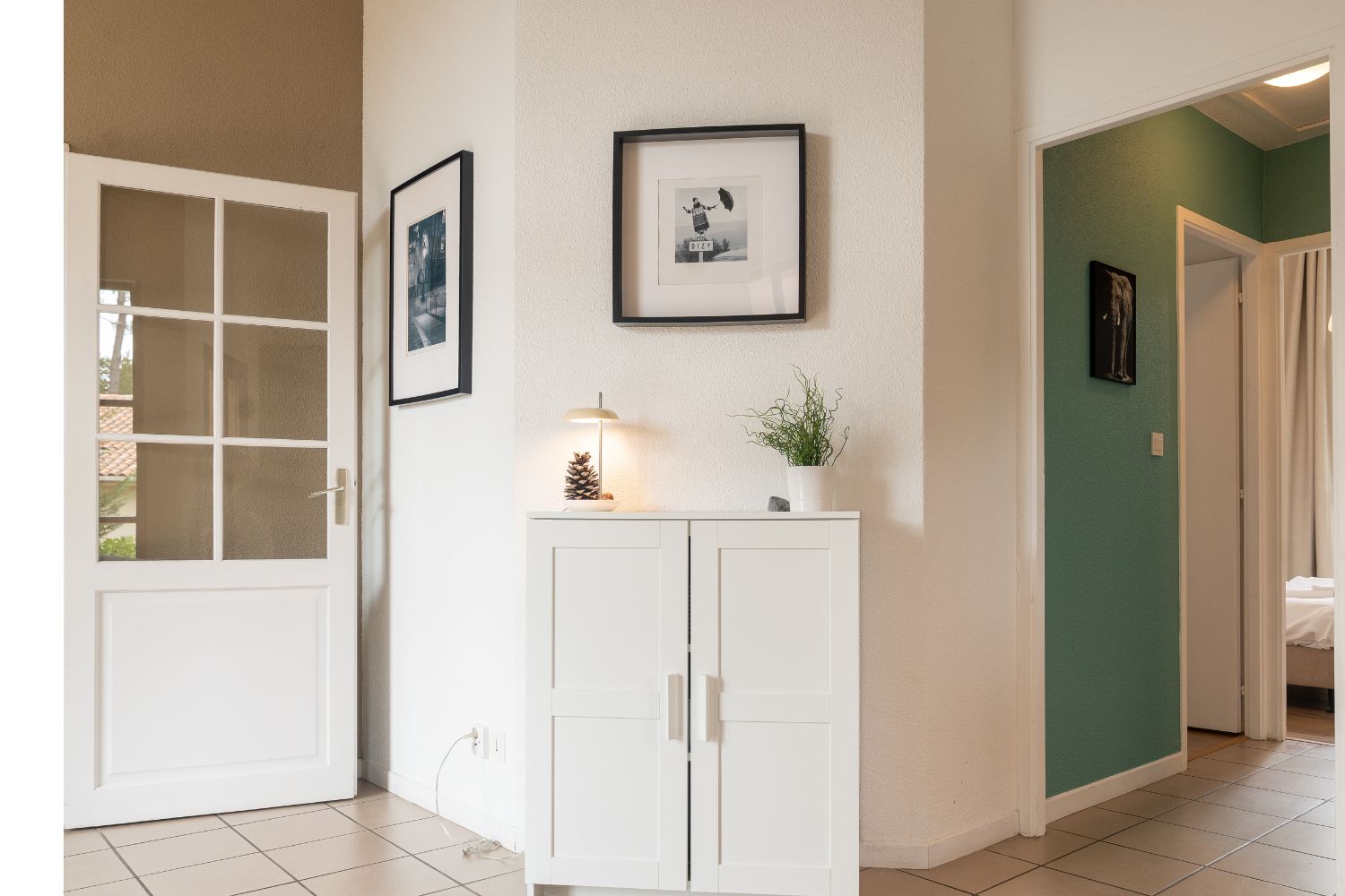 Twee slaapkamers, waarvan één met een tweepersoonsbed en de andere met twee eenpersoonsbedden en kwaliteitsmatrassen, zorgen voor een rustgevende nachtrust. De badkamer heeft zowel een ligbad als een aparte douche, samen met een wastafel en een apart toilet.