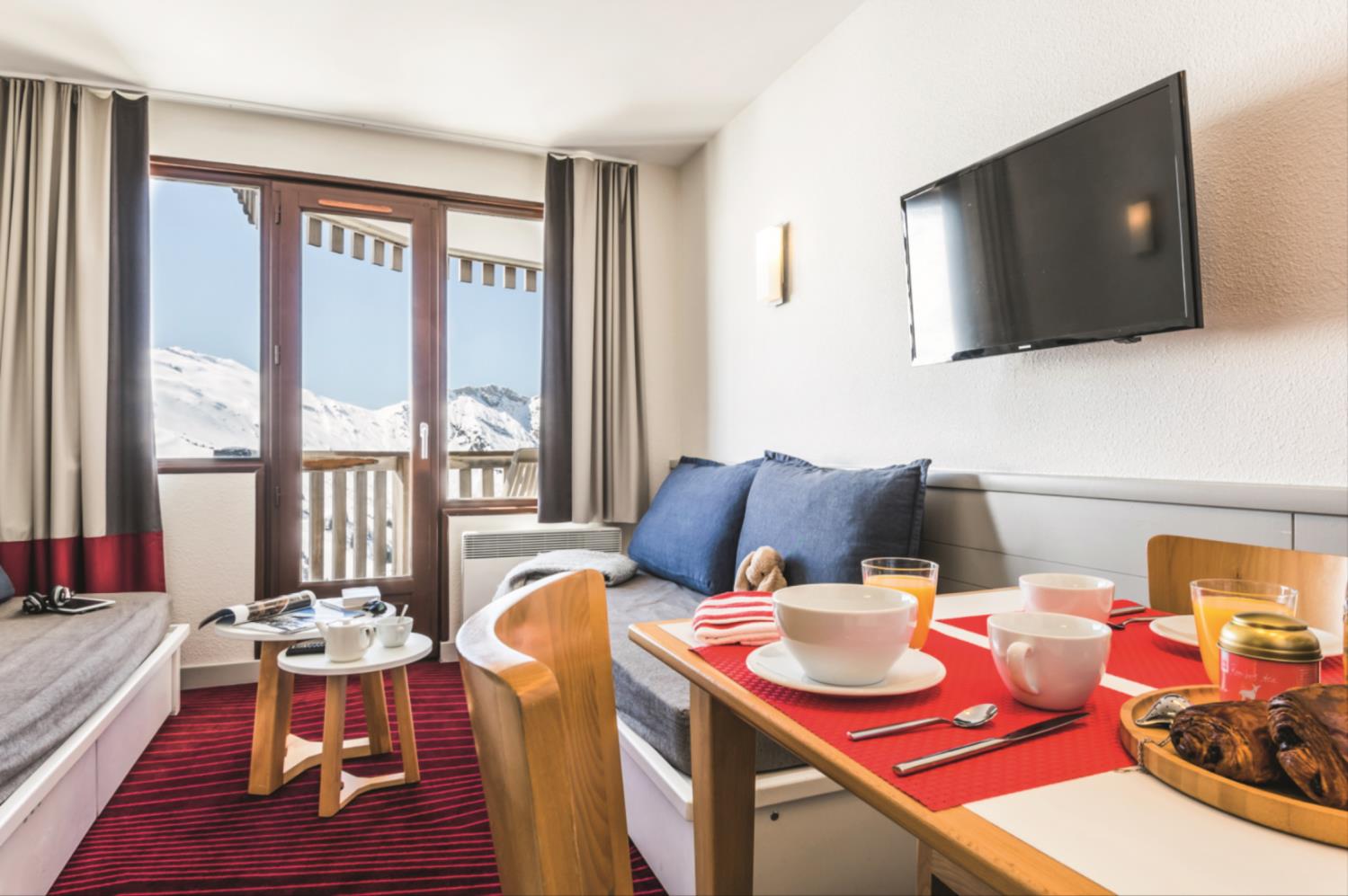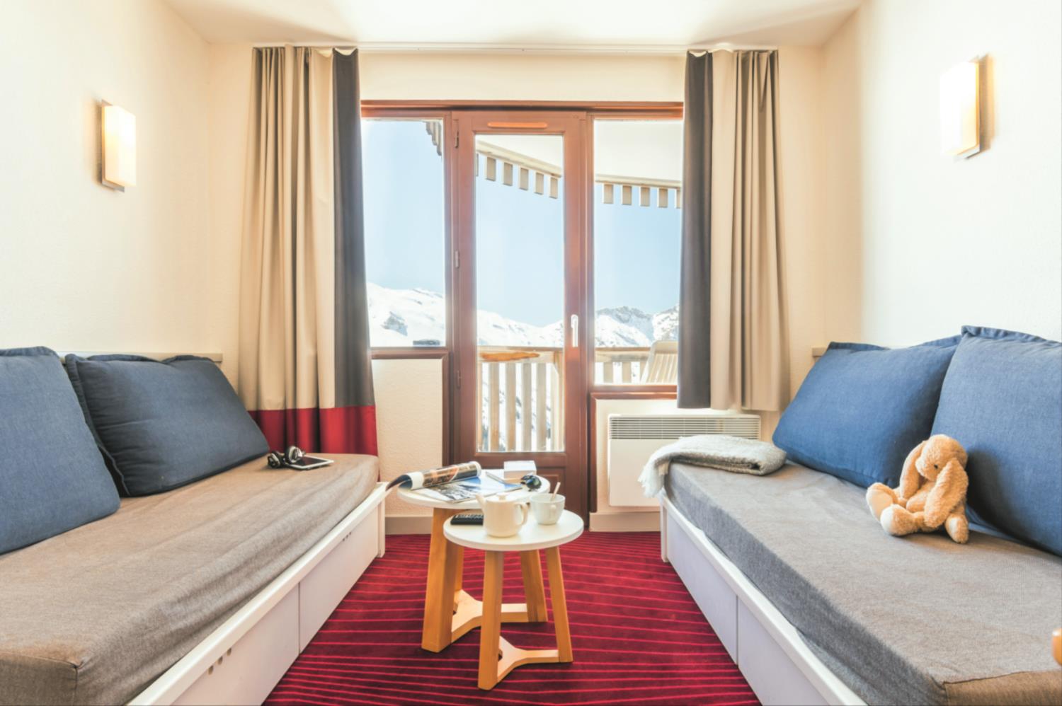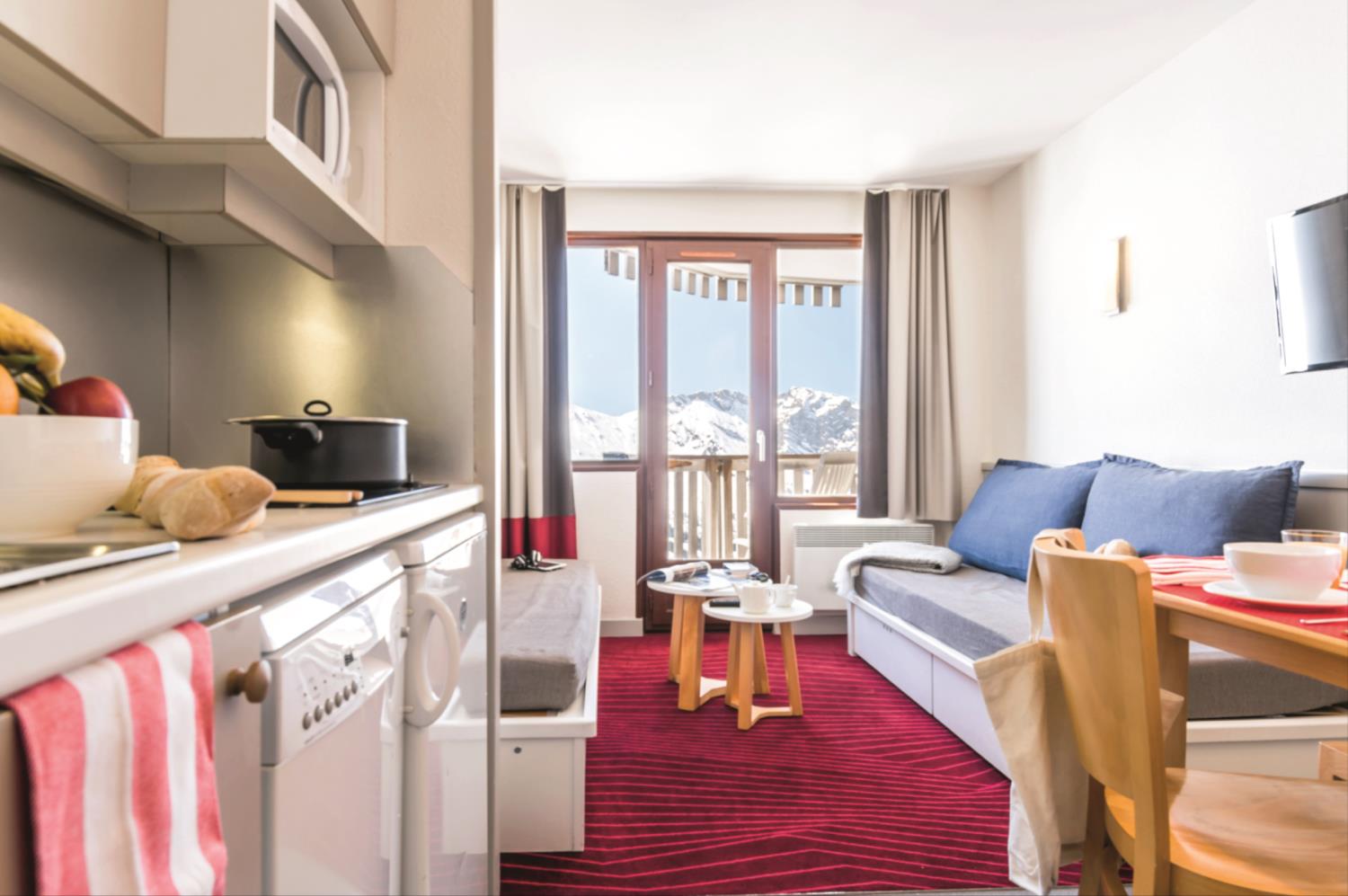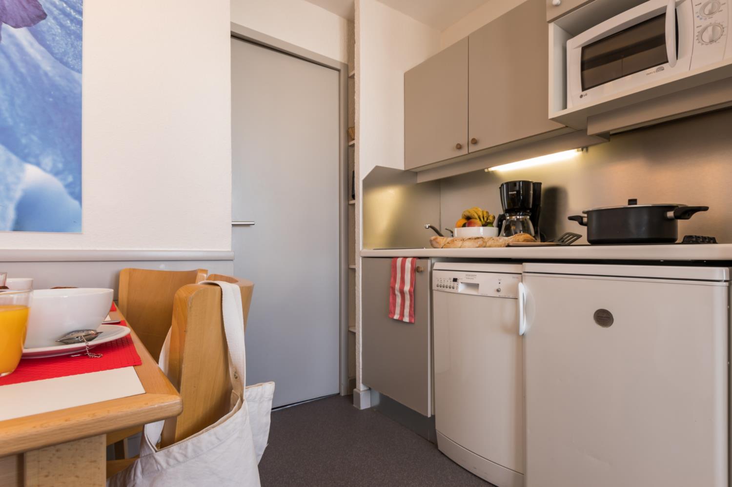 • Accommodatiebeschrijving: Woongedeelte met 2 eenpersoonsslaapbanken. Slaapkamer met 1 tweepersoonsbed. Volledig ingerichte kleine keuken met keramische kookplaten, koelkast, magnetron-grilloven, vaatwasser en elektrisch koffiezetapparaat. - Balkon - Televisie - Badkamer en toilet. Let op: slapen in het bovenste bed is niet geschikt voor kinderen onder de 6 jaar. Frans decreet nr. 95949 van 25/08/1995.