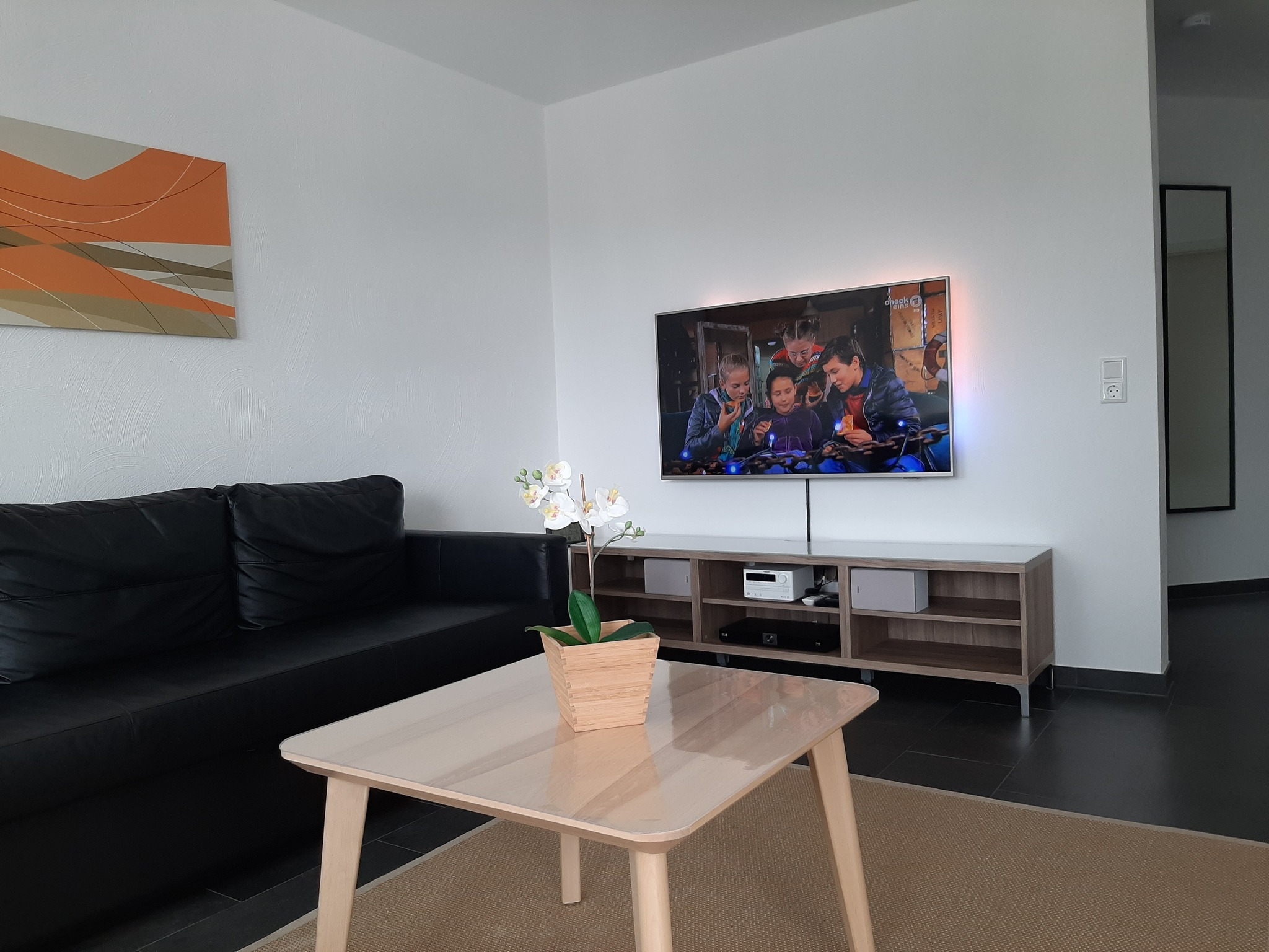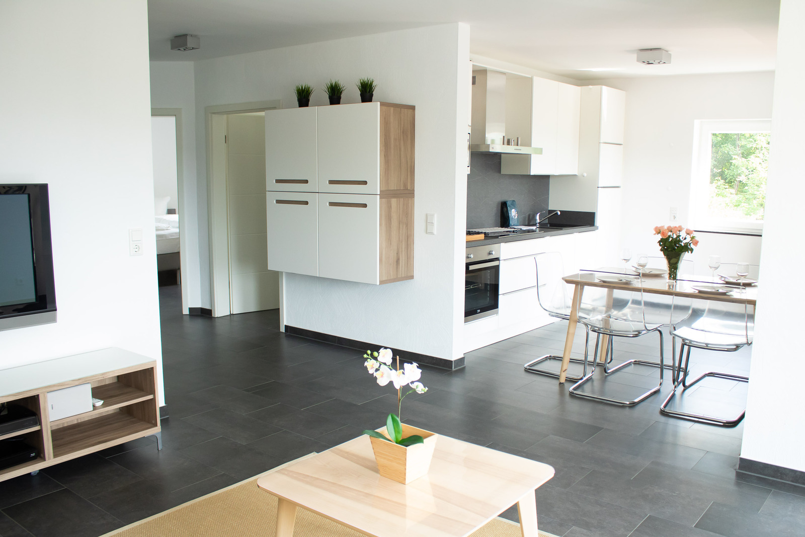 De woonkamer, verwarmd door vloerverwarming, heeft een gezellige zithoek en een eethoek. Voor je vermaak is er een breedbeeld-tv en grote ramen bieden een schilderachtig uitzicht op de bobsleebaan en de stoeltjeslift. De goed ingerichte keuken biedt alle gemakken van thuis, waaronder een vriezer, vaatwasser, magnetron, koffiepadapparaat en waterkoker, zodat je alles hebt wat je nodig hebt om maaltijden te bereiden.