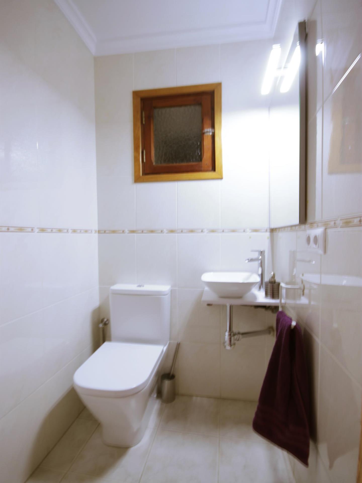 • badkamer met enkele wastafel en toilet