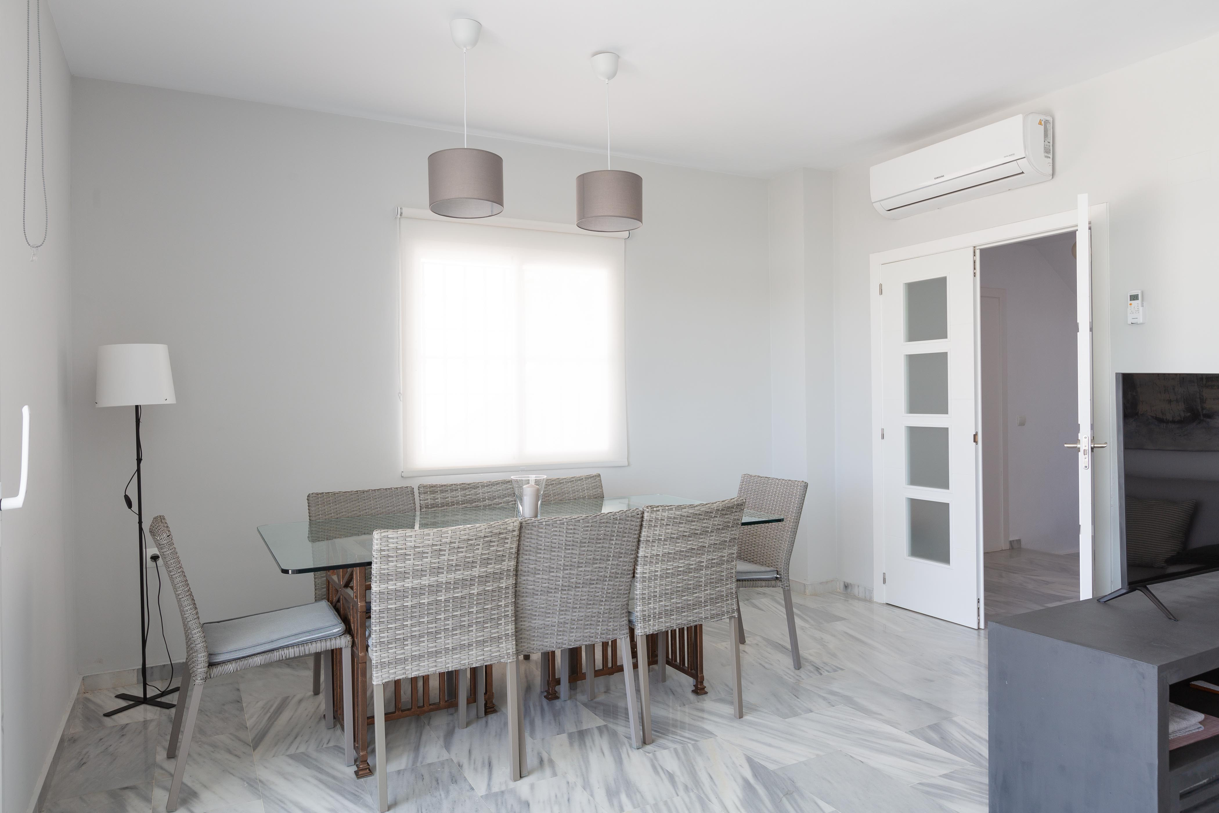 De accommodatie, verdeeld over drie verdiepingen, is smaakvol ingericht en ontworpen om u de rust te bieden die u verdient. Op de hoofdverdieping vindt u een ruime en lichte woon-eetkamer uitgerust met AC en Smart TV, evenals een aparte keuken met een keramische kookplaat en al het nodige keukengerei om comfortabel te koken. Er is een wasmachine, strijkijzer en strijkplank in het huis. Wanneer het tijd is om te slapen, zijn er 4 slaapkamers met AC. Drie van hen bevinden zich op de bovenverdieping. Twee ervan hebben tweepersoonsbedden - een met een eigen badkamer met douche en een met toegang tot een terras - terwijl de laatste twee eenpersoonsbedden heeft. Op deze verdieping is er nog een badkamer met een bad. Op de onderste verdieping is de laatste slaapkamer, die twee eenpersoonsbedden heeft, en een woonkamer met een slaapbank, waar nog twee personen kunnen rusten. Een badkamer met een douche bedient deze verdieping. Als u met uw baby reist, kunnen wij u een kinderbedje en een kinderstoel ter beschikking stellen.