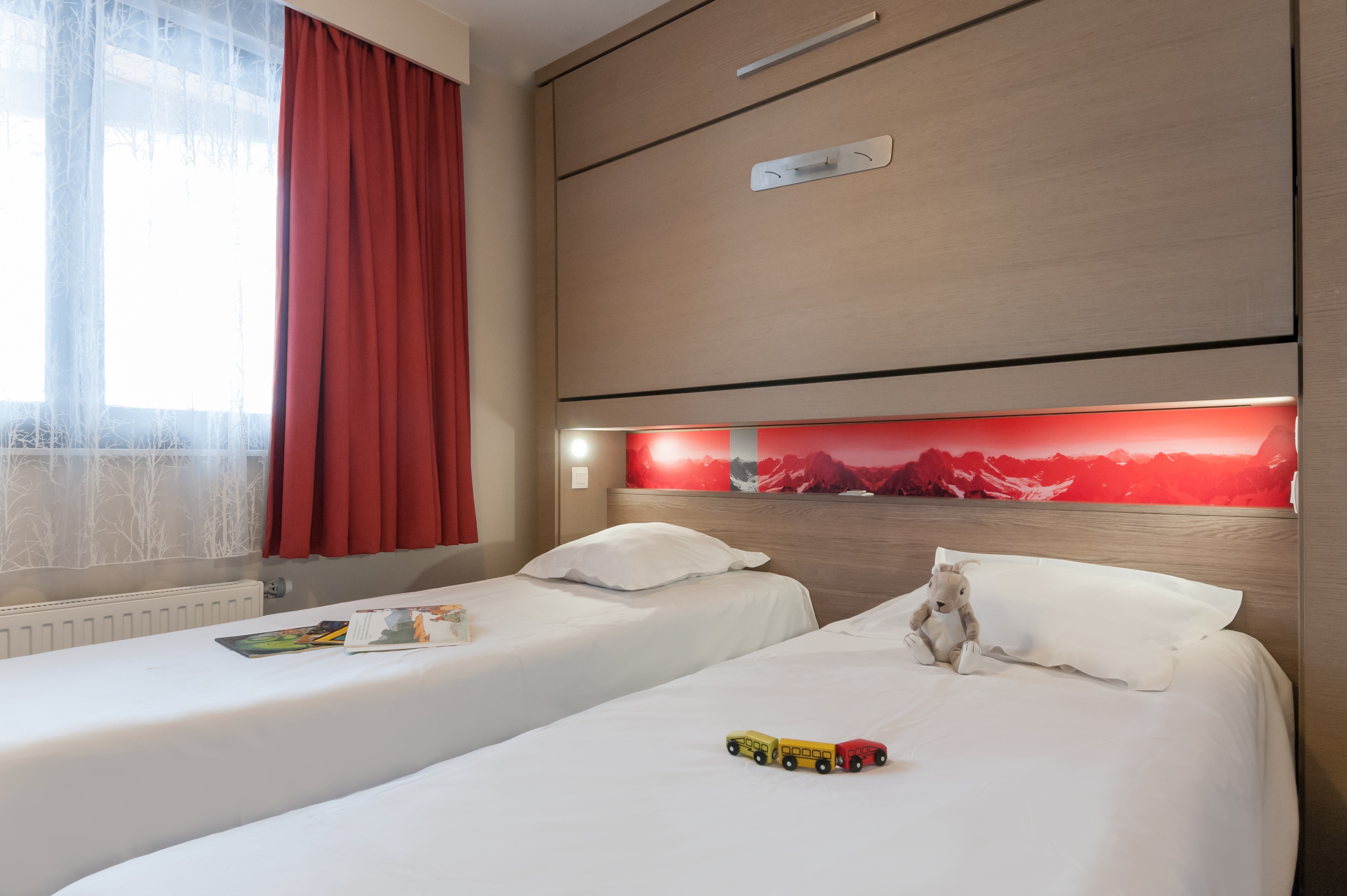 1 slaapkamer met 2 eenpersoonsbedden + 1 uitschuif- of opklapbed