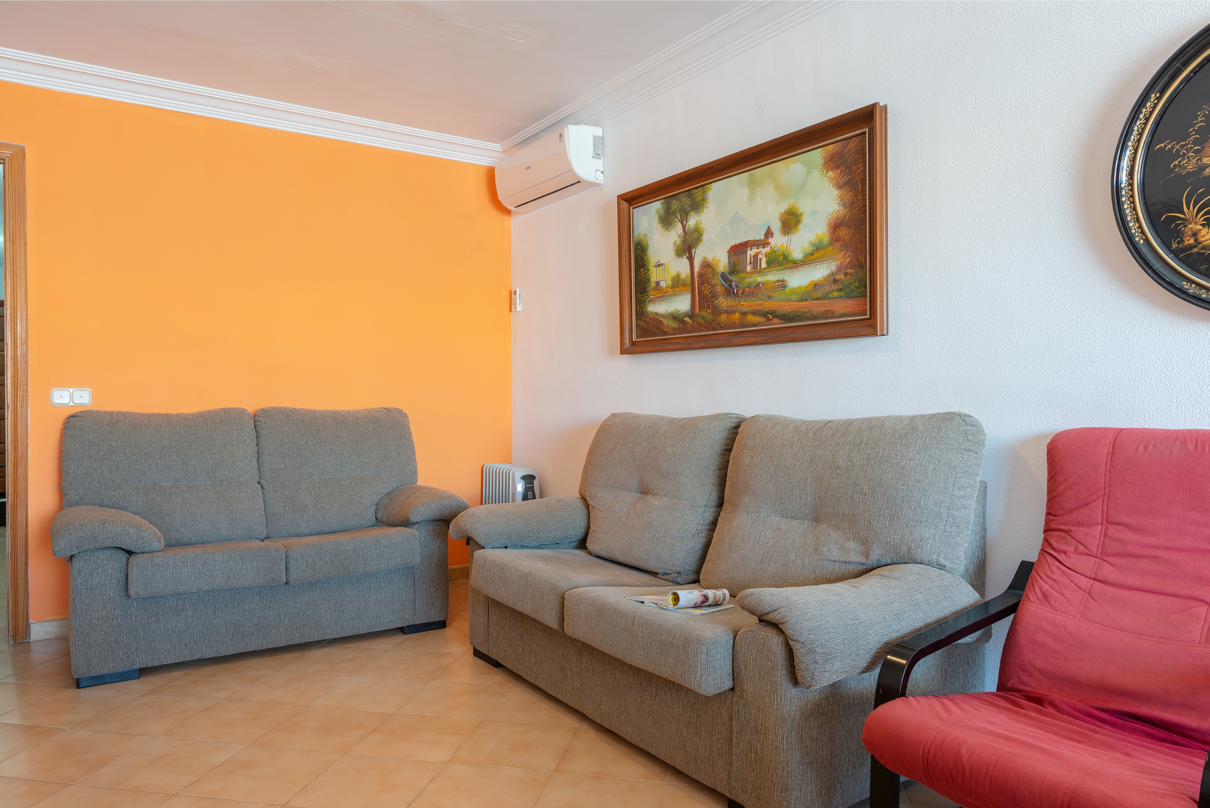 Binnen is de ruime woon-eetkamer, met airconditioning, perfect om te ontspannen terwijl u TV-Sat kijkt of een goed boek leest. De keuken is volledig uitgerust en heeft een keramische kookplaat, oven, magnetron en meer. Het heeft directe toegang tot het terras, zodat u alleen maar uw beste gerechten hoeft te bereiden en daar op het terras van kunt genieten terwijl u geniet van de zeebries. Er zijn twee badkamers in de accommodatie - één met een bad en de andere met een douche - en drie slaapkamers, allemaal met airconditioning. Twee hebben een tweepersoonsbed en de andere heeft twee eenpersoonsbedden en een kast. Als u met uw kinderen reist, beschikken wij over een kinderbedje en een kinderstoel. De wasmachine, strijkijzer, strijkplank en 2 radiatoren maken de uitrusting compleet.