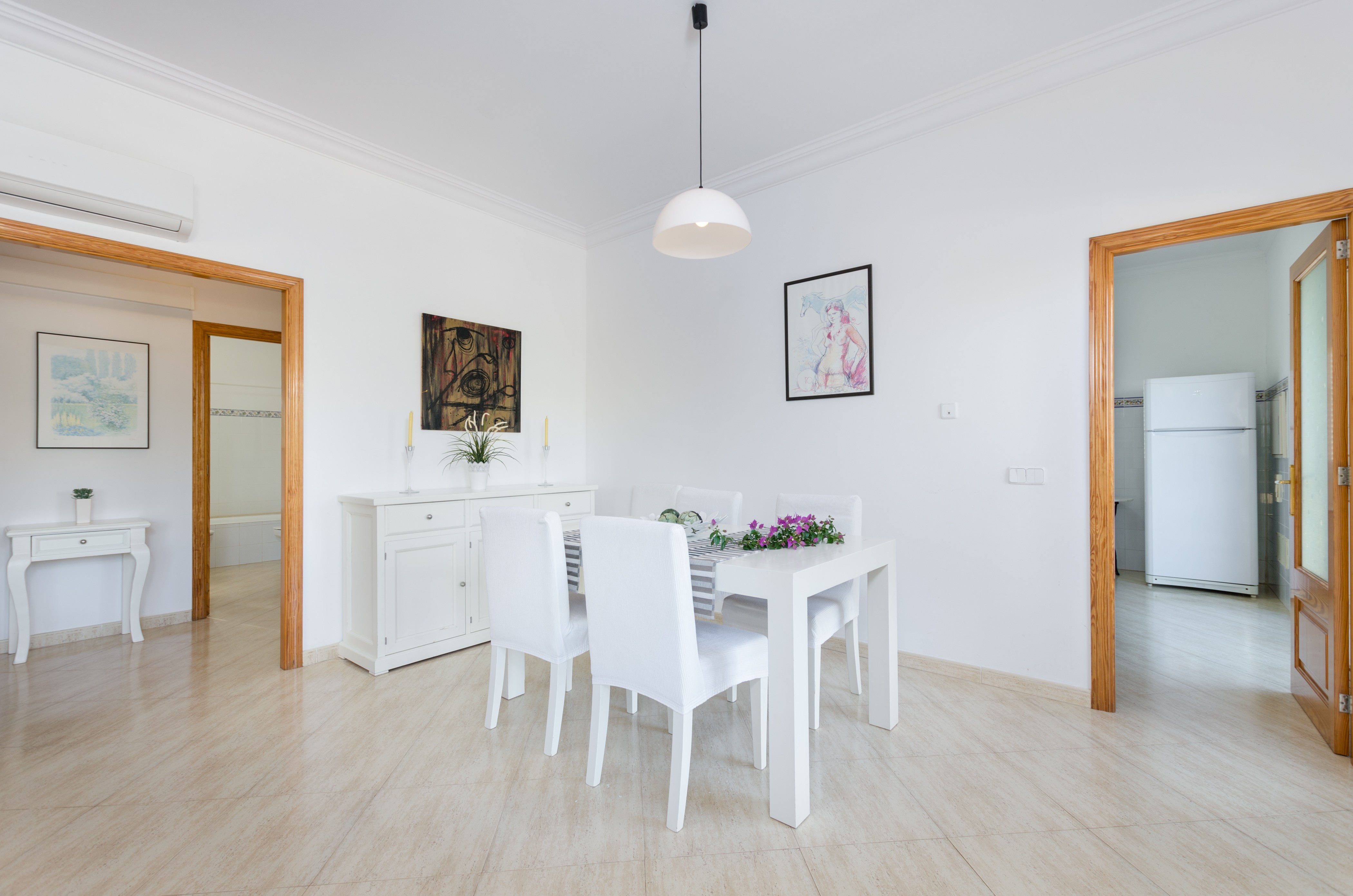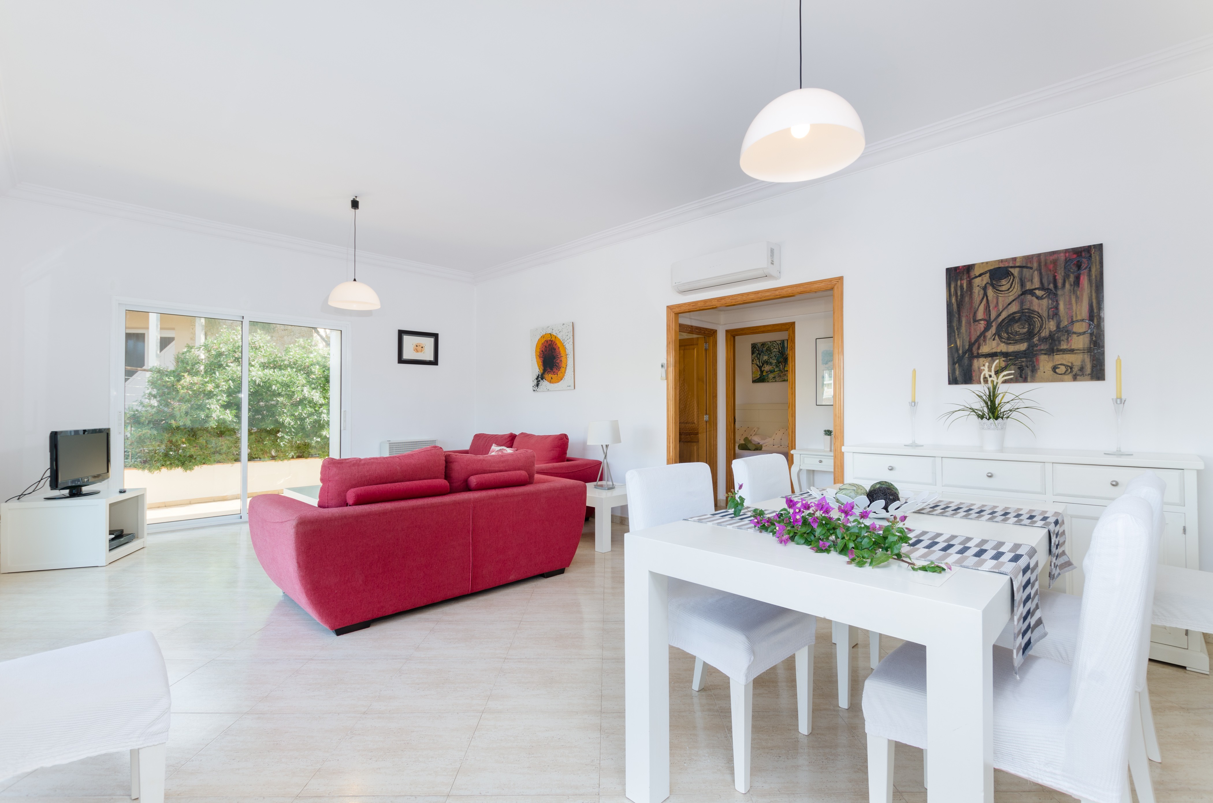 Binnen verwelkomt een ontspannen sfeer u. De woon-eetkamer is perfect om samen te eten en uit te rusten op de bank terwijl u tv kijkt. Vervolgens komt u in de keuken die is uitgerust met een keramische kookplaat en alles wat u nodig heeft om te koken alsof u thuis bent. Hier vindt u de wasmachine, het strijkijzer en de strijkplank. Er zijn drie slaapkamers met ieder een vaste kast. Eén ervan heeft een tweepersoonsbed en de andere twee zijn voorzien van twee eenpersoonsbedden. Twee badkamers, één met douche en één met bad, maken het appartement compleet. Er is airconditioning in de woonkamer en in de slaapkamers, evenals een babybedje en een kinderstoel. Het appartement bevindt zich op de eerste verdieping en er is geen lift aanwezig.