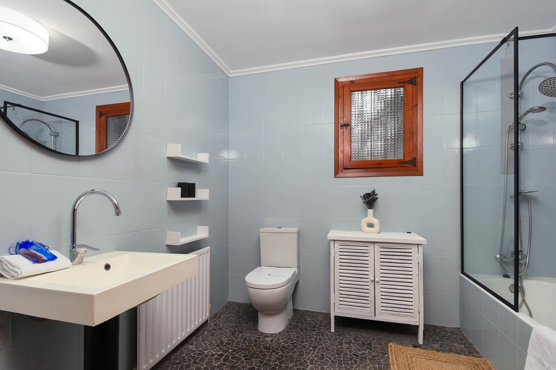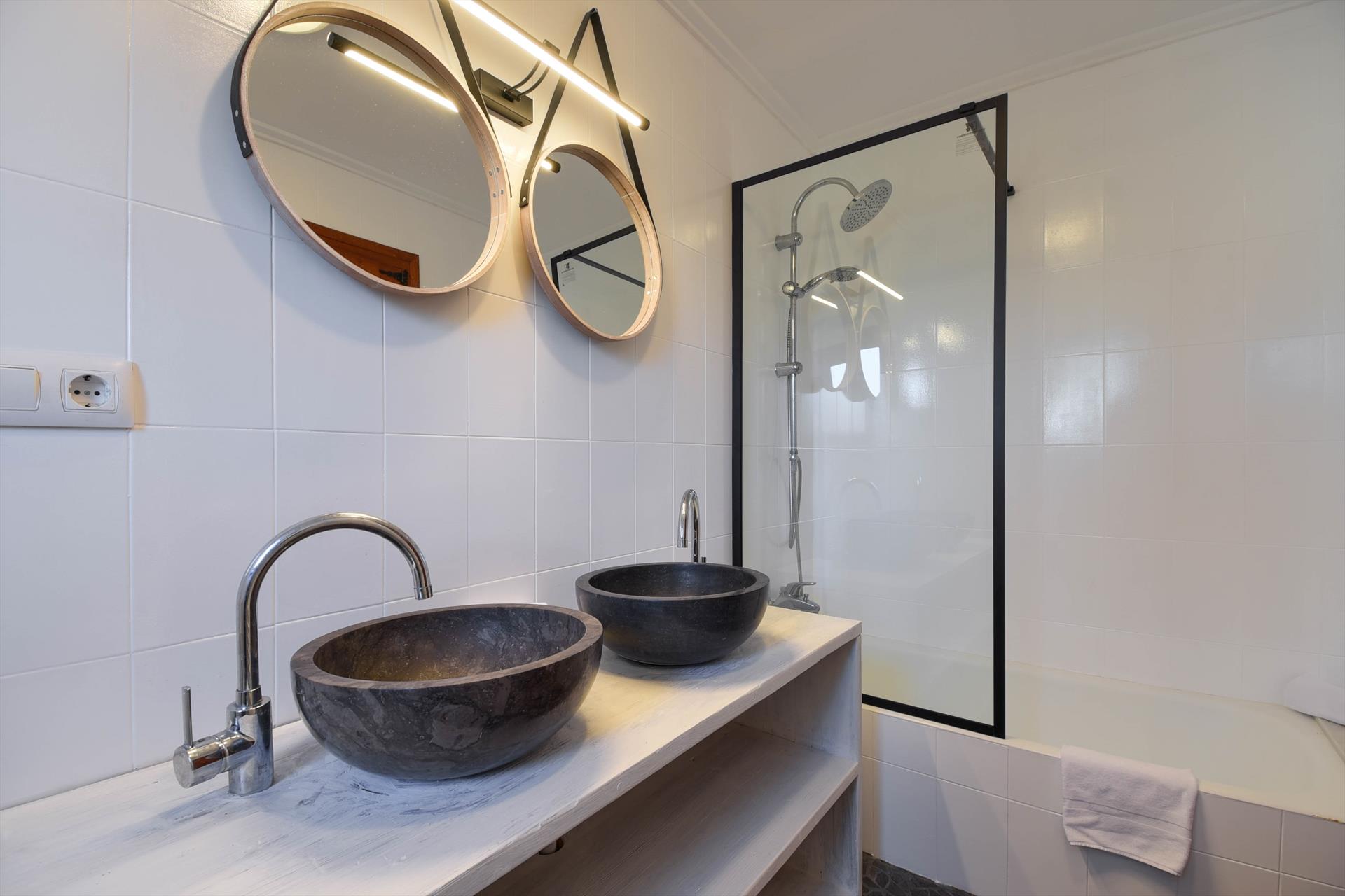 • Badkamer met dubbele wastafel, douchebad en toilet