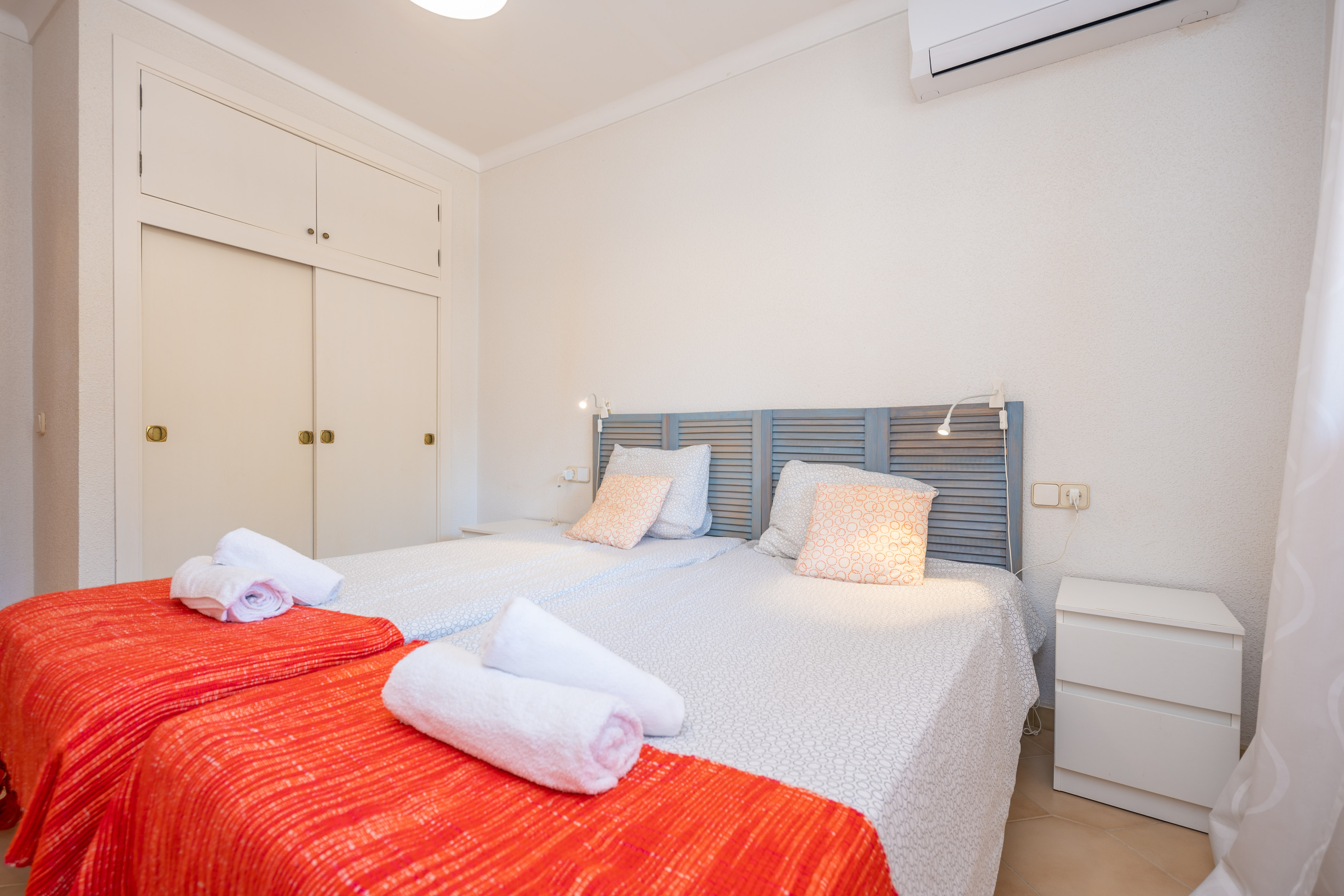 - Op de begane grond is ook een slaapkamer met twee eenpersoonsbedden, een kledingkast, airconditioning en een complete badkamer met ligbad.