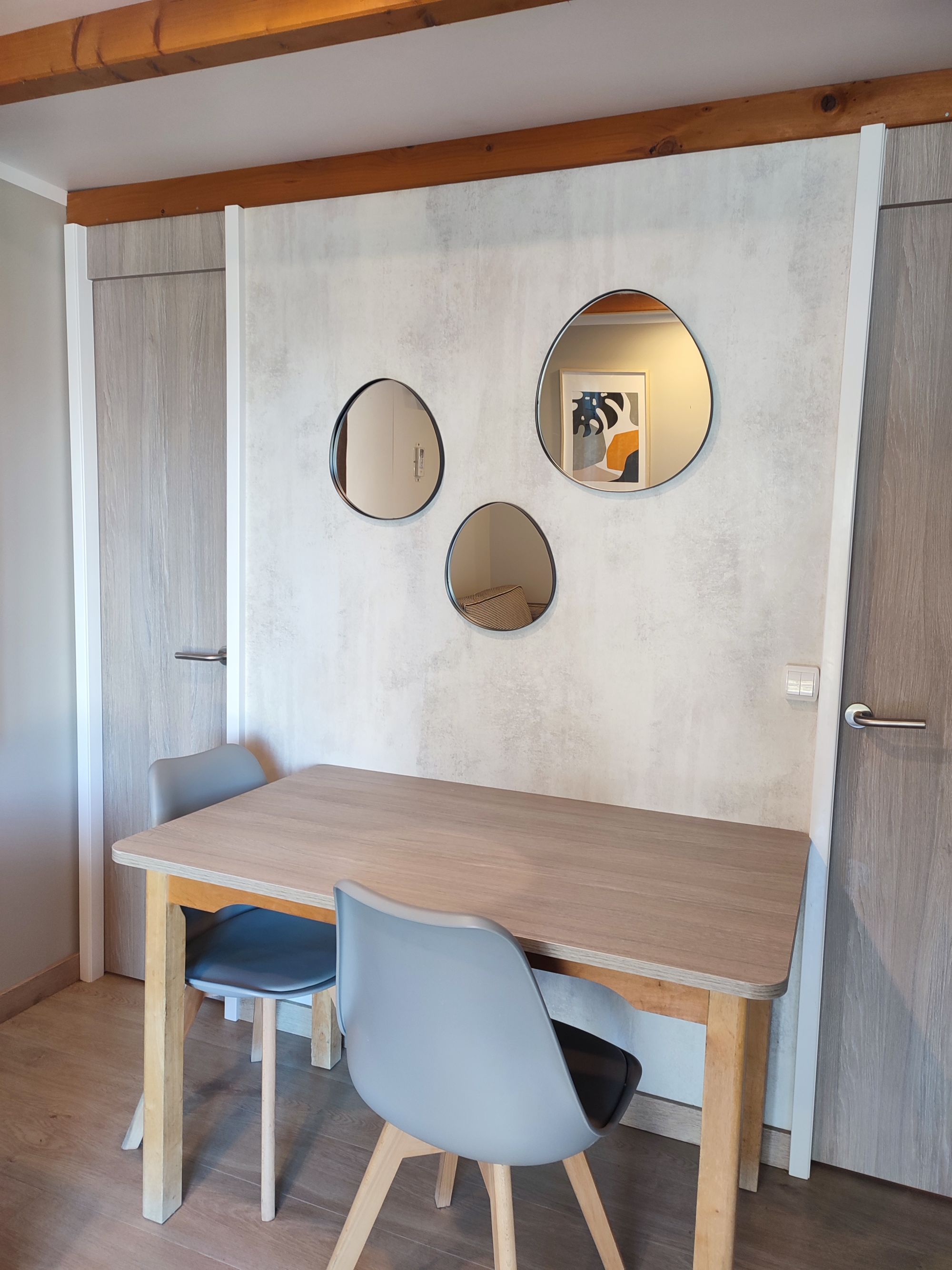 Deze ruime bungalow van 35m² beschikt over twee gezellige slaapkamers - één met een tweepersoonsbed en de andere met twee eenpersoonsbedden - samen met een slaapbank in de woonkamer. De lichte woonkamer is ontworpen voor ontspanning, met modern meubilair, veel natuurlijk licht en een flatscreen-tv die extra comfort biedt voor ontspannen avonden na een dagje verkennen.