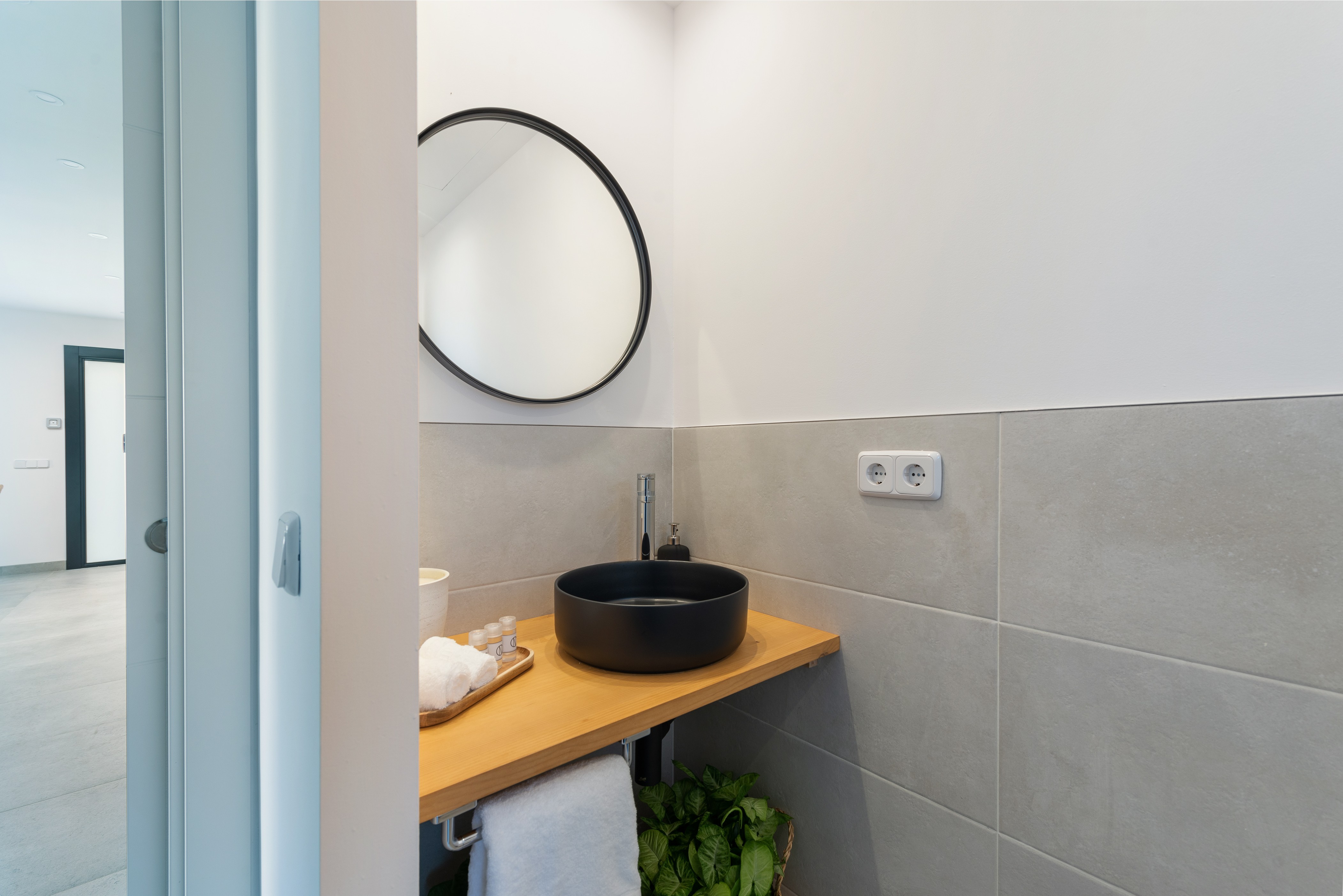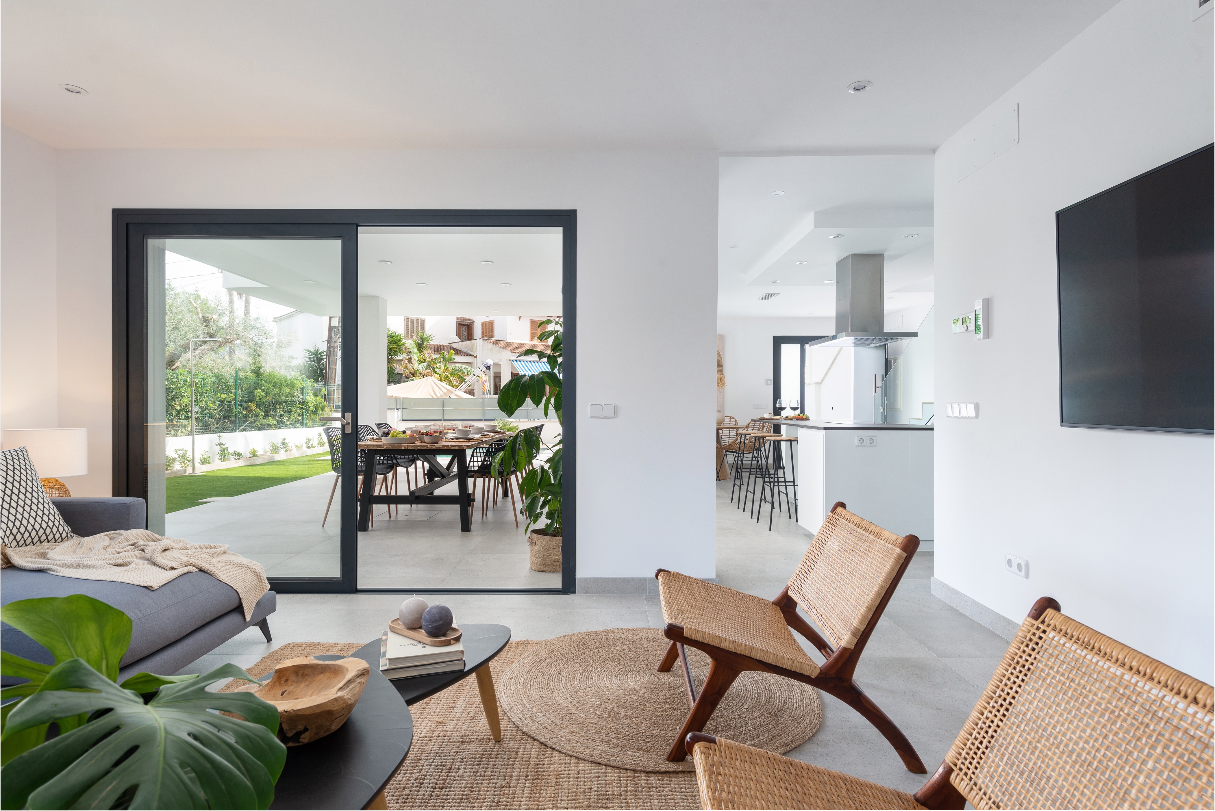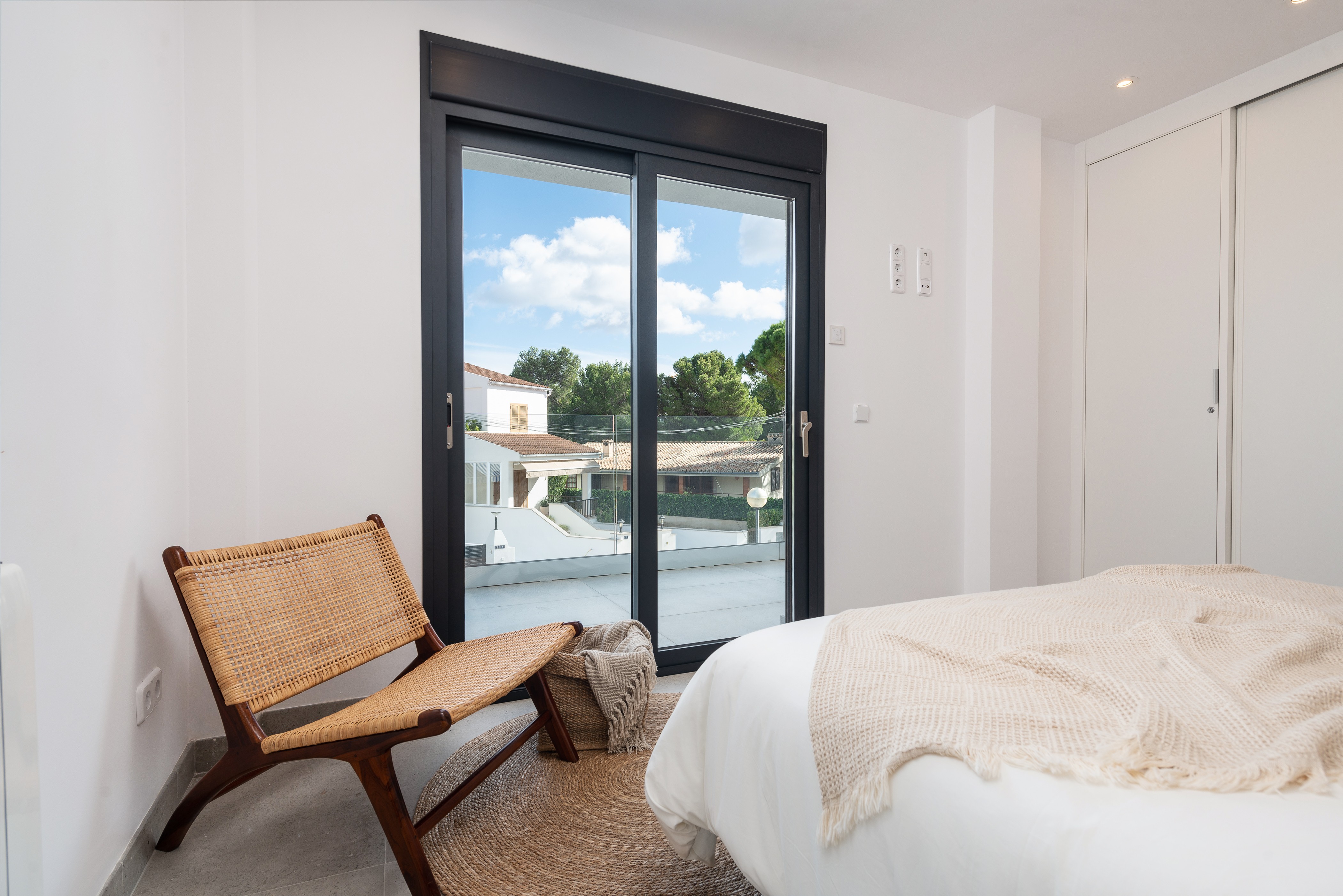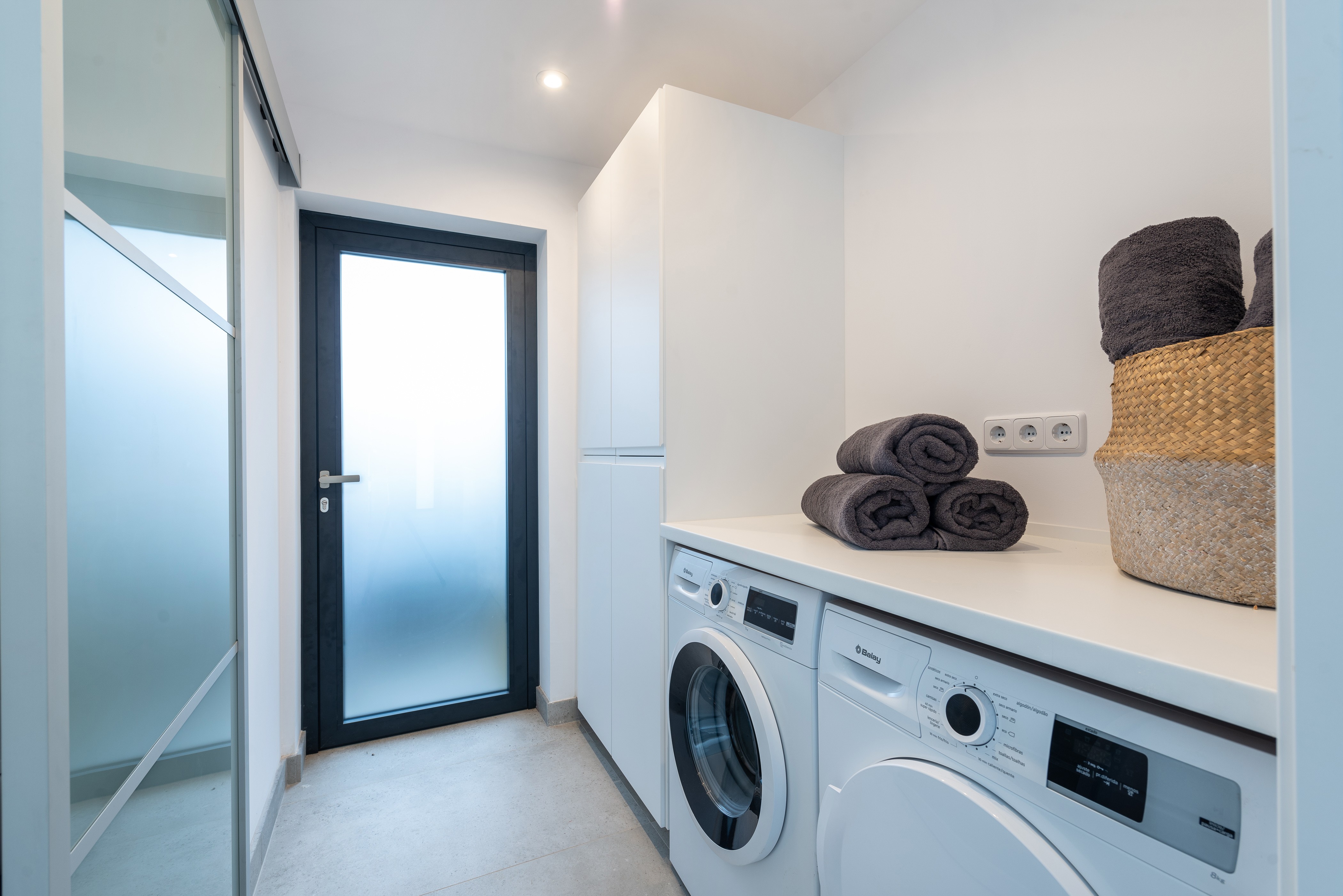 Het interieur van het huis met twee verdiepingen is prachtig ingericht en ontworpen om u thuis te voelen. Vanaf de veranda hebben we toegang tot de keuken-eetkamer, met inductiekookplaat, die leidt naar de prachtige woonkamer - met airconditioning - waar u Smart TV kunt kijken. Op de begane grond vinden we ook de aparte wasruimte, met een wasmachine, droger, strijkijzer en strijkplank, en een toilet. Op de bovenverdieping bevinden zich de drie slaapkamers, alle drie met een en-suite badkamer met douche en airconditioning. Twee ervan hebben een tweepersoonsbed en de laatste heeft 2 aparte bedden. Ten slotte is het huis uitgerust met een babybedje en een kinderstoel, evenals centrale verwarming op gas voor de wintermaanden.