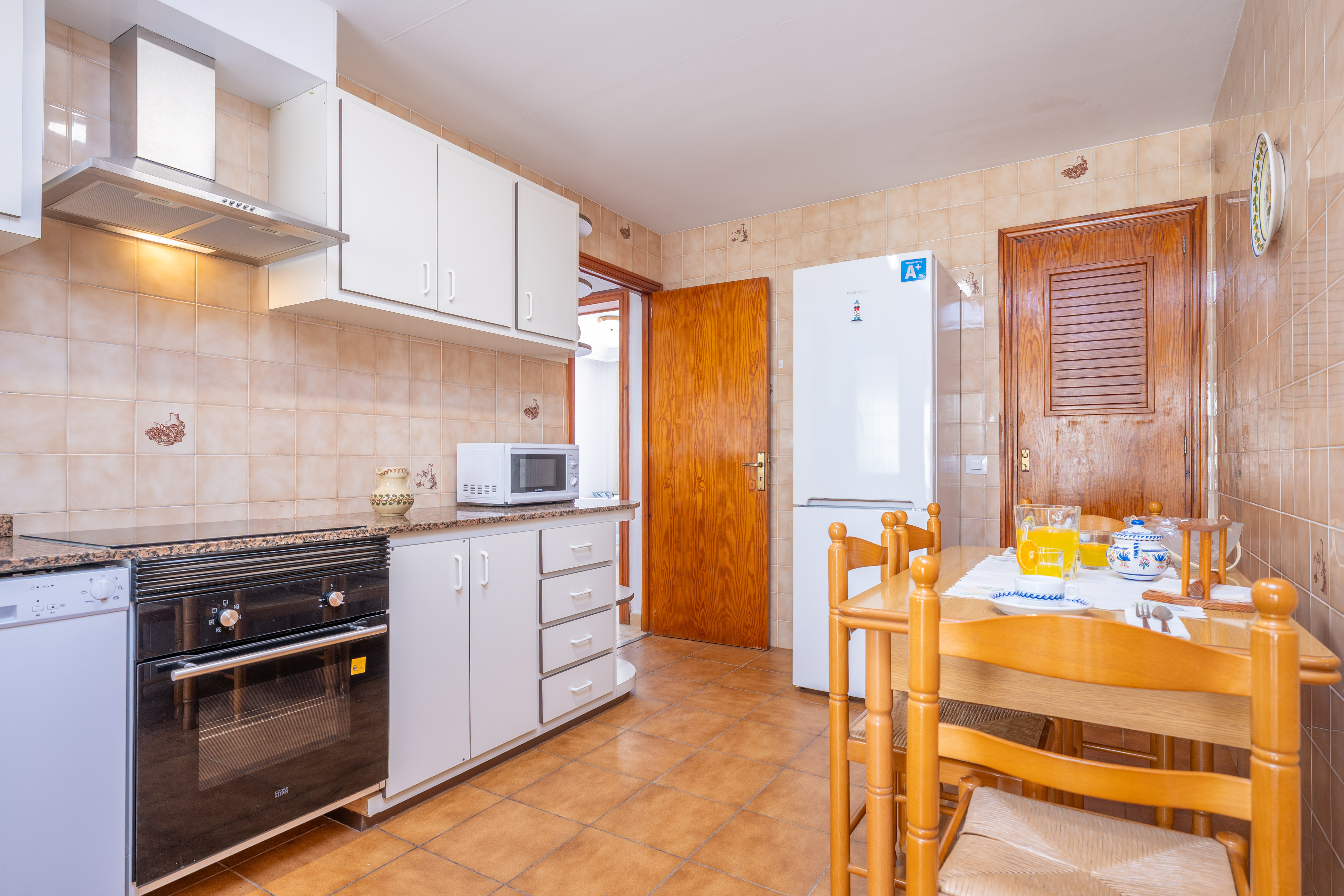 De volledig uitgeruste keuken beschikt over een vitrokeramisch kookplaat en alle benodigde keukengerei om tijdens uw verblijf te koken.
