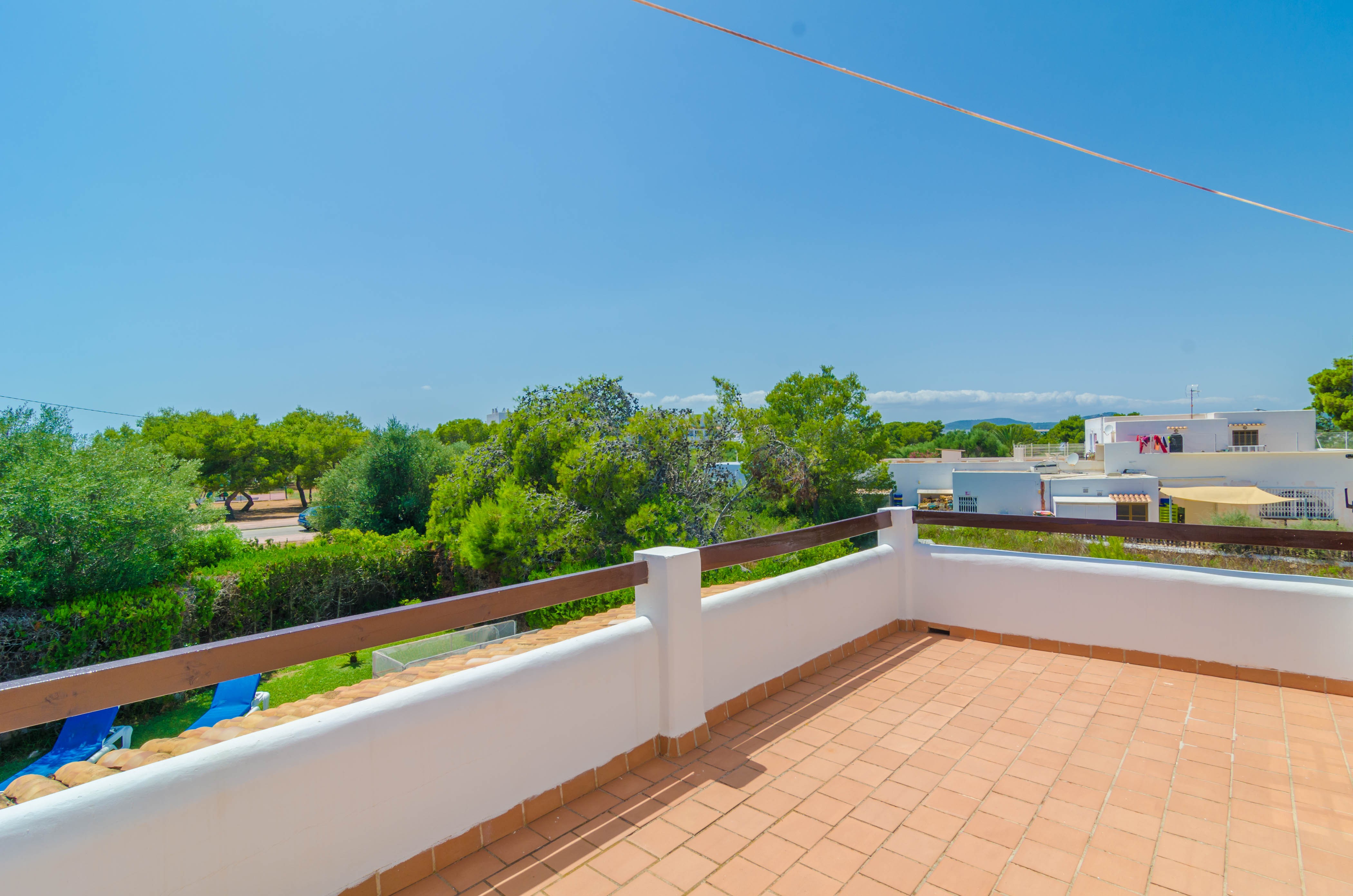 De andere twee slaapkamers liggen op de eerste verdieping. De ene heeft een tweepersoonsbed, een ventilator, een kledingkast en een en-suite badkamer met een douche. De andere heeft twee eenpersoonsbedden, een ventilator, een kledingkast en toegang tot het terras. Er is ook een aparte badkamer met een douche op deze verdieping.