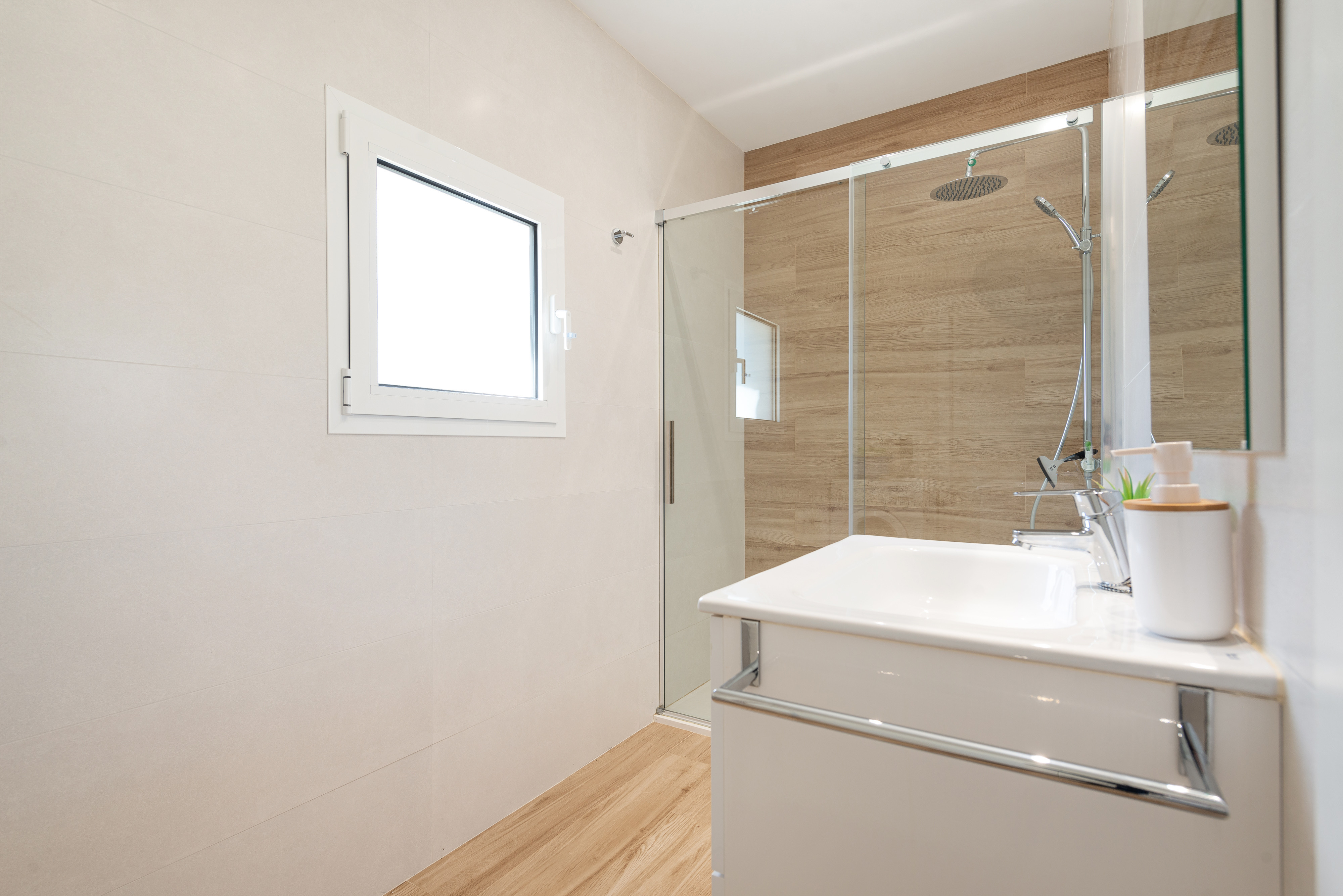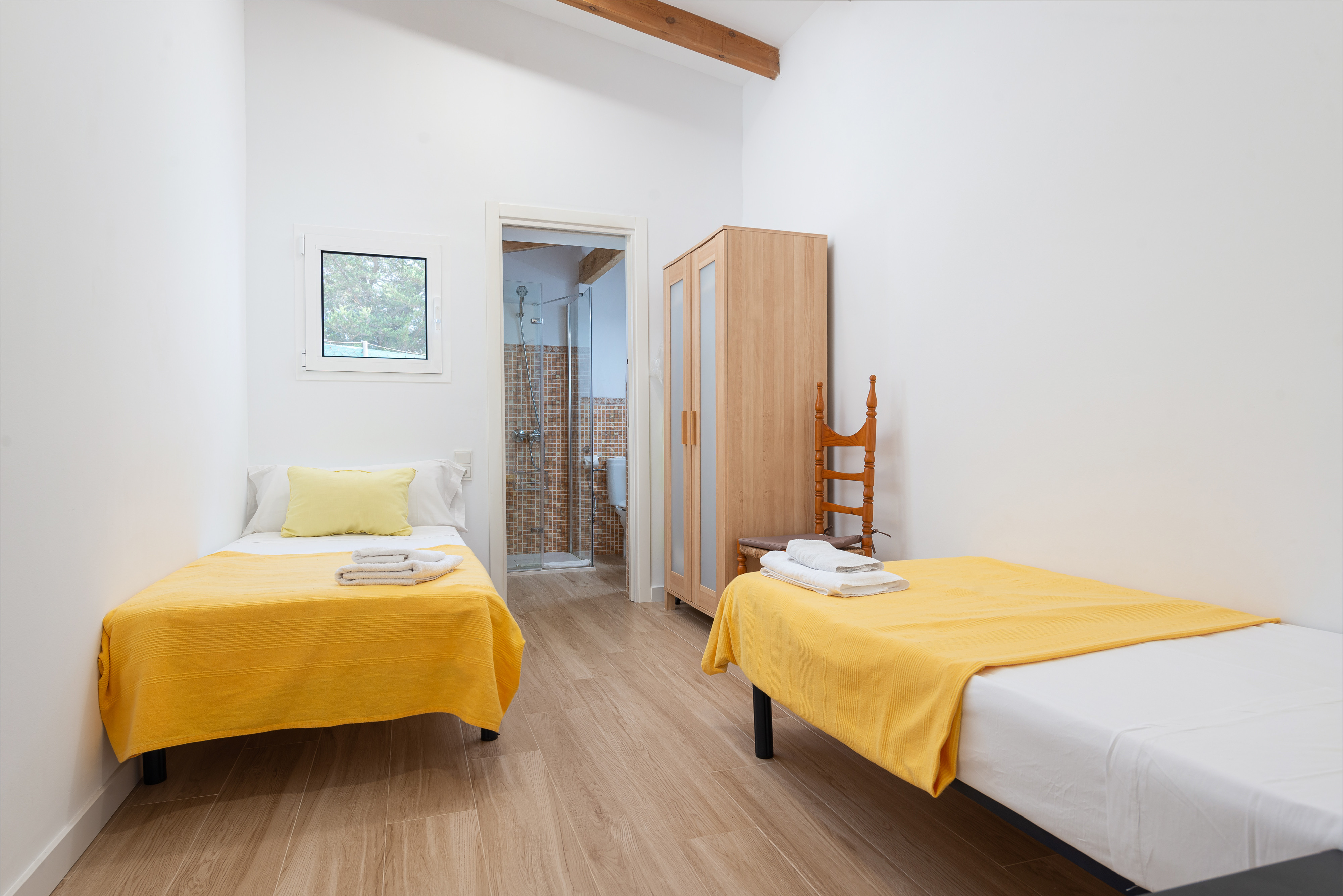 Binnen bevat een enkele verdieping de verschillende ruimtes in een traditionele en gezellige stijl. Als je binnenkomt vanaf de veranda, vind je de woon-eetkamer met open haard, satelliet-tv en een tafel voor 6 personen. De aparte keuken is uitgerust met een gasfornuis. Het slaapgedeelte biedt drie tweepersoonsslaapkamers met elk een ventilator en een kledingkast. Eén heeft een tweepersoonsbed en een aangrenzende badkamer met een douche. De andere twee hebben twee eenpersoonsbedden en een van hen heeft ook een eigen badkamer met douche. Er is een wasmachine, strijkijzer en strijkplank en we kunnen een kinderbedje en een kinderstoel voor je klaarzetten voor het geval je met je baby reist.