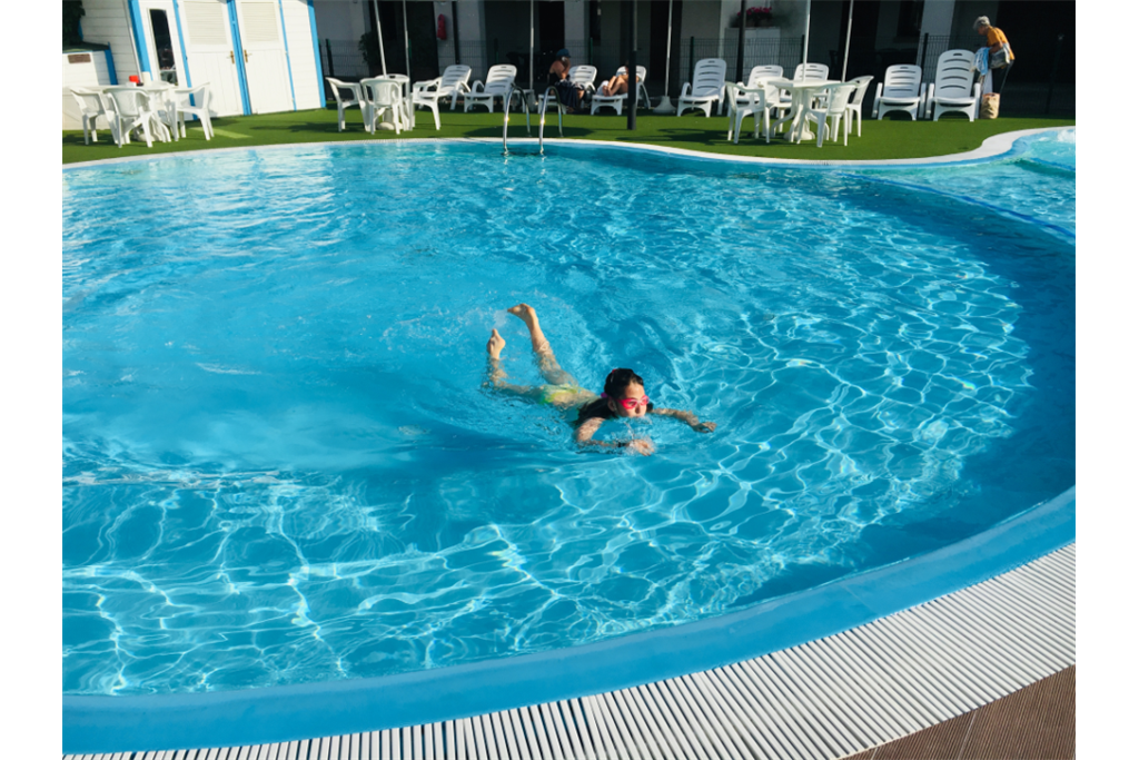 Tweede verdieping: slaapkamer met tweepersoonsbed en overdekt balkon met uitzicht op het zwembad, en een slaapkamer met stapelbed plus eenpersoonsbed en overdekt balkon, badkamer met douche, kluis, airconditioning / verwarming. Parkeerplaats voor exclusief gebruik aan de buitenrand van de woning.