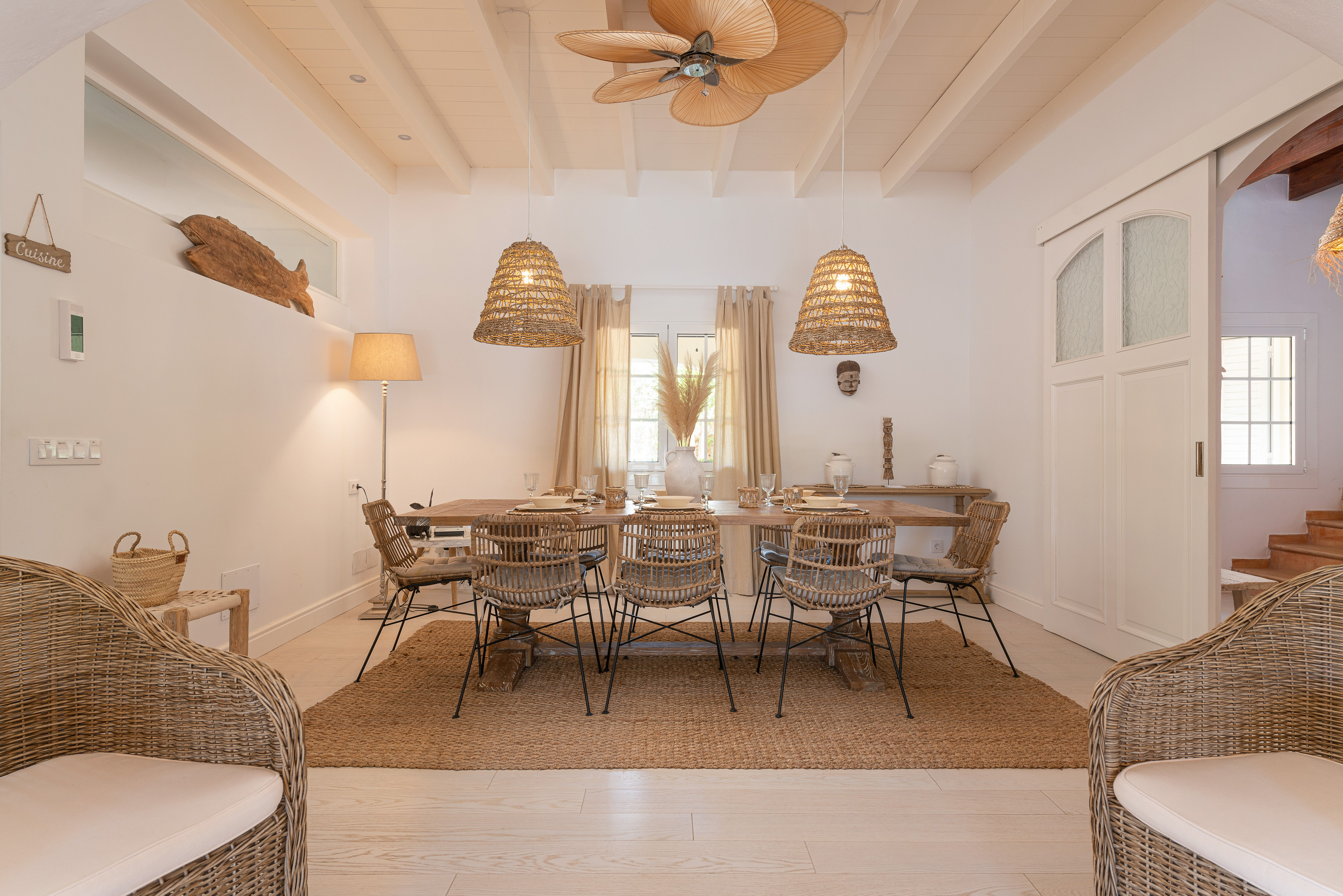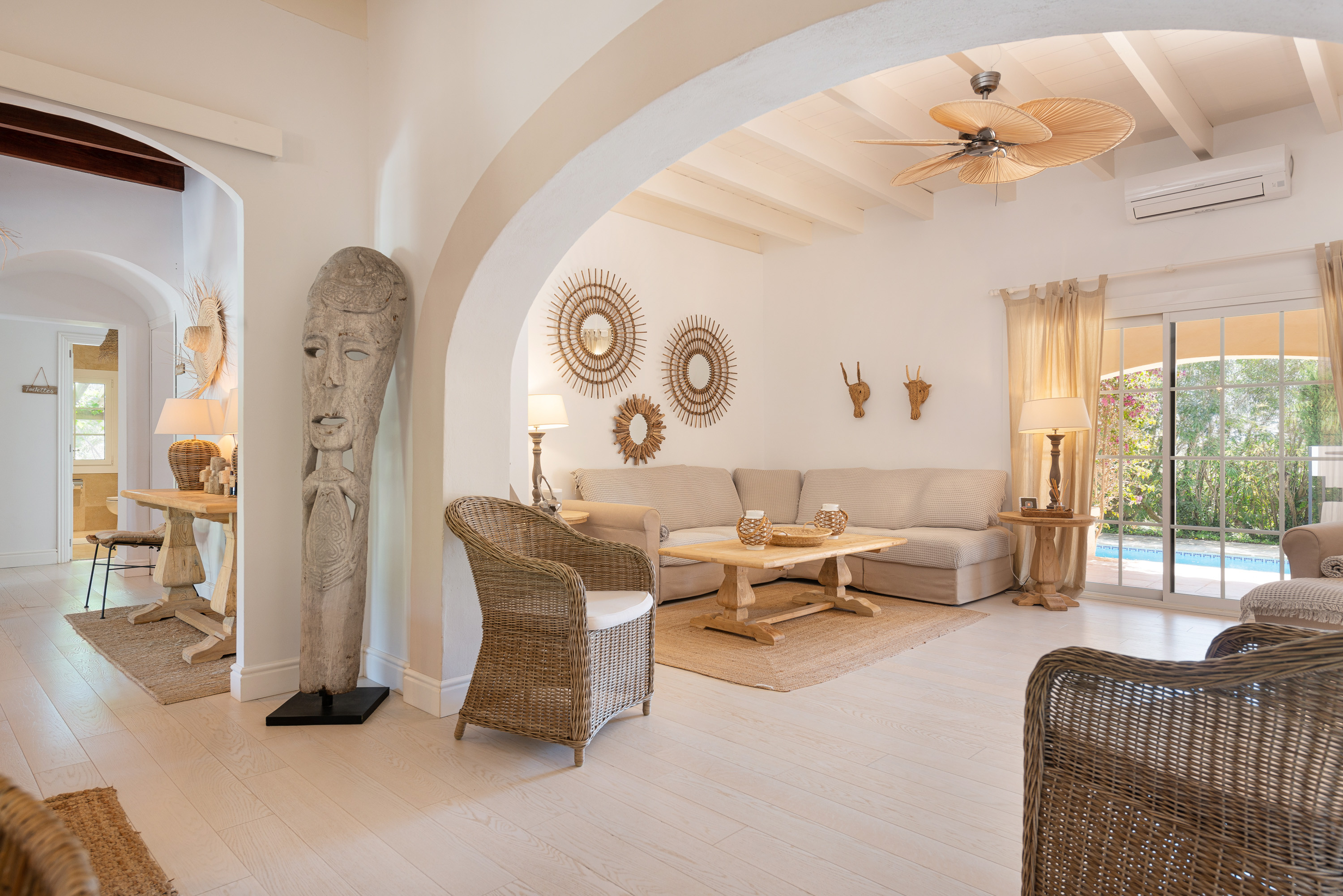 De villa biedt plaats aan maximaal 8 gasten in 4 slaapkamers met airconditioning, elk voorzien van een tweepersoonsbed en een kledingkast. Twee slaapkamers beschikken over een en-suite badkamer met douche, waarvan één met een privé-ingang vanuit de tuin - ideaal voor extra privacy.