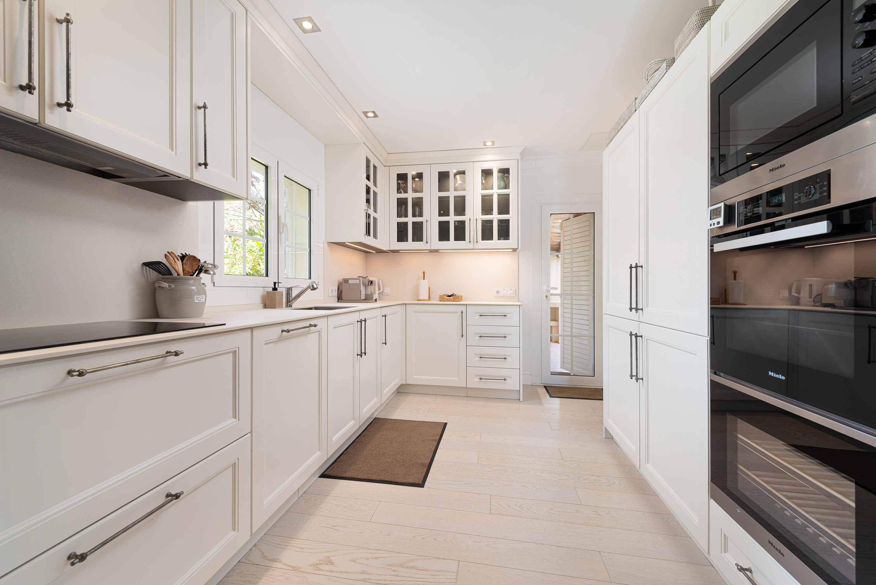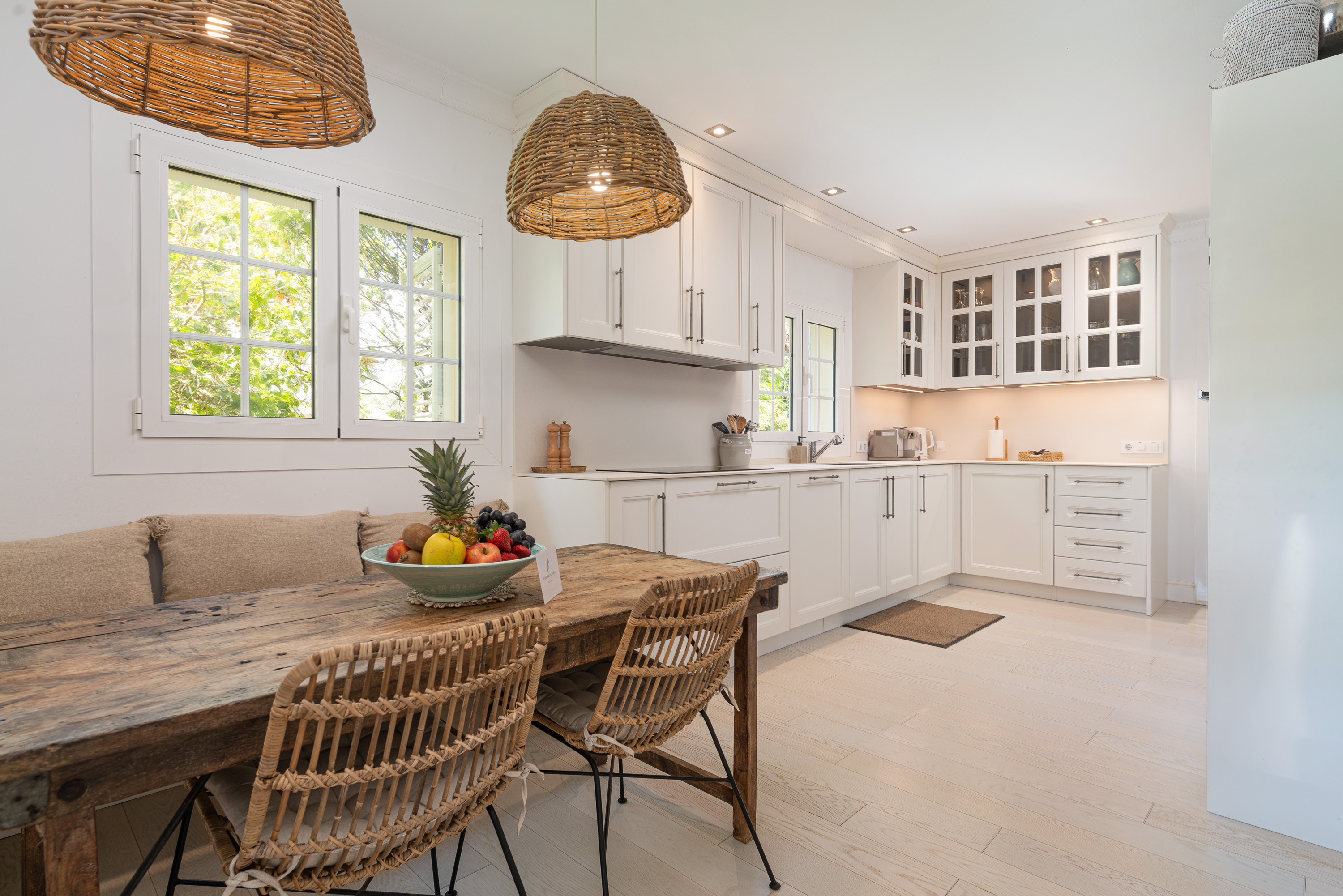 Stap binnen in het moderne interieur van de villa, geheel gelijkvloers, waar comfort en stijl samenkomen in een lichte, open woon- en eetruimte. Ontspan in de gezellige zithoek met een filmavond op de Smart TV, of schuif aan bij de ruime eettafel voor maaltijden die zijn bereid in de volledig uitgeruste keuken met inductiekookplaat en alle benodigde keukengerei.