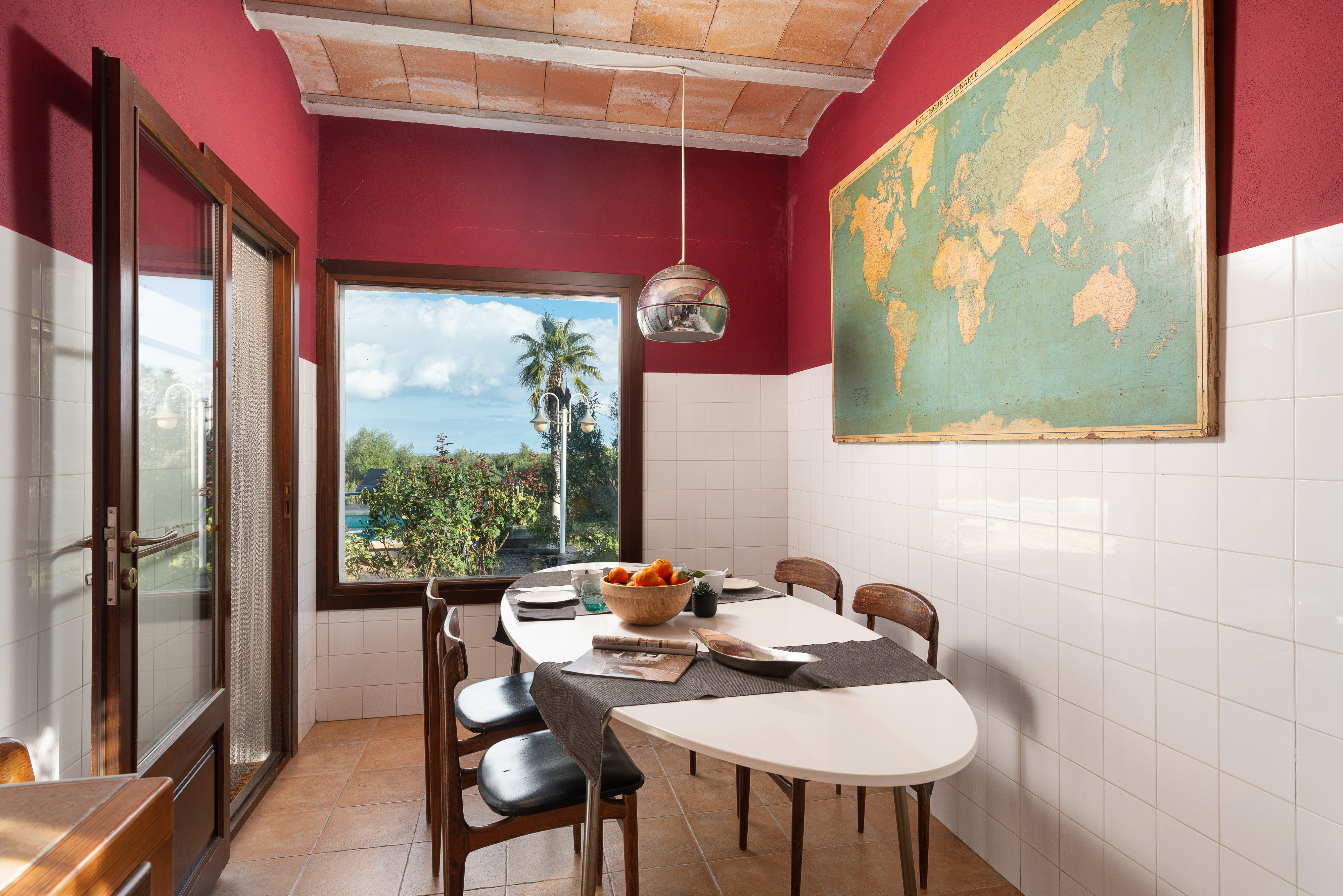Begin uw ervaring in de ruime, lichte woonkamer met uitzicht op het zwembad, uitgerust met airconditioning voor uw comfort. Ontspan op de grote bank met plaats voor 8 personen en kijk uw favoriete films op de Smart TV. De volledig uitgeruste gaskookkeuken biedt alle benodigdheden om heerlijke maaltijden te bereiden, die u kunt nuttigen in de eetruimte.