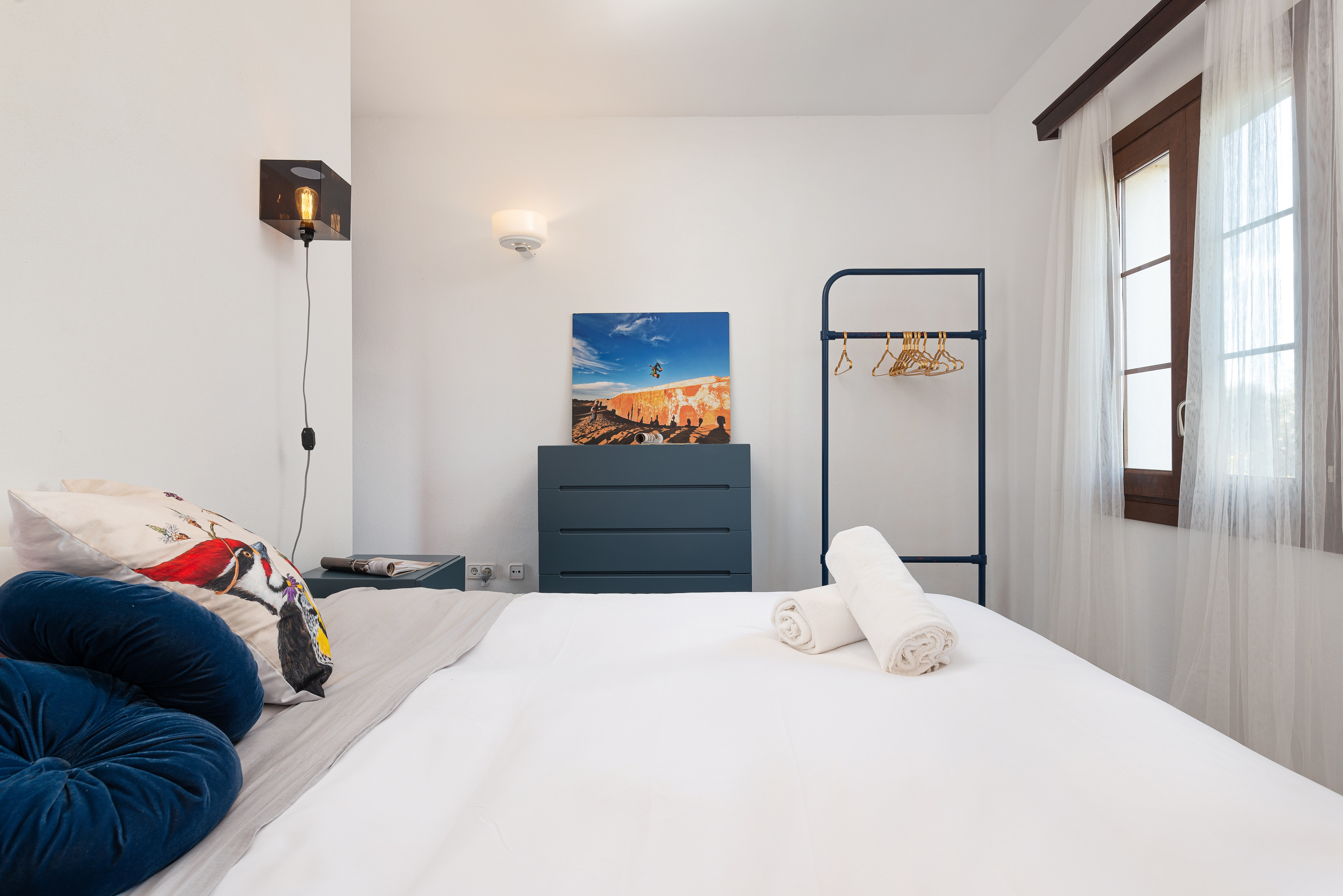 Op de eerste verdieping vindt u de derde slaapkamer, voorzien van een tweepersoonsbed, airconditioning, een kledingkast en directe toegang tot het terras op de eerste verdieping, ideaal om van het uitzicht te genieten. De badkamer op deze verdieping heeft een bad voor extra comfort.