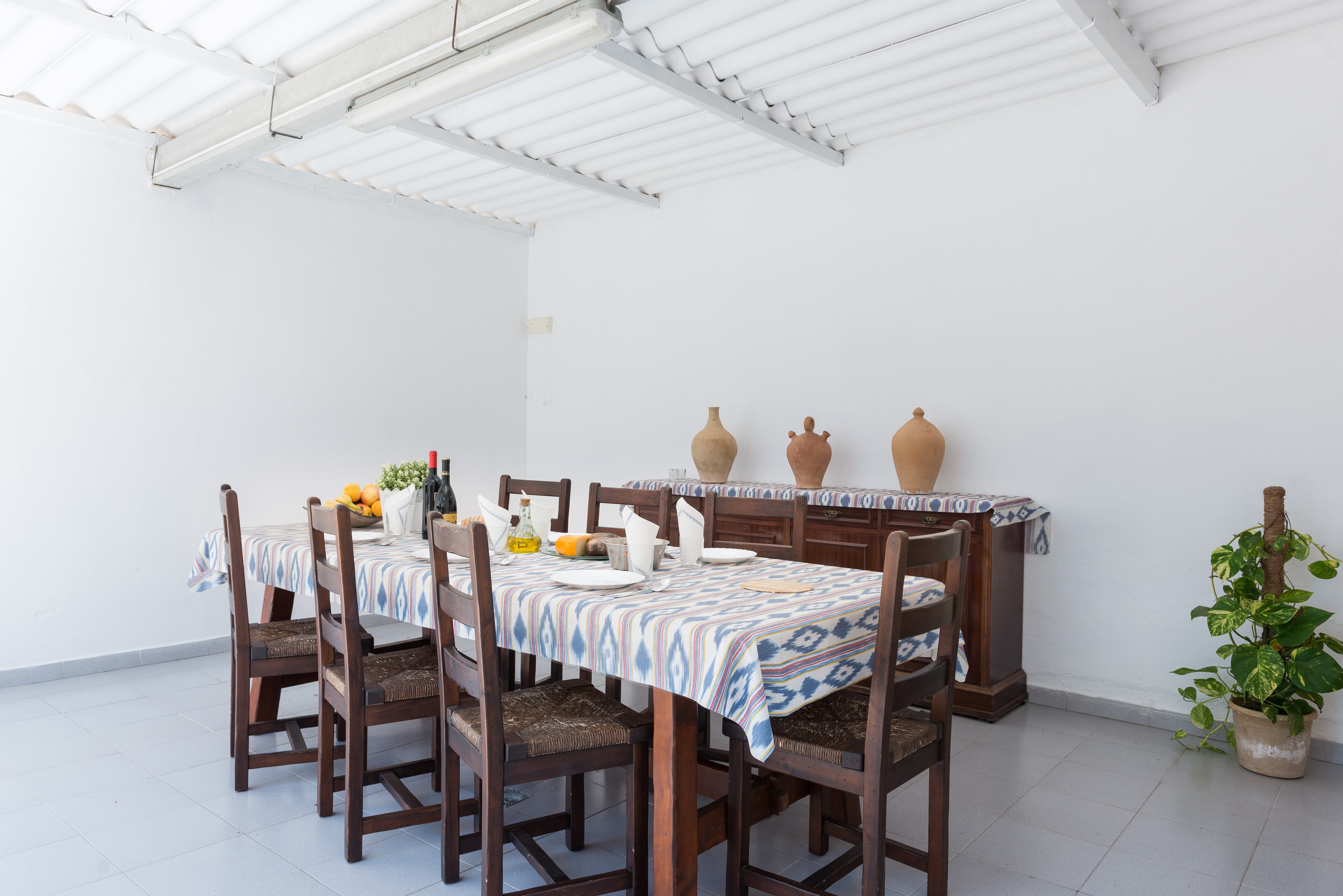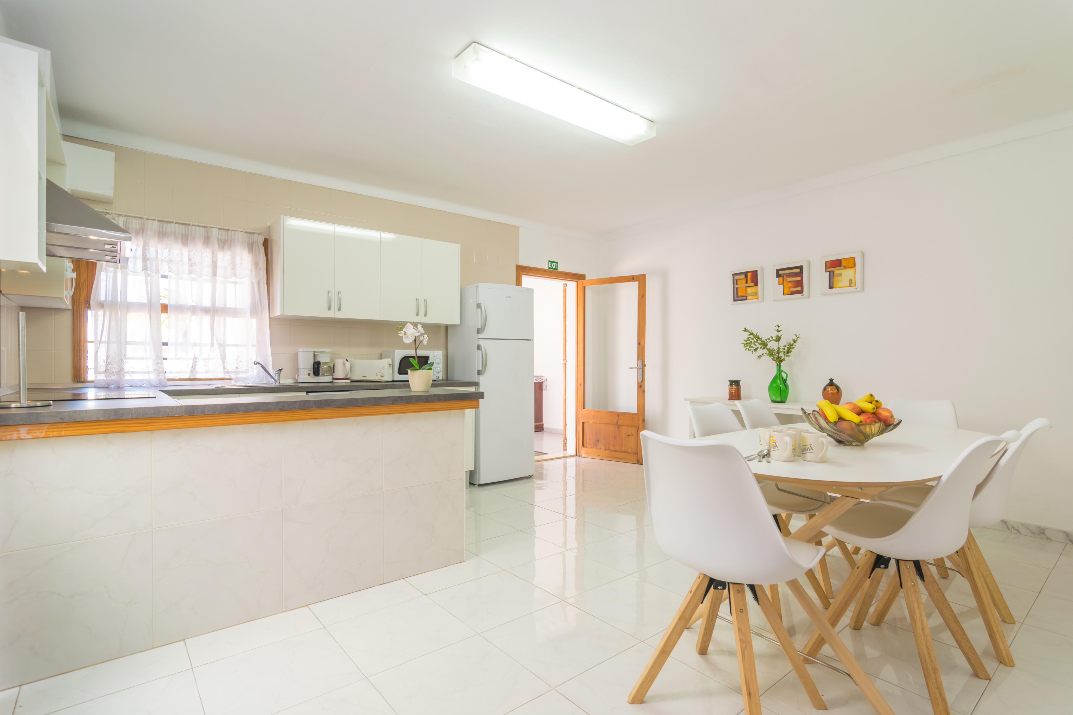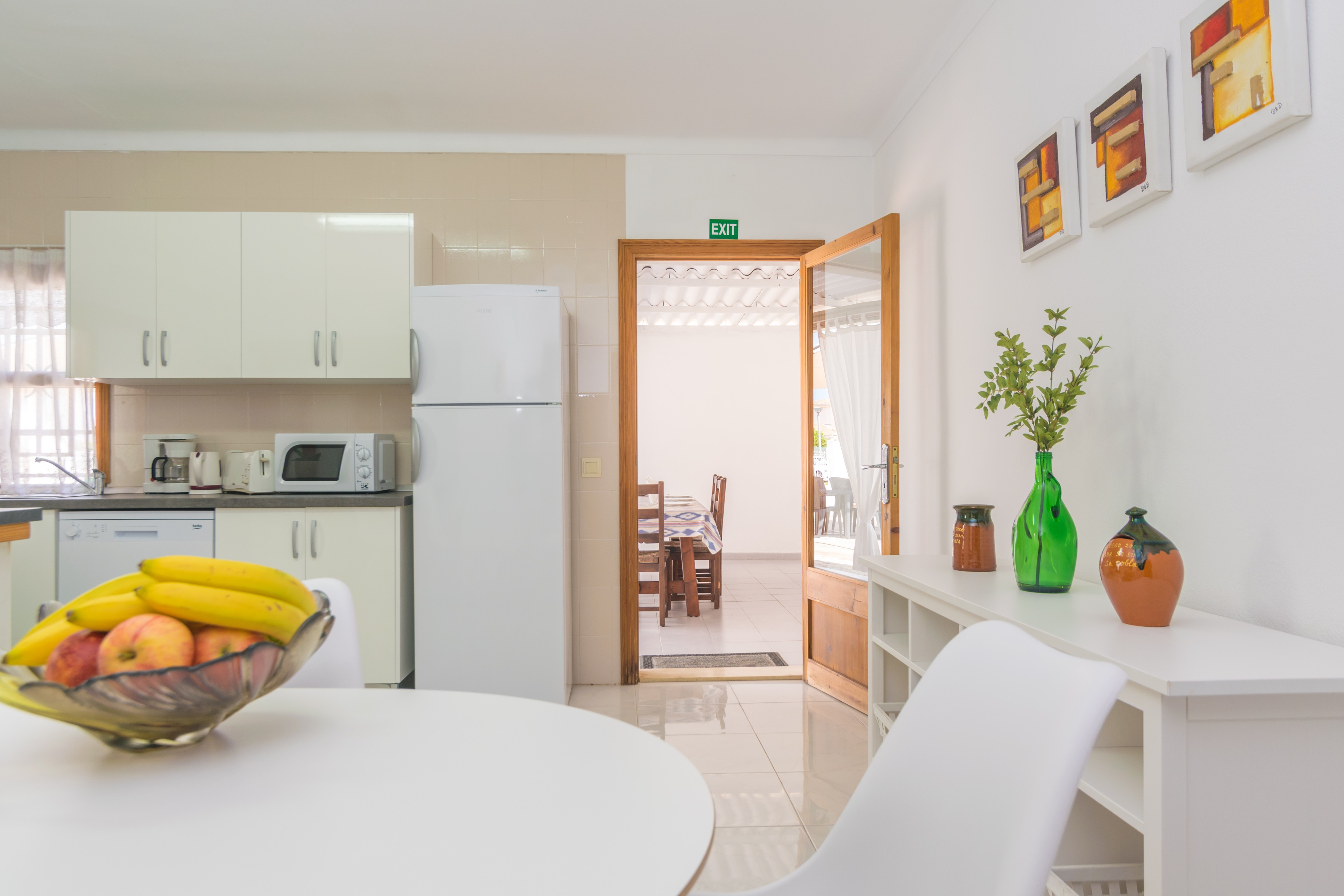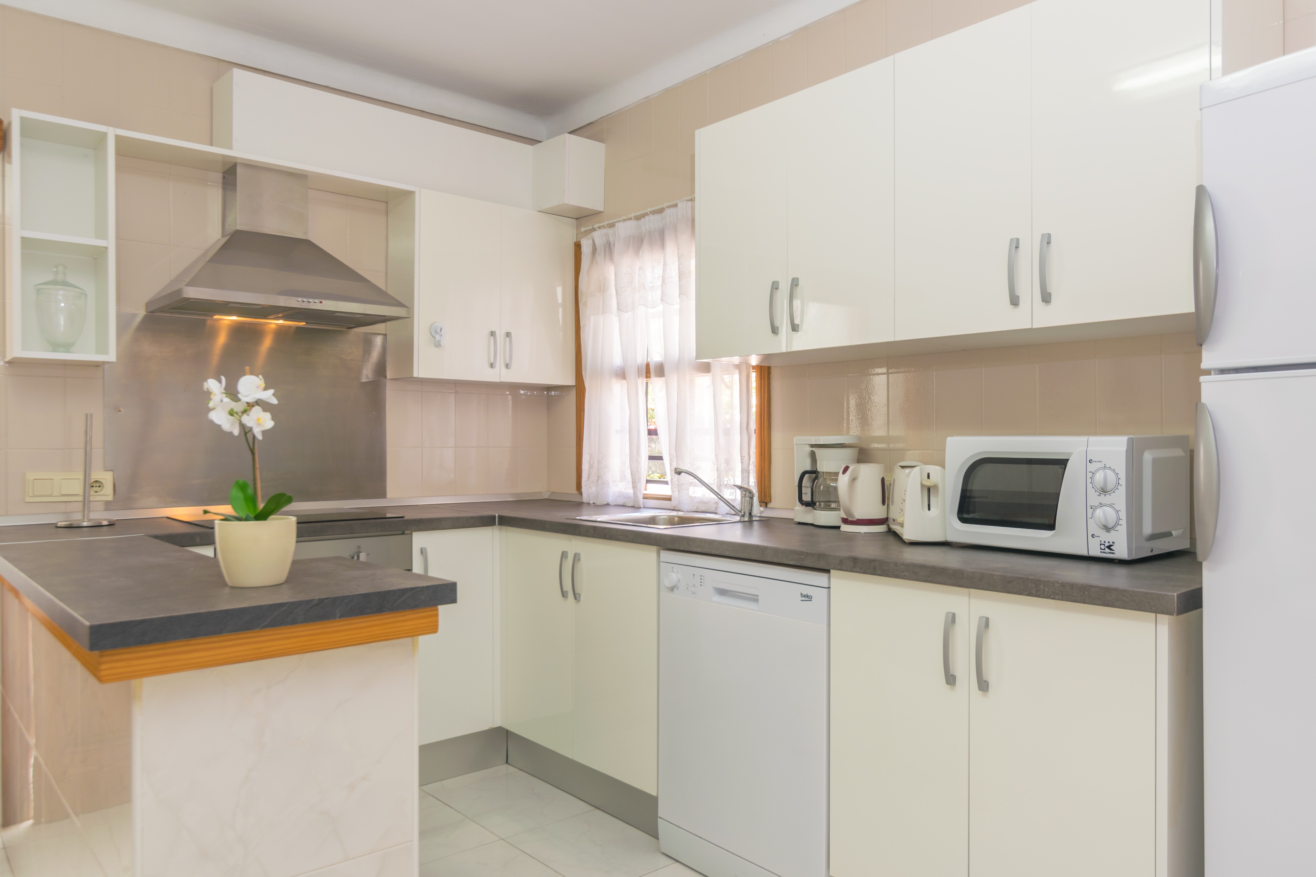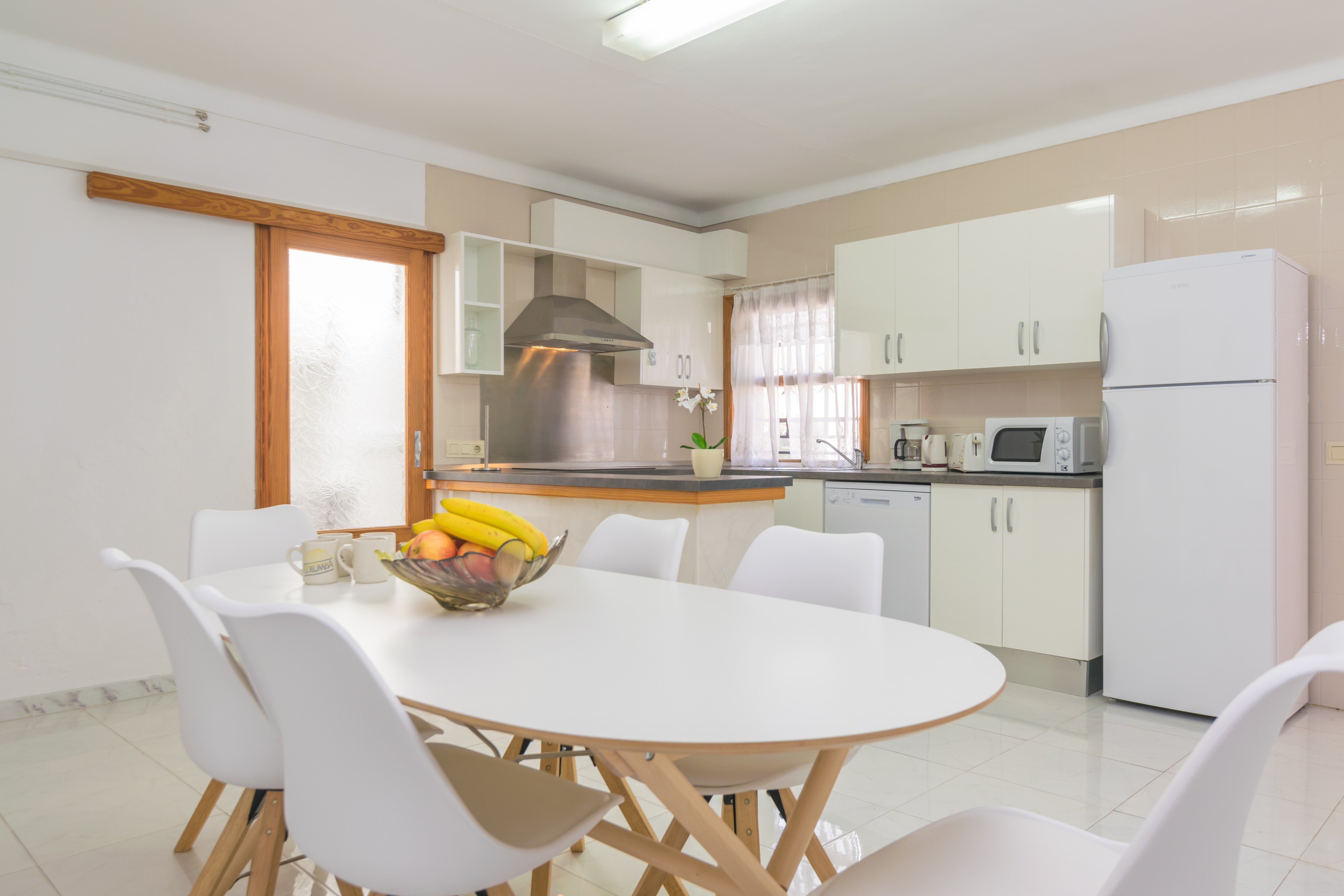 Het huis heeft twee mooie woonkamers, waarvan een met een tv en de andere met airconditioning. De keuken-eetkamer is echt groot en heeft een keramisch fornuis en alle benodigde keukengerei en huishoudelijke apparaten om het net te doen alsof je thuis bent. De wasruimte is apart en heeft een wasmachine, een strijkijzer en een strijkplank. Er zijn vier slaapkamers, waarvan drie met een kledingkast. Twee van de slaapkamers hebben een tweepersoonsbed en de andere twee hebben elk een eenpersoonsbed. Er is wel een airconditioner in de verdeler. Er is beschikbaarheid voor een kinderbedje en een kinderstoel. Tot slot zijn er twee badkamers met douches die het hele huis bedienen.