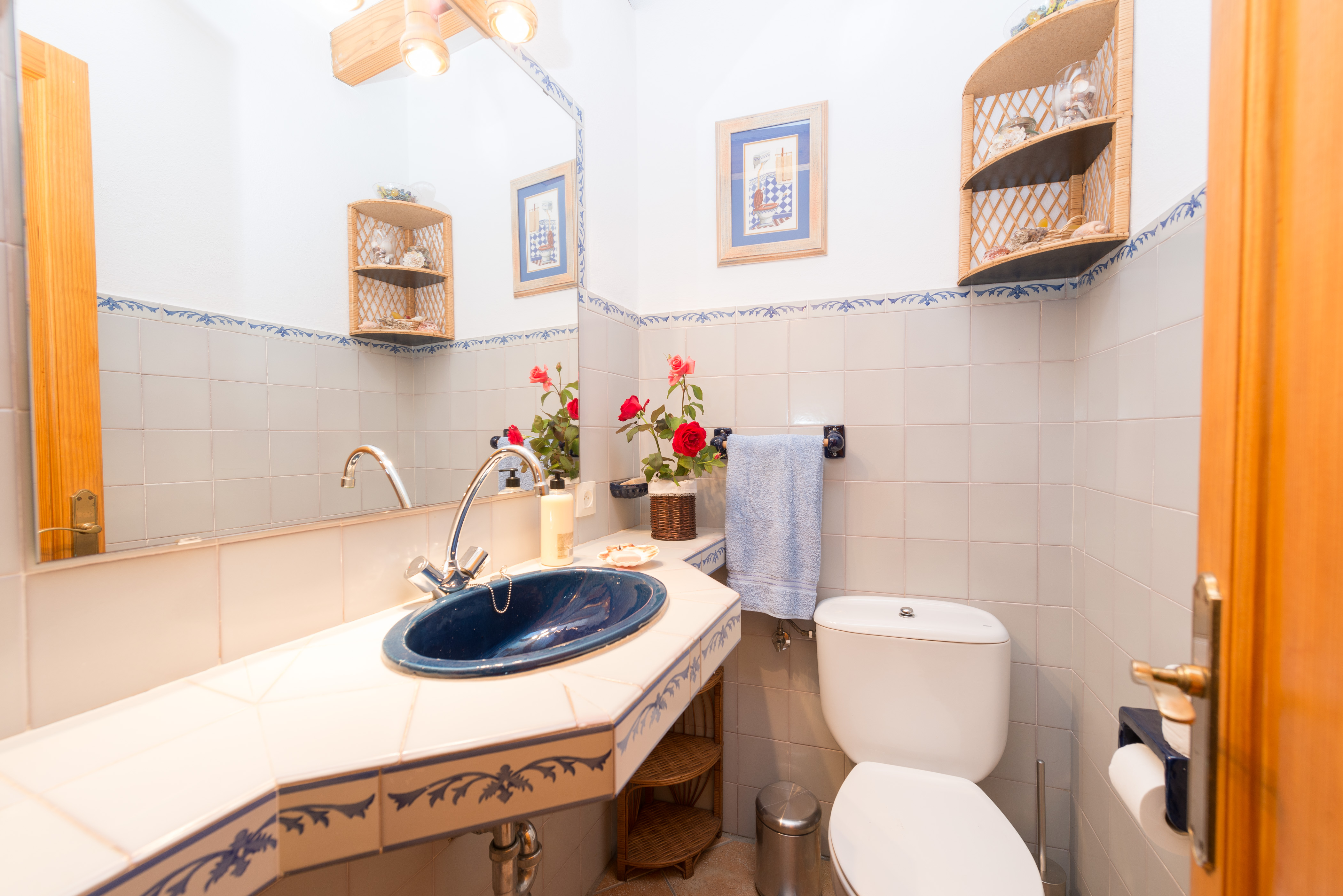 Op de bovenverdieping bevinden zich de slaapkamers met een tweepersoonsbed. Een kinderbedje en kinderstoel zijn beschikbaar als u met een baby reist. Een badkamer met bad en douche bedient de hele verdieping. Een derde badkamer met douche is buiten te vinden naast de barbecue. Het huis heeft centrale verwarming en wasfaciliteiten: wasmachine, strijkijzer en strijkplank.