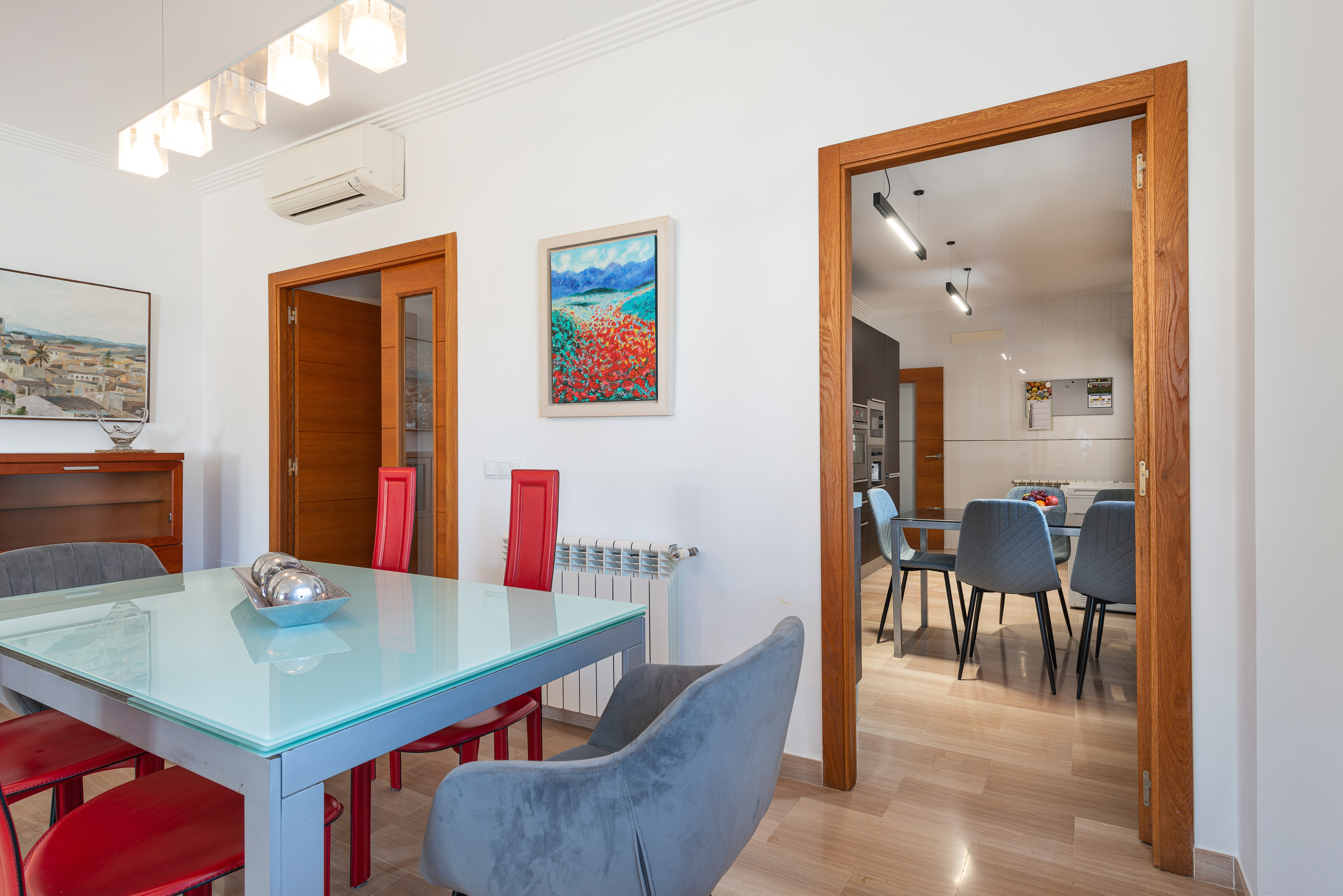 Dit charmante huis met twee verdiepingen heet u van harte welkom met een foyer op de begane grond, die directe toegang biedt tot het zwembad. Als u naar de begane grond gaat, wordt een ruime en lichte woonkamer onthuld, uitgerust met een Smart TV en airconditioning, aangevuld met een royale bank die uitnodigt tot ontspanning. De aparte keuken is voorzien van een gasfornuis, een koffiezetapparaat in barista-stijl en al het benodigde keukengerei voor het bereiden van heerlijke maaltijden. Voor de rest drie slaapkamers waarvan één met een complete badkamer met bubbelbad, tweepersoonsbed en airconditioning, en de andere twee met tweepersoonsbedden. Een laatste badkamer met douche, wasmachine, strijkijzer en strijkplank bieden extra comfort. Als u met een baby reist, zijn er een wieg en een kinderstoel aanwezig, zodat u verzekerd bent van een zorgeloos verblijf met het hele gezin.