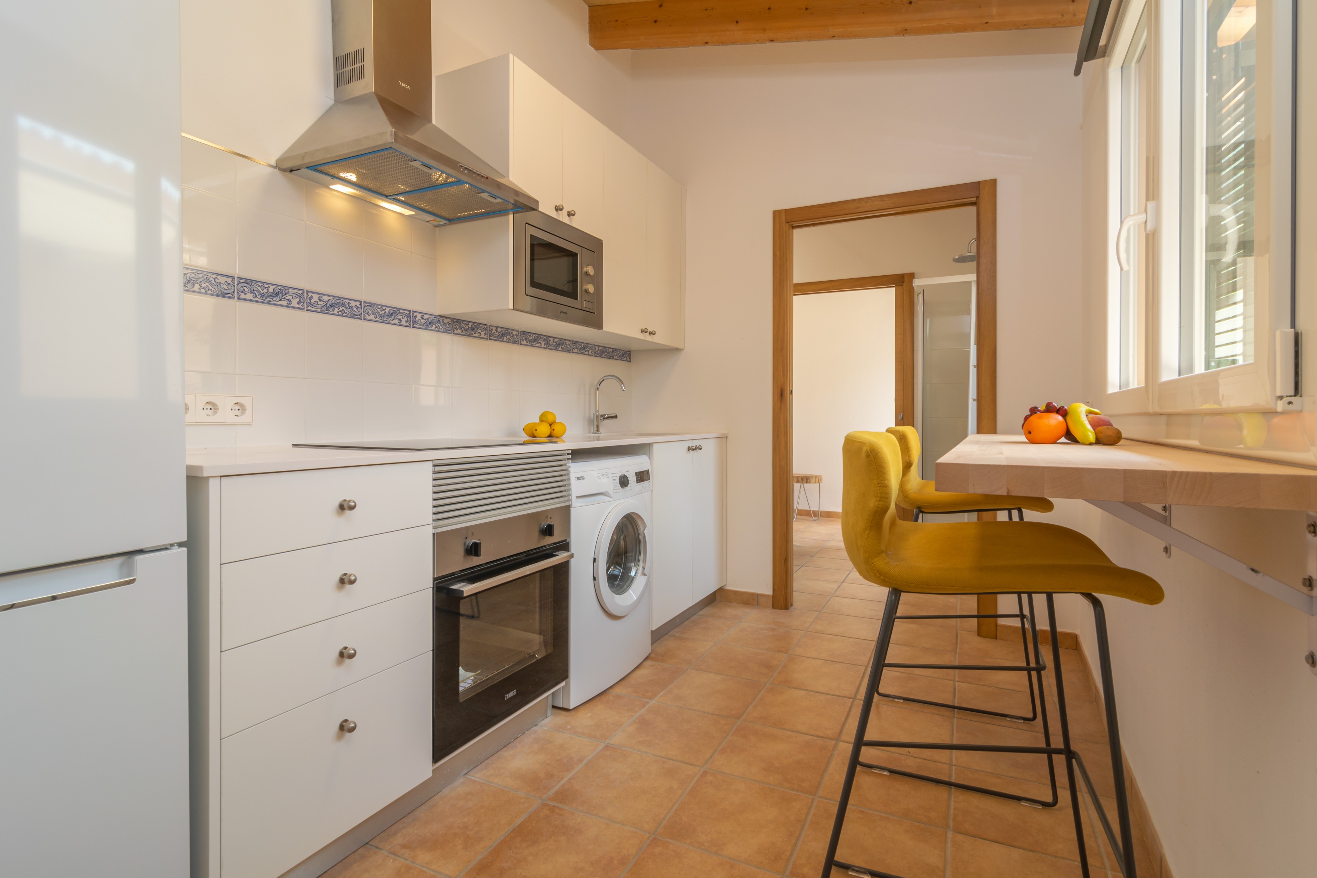 Het interieur van het huis met twee verdiepingen is onlangs gerenoveerd. Het is smaakvol ingericht, waarbij rustieke elementen worden gecombineerd met de modernste apparatuur, en ontworpen om u de rust te geven die u verdient. De mooie woonkamer is voorzien van AC- en TV-stoelen en heeft tevens een eethoek met uitzicht op het terras. De inductiekookplaat heeft alles wat je nodig hebt om in alle comfort te koken. Er is ook een wasmachine, strijkijzer en strijkplank in het huis. Als het tijd is om te slapen, zijn er 3 tweepersoonsslaapkamers, allemaal met airconditioning en een en-suite badkamer met douche. Eén ervan bevindt zich op de begane grond, de andere twee zijn bereikbaar via een trap. Als u met uw baby reist, kunnen wij een kinderbedje en kinderstoel ter beschikking stellen.