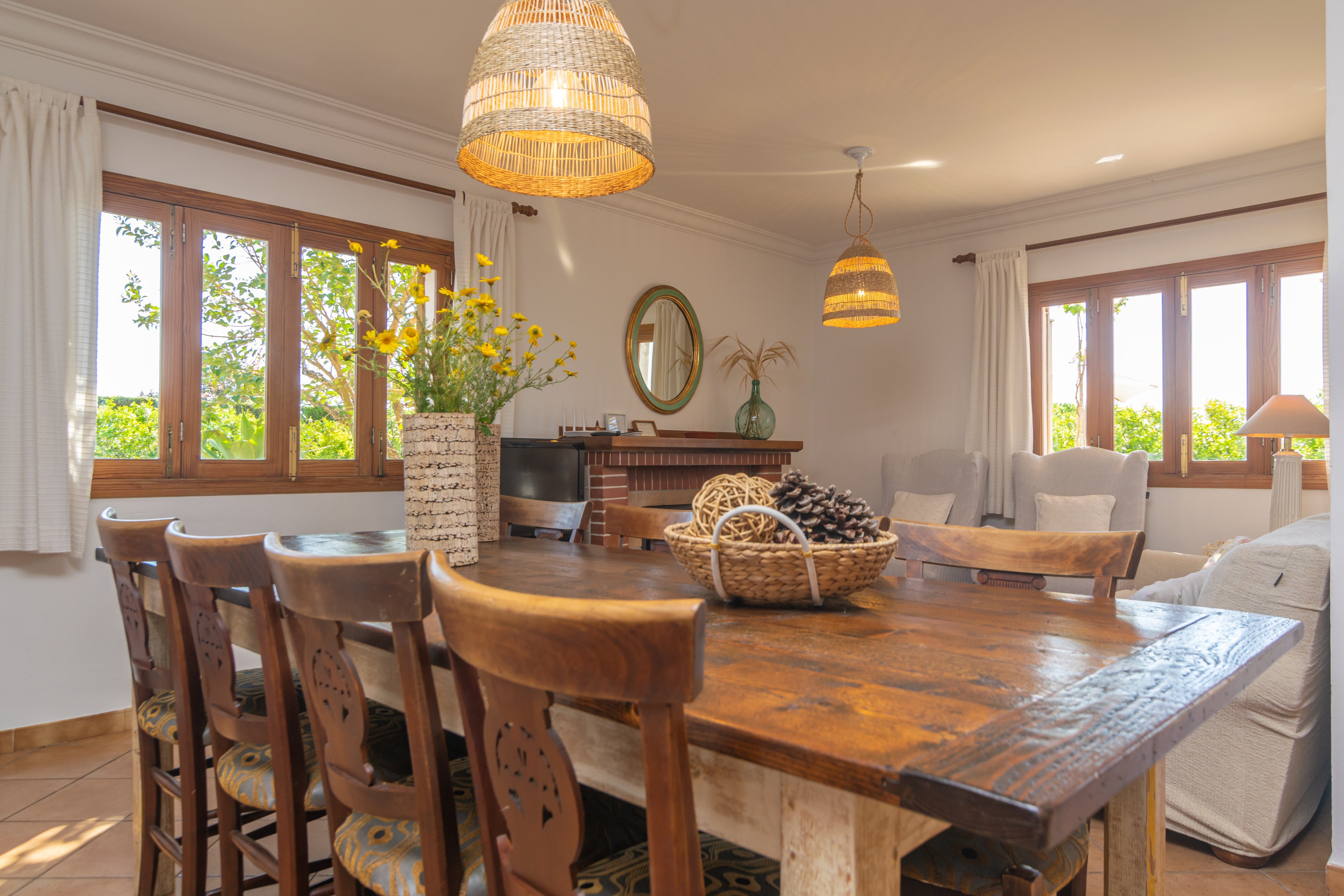 Het huis bestaat uit twee verdiepingen. Als u binnenkomt, vindt u een ruime en comfortabele woon - eetkamer met AC, de perfecte plek voor uw familie maaltijden en de ruimte om te kletsen en te rusten en naar de TV-Sat te kijken. De keuken is onafhankelijk, en het biedt een gasfornuis, oven en een prachtige Mallorcaanse stijl, onder vele andere functies. Er zijn nog twee badkamers met douche op deze verdieping voor de hele accommodatie. Wanneer het tijd is om te rusten, zijn er 3 slaapkamers. Twee van hen zijn op de hoofdverdieping en hebben kasten, een met een tweepersoonsbed en de andere met een eenpersoonsbed. De laatste kamer is boven en heeft twee aparte bedden en een zithoek met een televisie (maar geen satellietkanalen). De wasmachine staat op het terras, samen met het strijkijzer en de strijkplank. Een kinderbedje en kinderstoel zijn beschikbaar als u met uw baby reist.