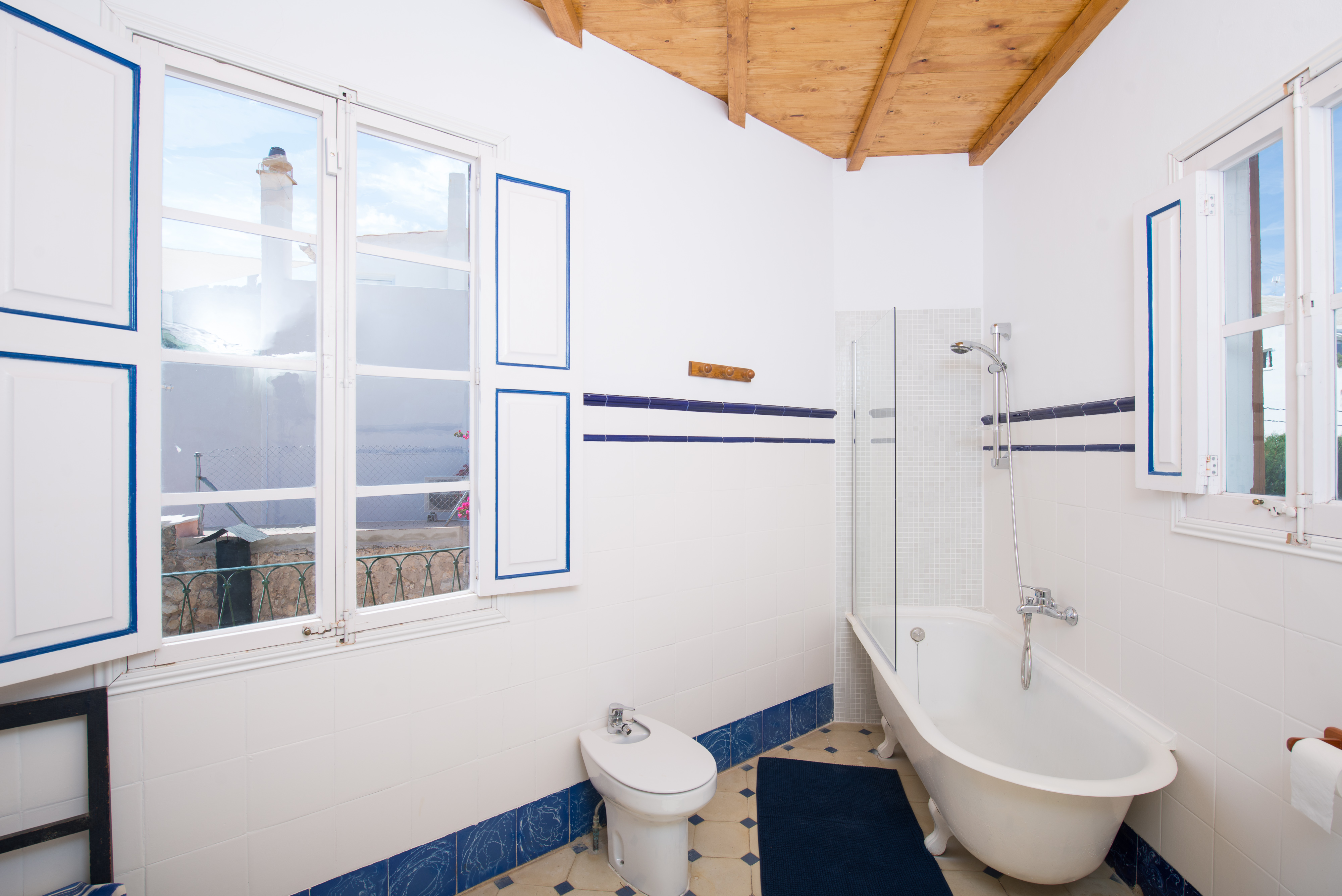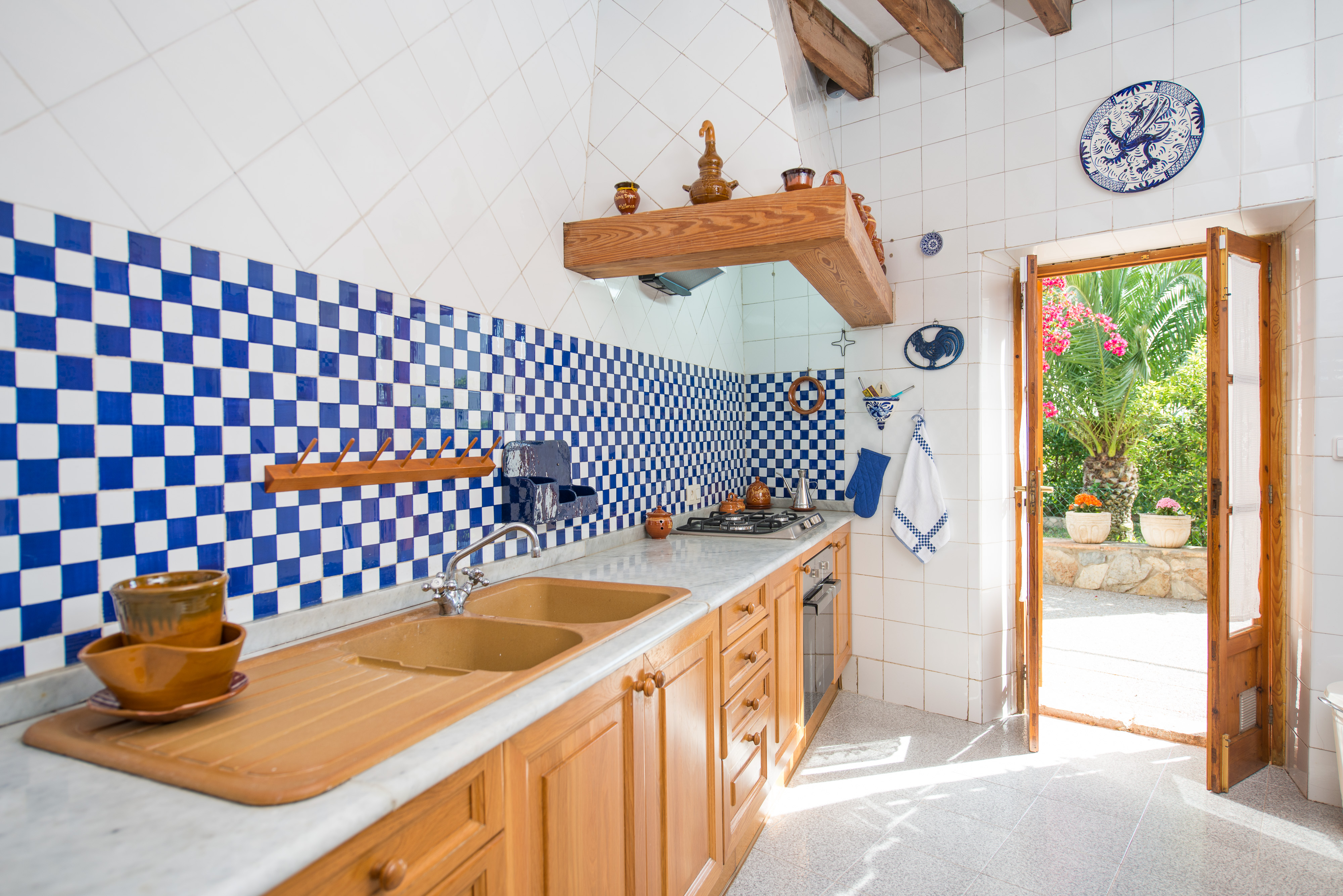 De wooneetkamer is uitgerust met AC en satelliet TV. Het is ideaal om te ontspannen of je favoriete boek te lezen bij de houtkachel. De inrichting is typisch Mallorcaans en de originele vloertegels in de woonkamer springen in het oog. De keuken is gasonafhankelijk en heeft alles wat je nodig hebt om comfortabel te koken. Er is ook een wasmachine, strijkijzer en strijkplank. Op de begane grond is er een slaapkamer met een tweepersoonsbed en een badkamer met een douche. Op de eerste verdieping zijn de andere slaapkamers. Drie slaapkamers hebben elk twee eenpersoonsbedden en een van hen heeft ook een eigen badkamer met een bad. Een vijfde slaapkamer met een tweepersoonsbed en een badkamer met een douche maakt je verblijf compleet. Alle slaapkamers hebben AC, ventilatoren en kasten om je spullen in op te bergen. De slaapkamer met een tweepersoonsbed en een van de slaapkamers met eenpersoonsbedden hebben een tussendeur, maar tegelijkertijd hebben ze elk een aparte ingang. Het huis heeft zonnepanelen om energie te besparen.