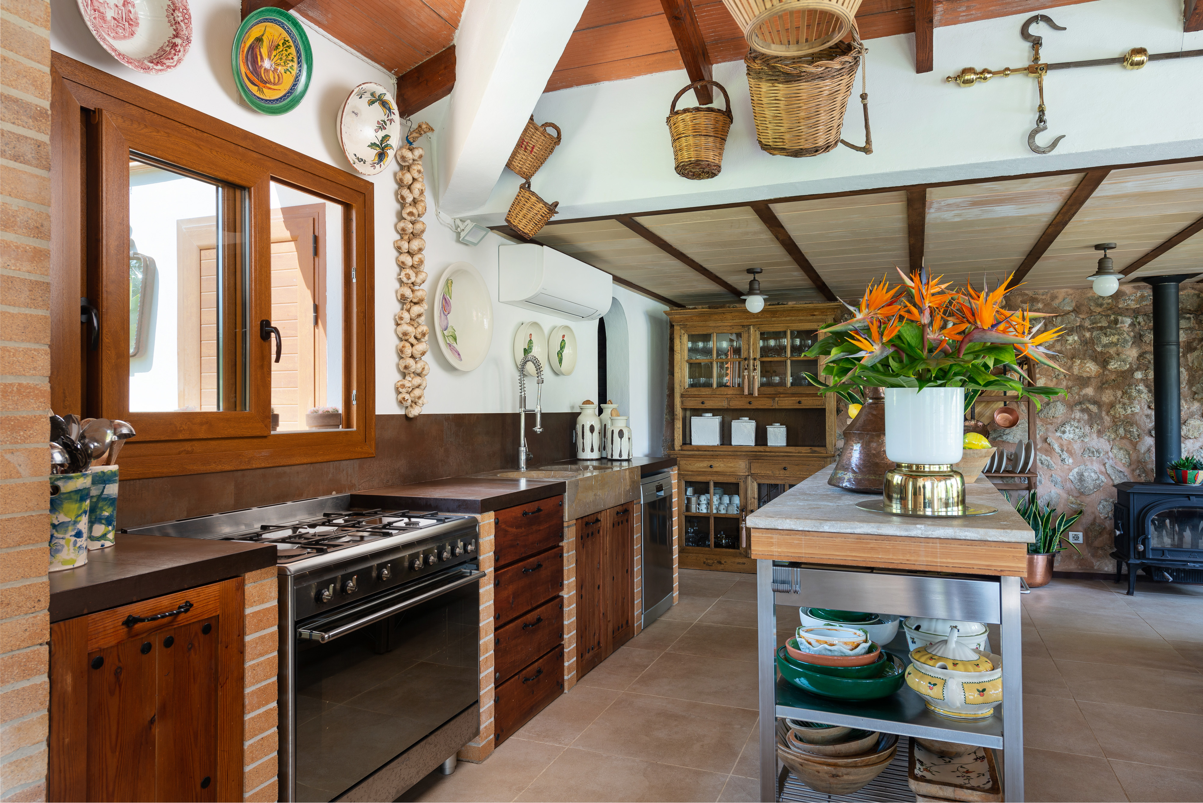 In het eerste gebouw bevindt zich een lichte en goed uitgeruste keuken, voorzien van een gaskookplaat, keukengerei en een vaatwasser. Daarnaast is er in dit gebouw een toilet met toegang van buitenaf. De eigenaren hebben de keuken met veel aandacht voor detail ingericht, wat zorgt voor een warme sfeer. Een grote eettafel biedt voldoende ruimte voor u en uw gasten, terwijl de kamer is uitgerust met airconditioning en een satelliettelevisie voor extra gemak.