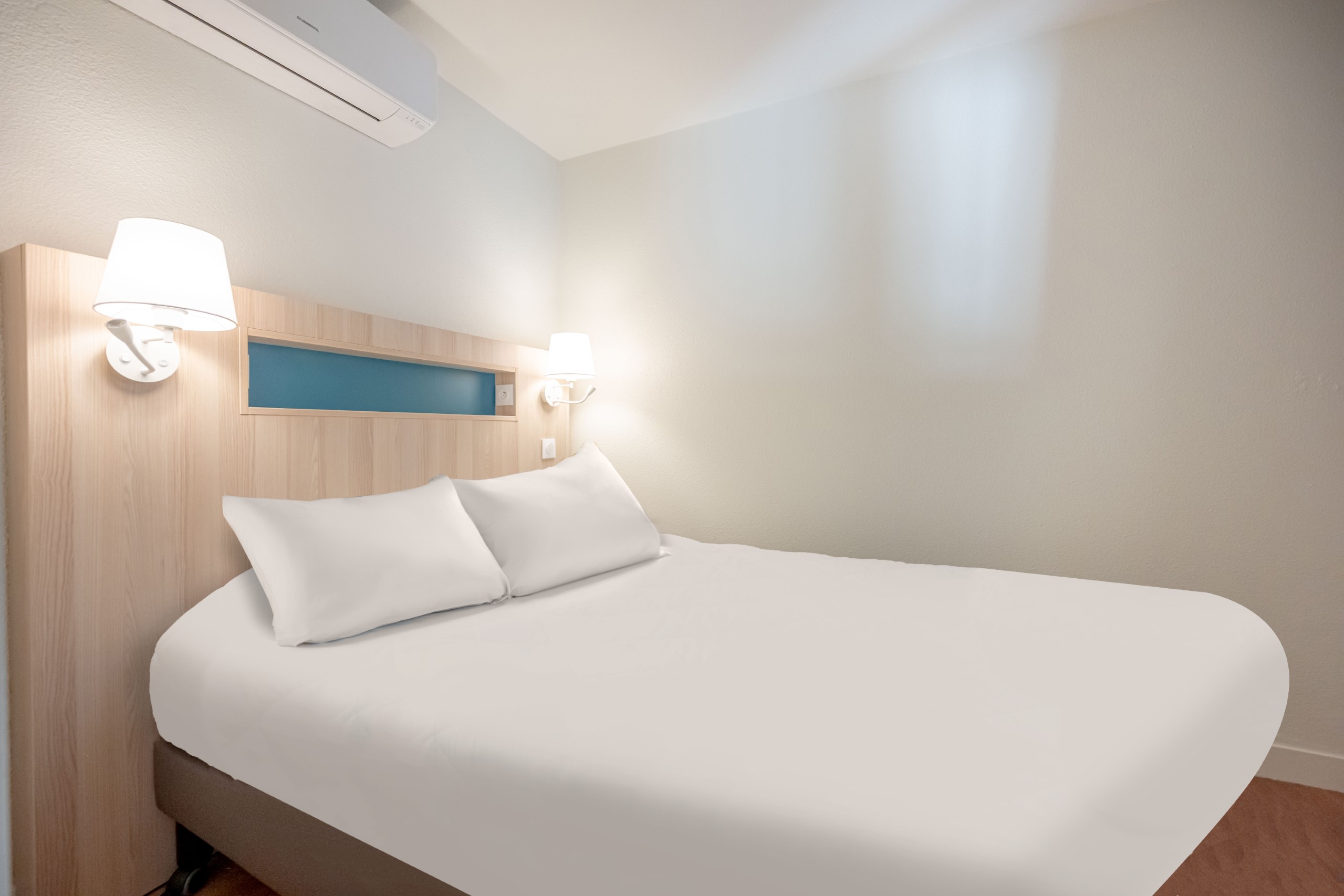 Slaapkamer: Eén slaapkamer met een comfortabel tweepersoonsbed.