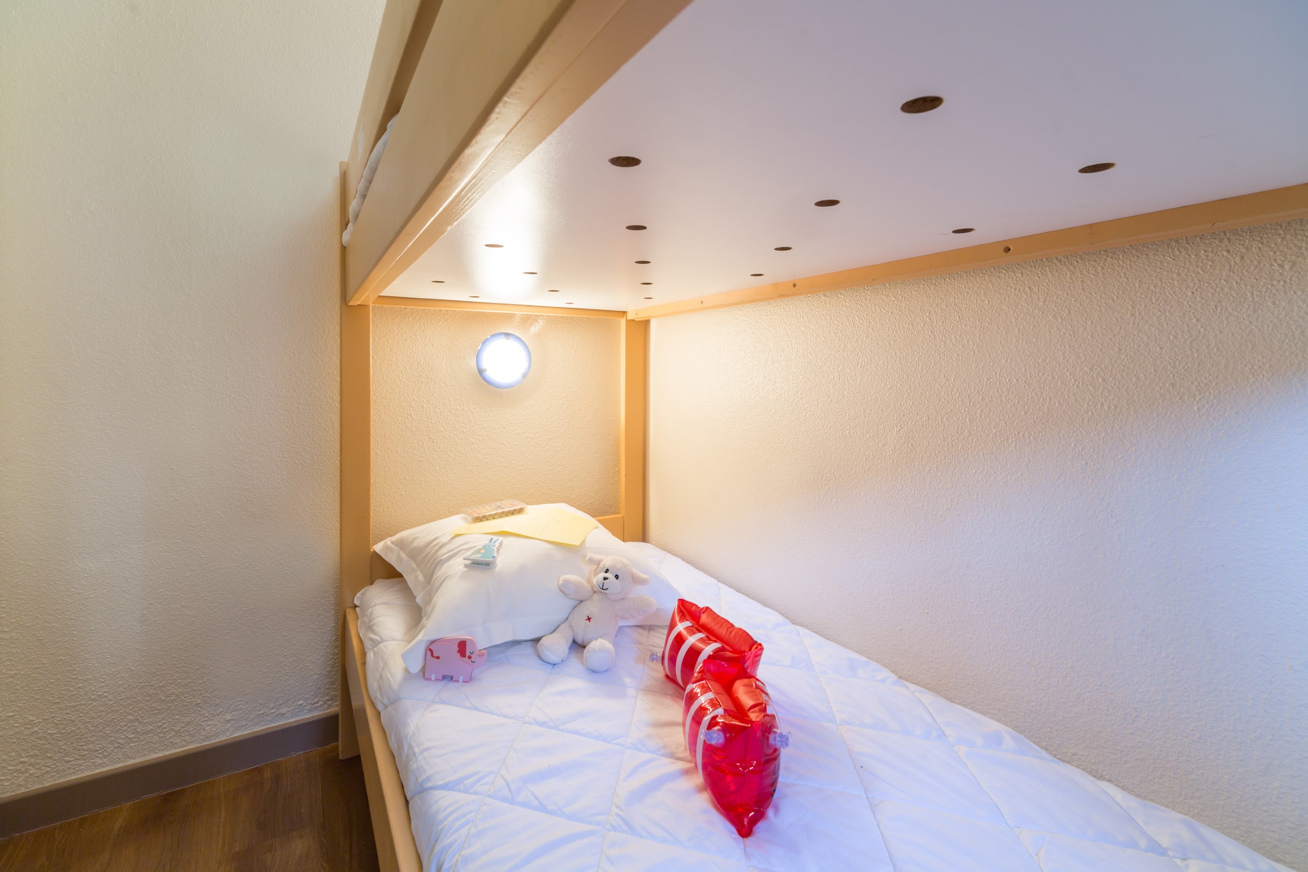 Woonkamer: Uitgerust met twee slaapbanken (waarvan één met een uitschuifbed, aanbevolen voor kinderen), en een slaapnis met stapelbedden (ook aanbevolen voor kinderen).