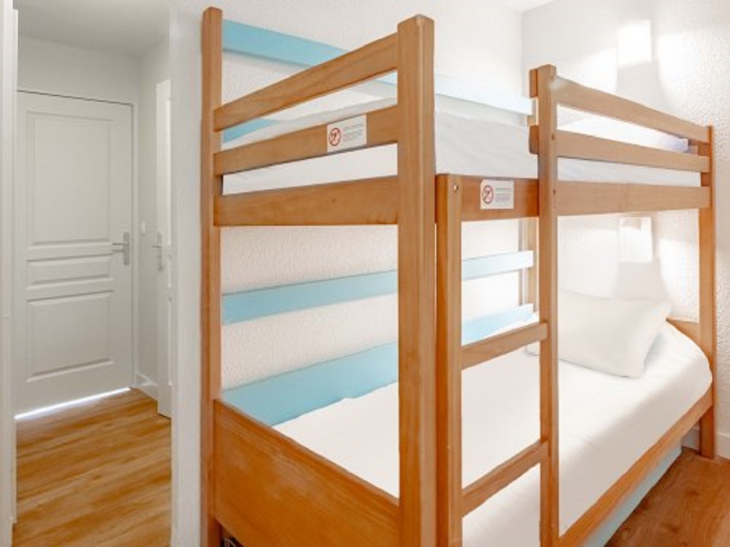 Woonkamer: Uitgerust met een tweepersoons slaapbank en een aparte slaapnis met stapelbedden (aanbevolen voor kinderen).