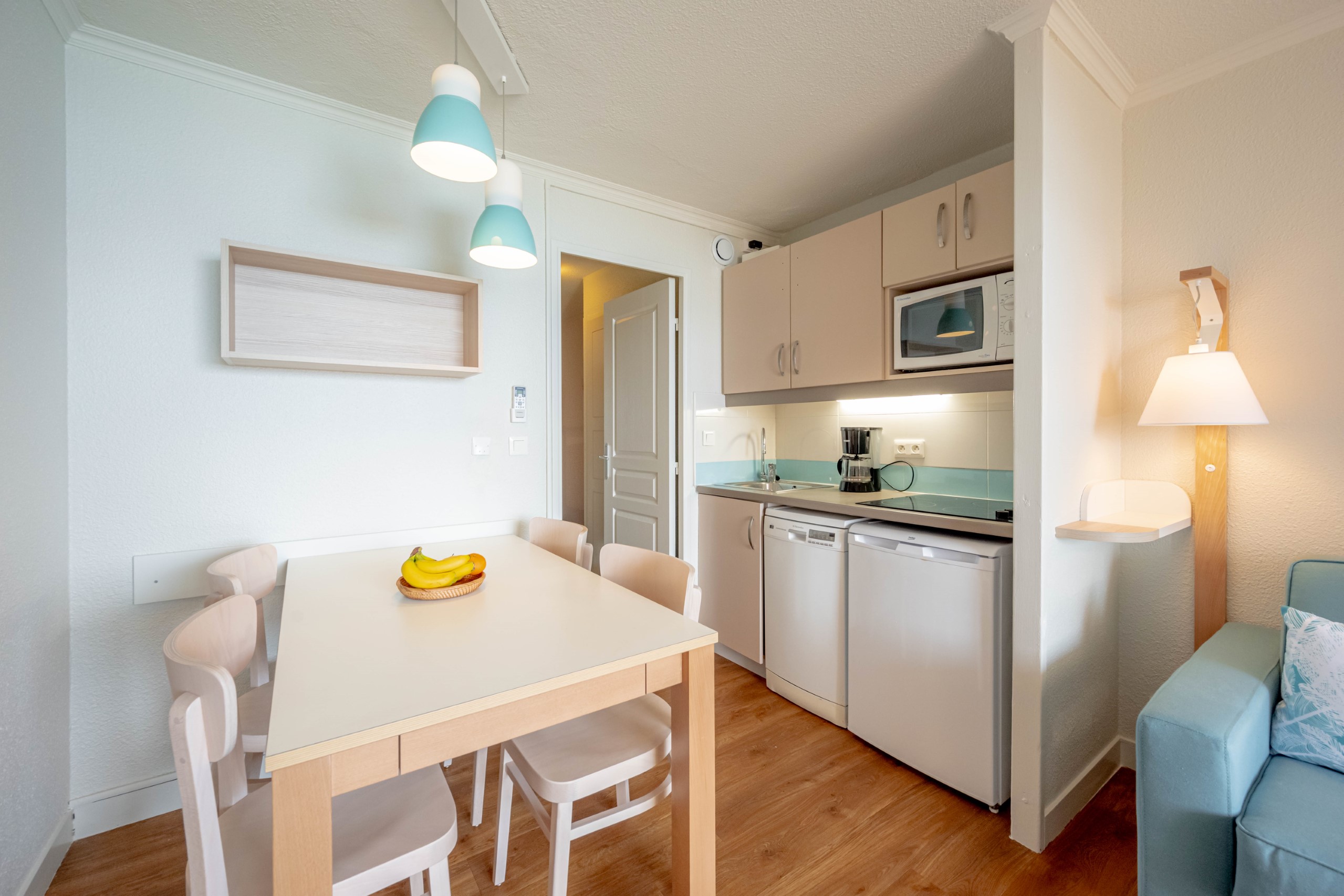 Kitchenette: Een uitgeruste, open kitchenette geïntegreerd in de woonkamer.