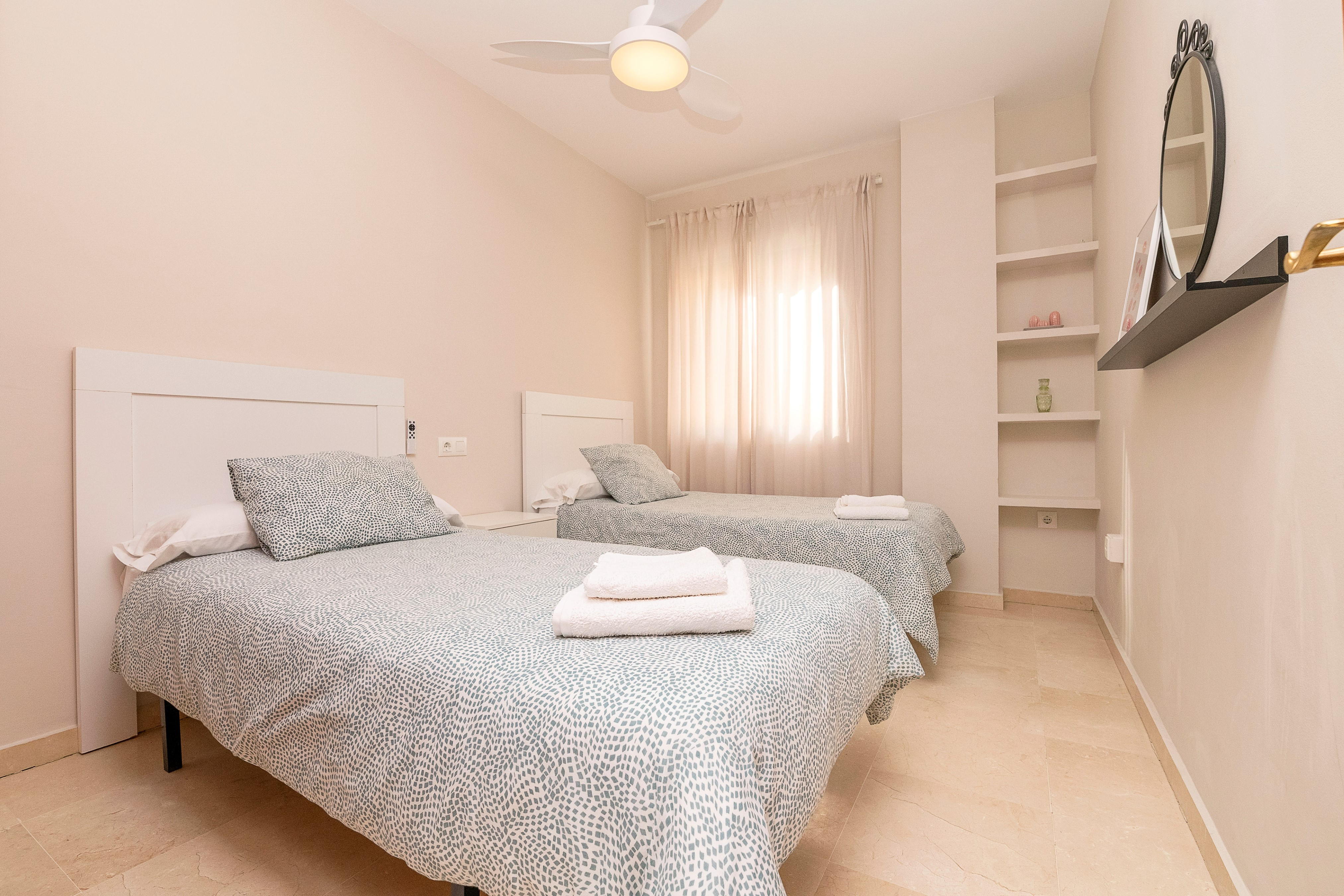 Binnen is de woon-eetkamer uitgerust met airconditioning en Smart TV en een slaapbank voor uw twee extra gasten. Het biedt een gezellige ruimte om samen met uw gezelschap van maaltijden te genieten. De keuken met keramische kookplaat beschikt over de basisuitrusting om heerlijke maaltijden te bereiden en de aparte wasruimte biedt een wasmachine, strijkijzer en strijkplank. Wanneer het tijd is om te slapen, heb je drie slaapkamers tot je beschikking. De eerste slaapkamer heeft een onderschuifbed, de tweede slaapkamer heeft twee eenpersoonsbedden en de derde slaapkamer heeft een tweepersoonsbed en een en-suite badkamer met ligbad. Er is ook een complete badkamer met een douche. Alle slaapkamers zijn voorzien van een ventilator en kledingkast om uw spullen in op te bergen. Als u met uw baby reist, kunnen wij u voorzien van een kinderbedje.