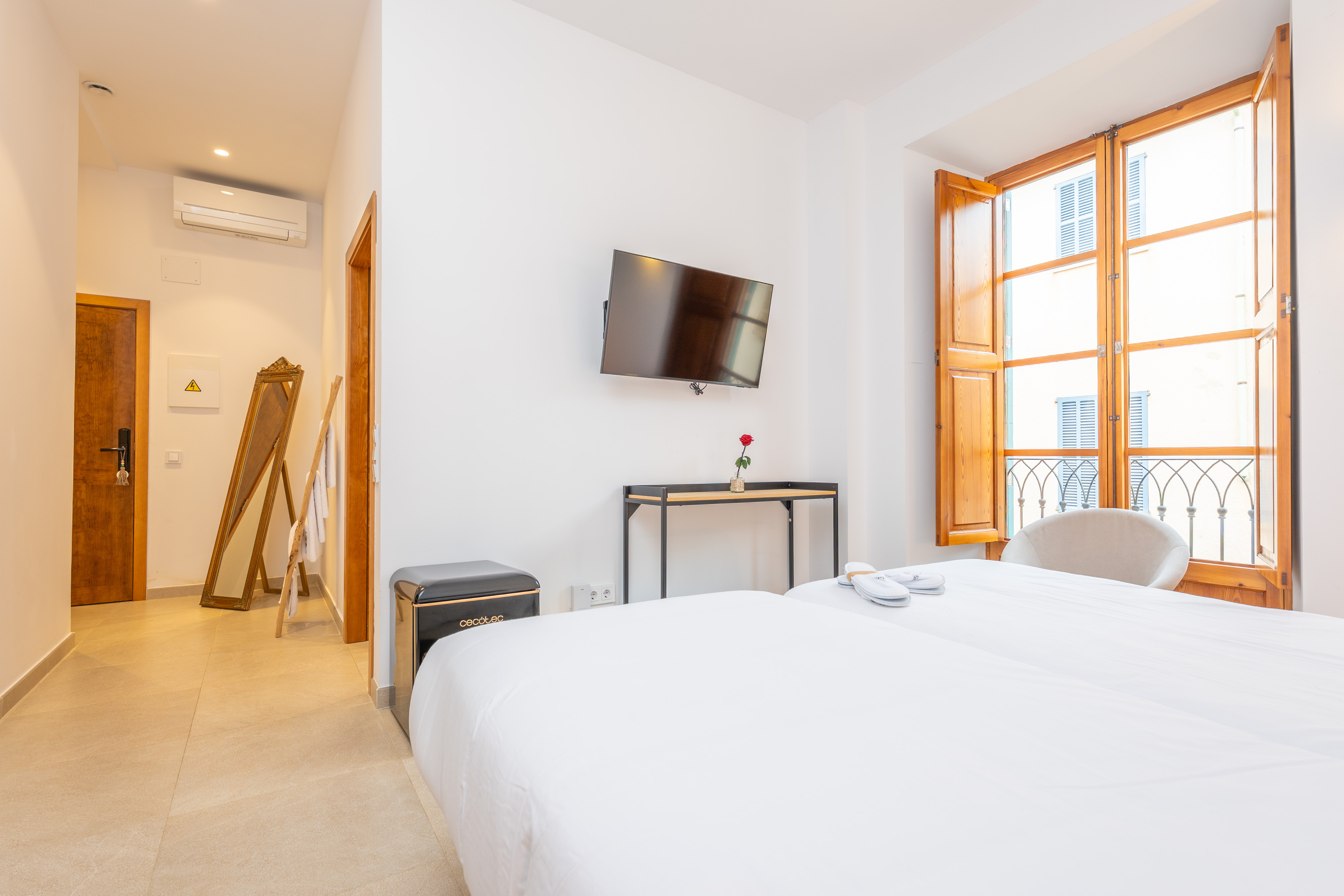 Veel kamers bieden een betoverend uitzicht op de stad, zodat u vanuit uw comfortabele kamer kunt genieten van de pittoreske omgeving van Sineu. Houd er rekening mee dat de kamers op de bovenste verdiepingen alleen via een trap bereikbaar zijn, wat bijdraagt aan de traditionele charme van het hotel.