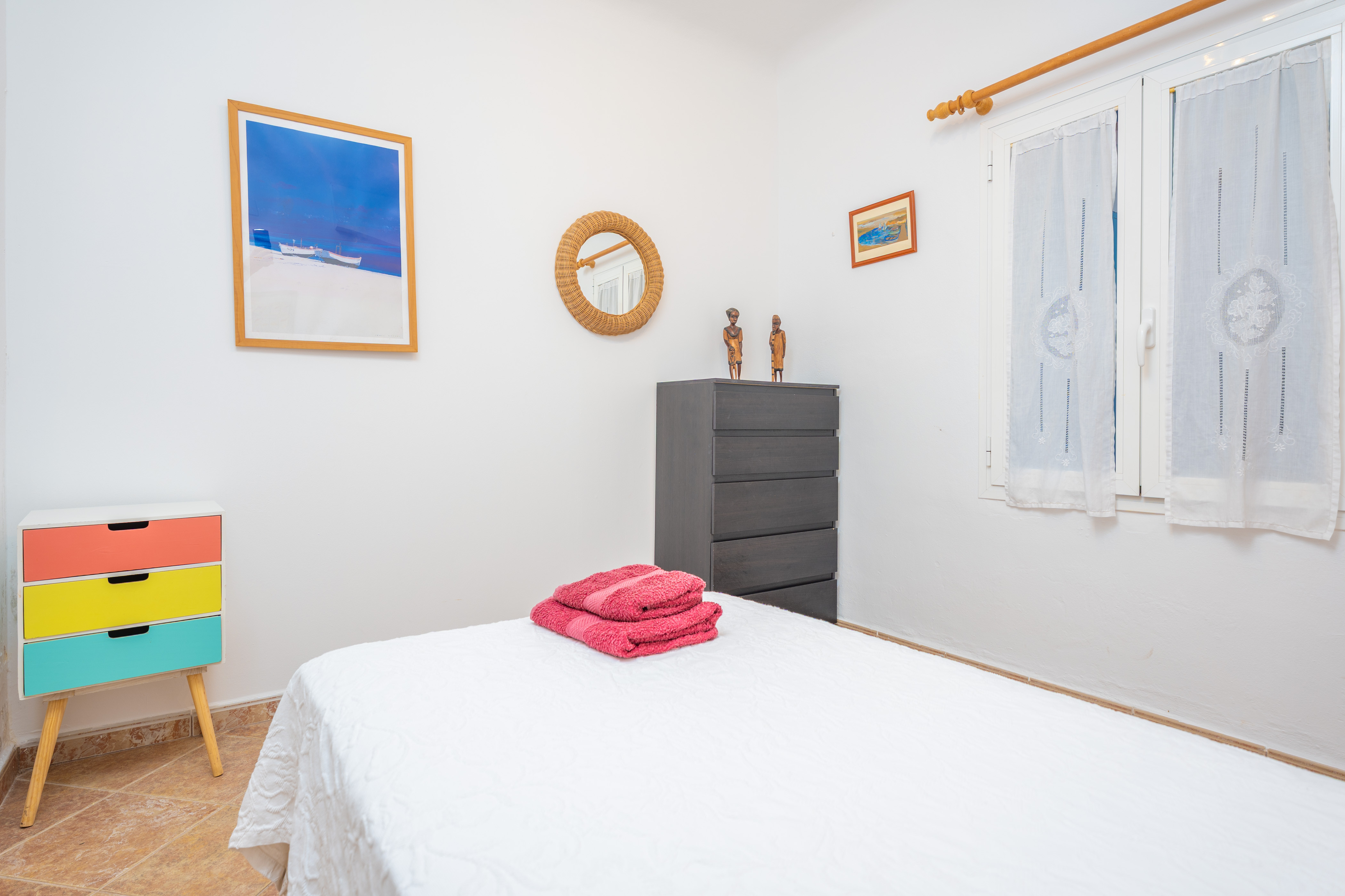 Het interieur van het huis is verdeeld over twee verdiepingen. Op de begane grond vind je 2 slaapkamers met elk twee eenpersoonsbedden, een badkamer met douche en een kleine binnenplaats die voor veel licht zorgt bij de ingang van het huis en een van de slaapkamers.