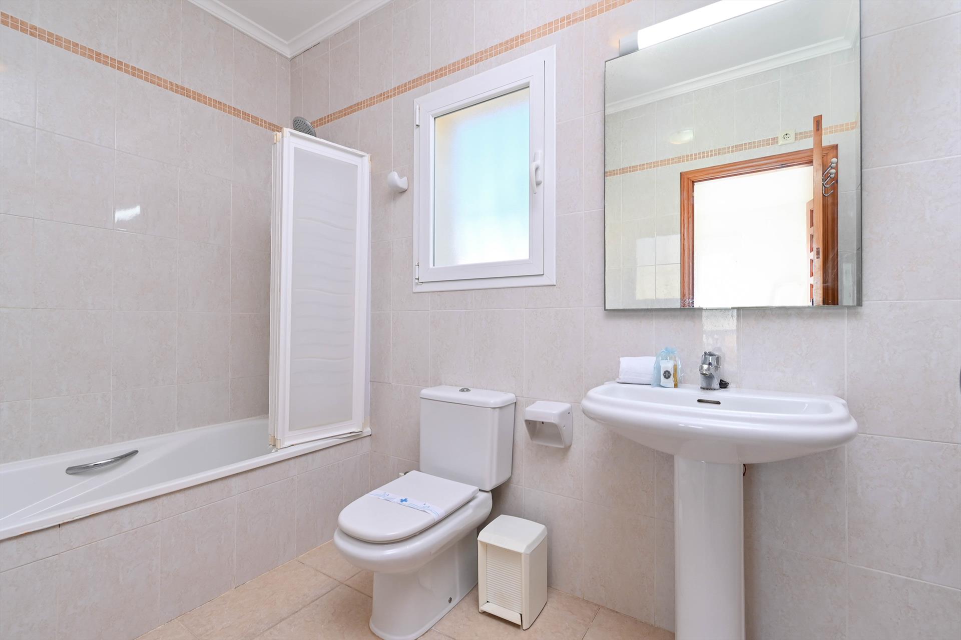 • en-suite badkamer met enkele wastafel, bad/douchecombinatie en toilet