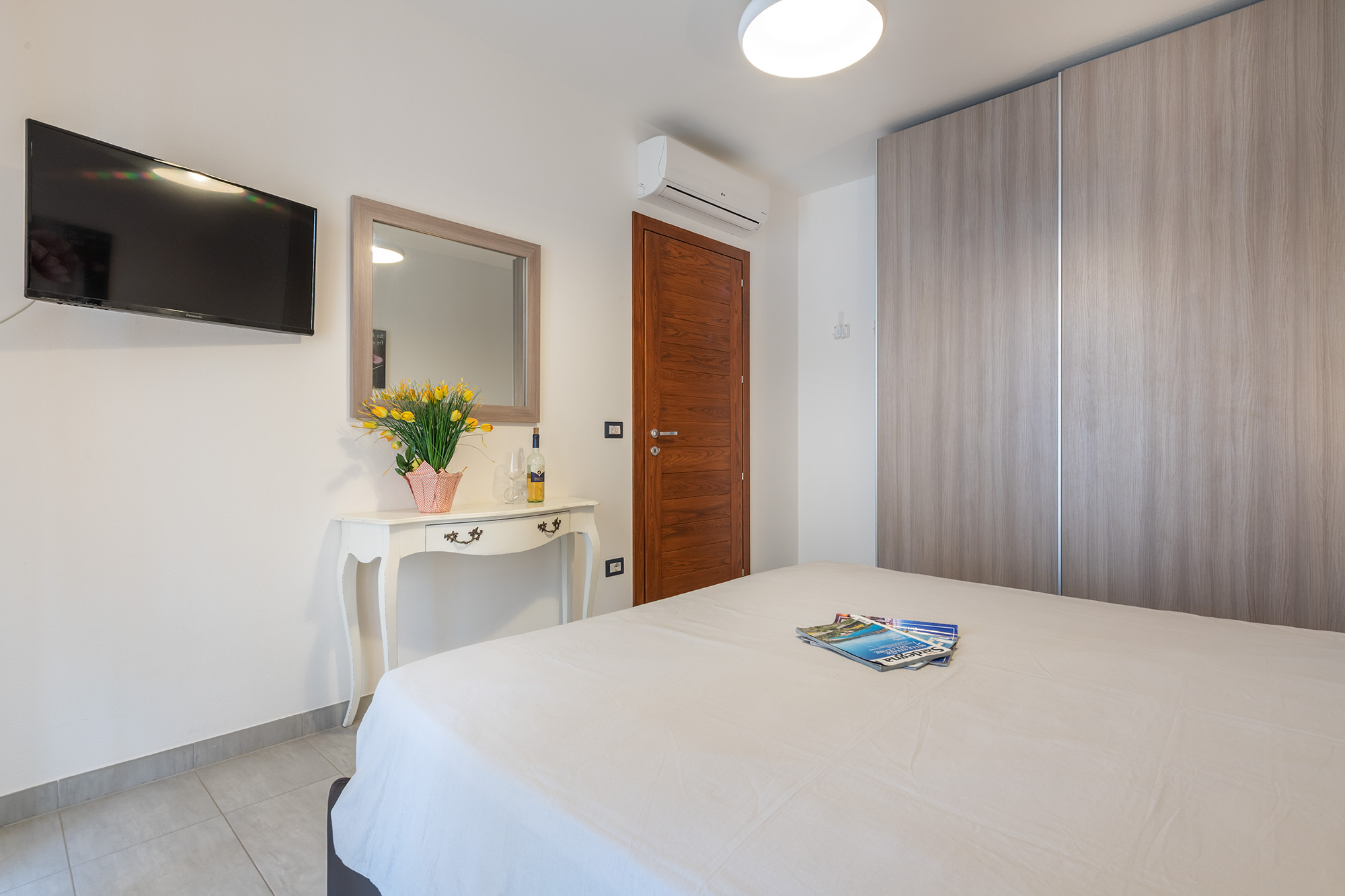 Het appartement is uitgerust met moderne gemakken, waaronder een flatscreen-tv, airconditioning in zowel de woonkamer als de slaapkamers, een vaatwasser, wasmachine, magnetron, haardroger, strijkijzer en strijkplank en een video-intercom, wat zorgt voor een comfortabel en zorgeloos verblijf.