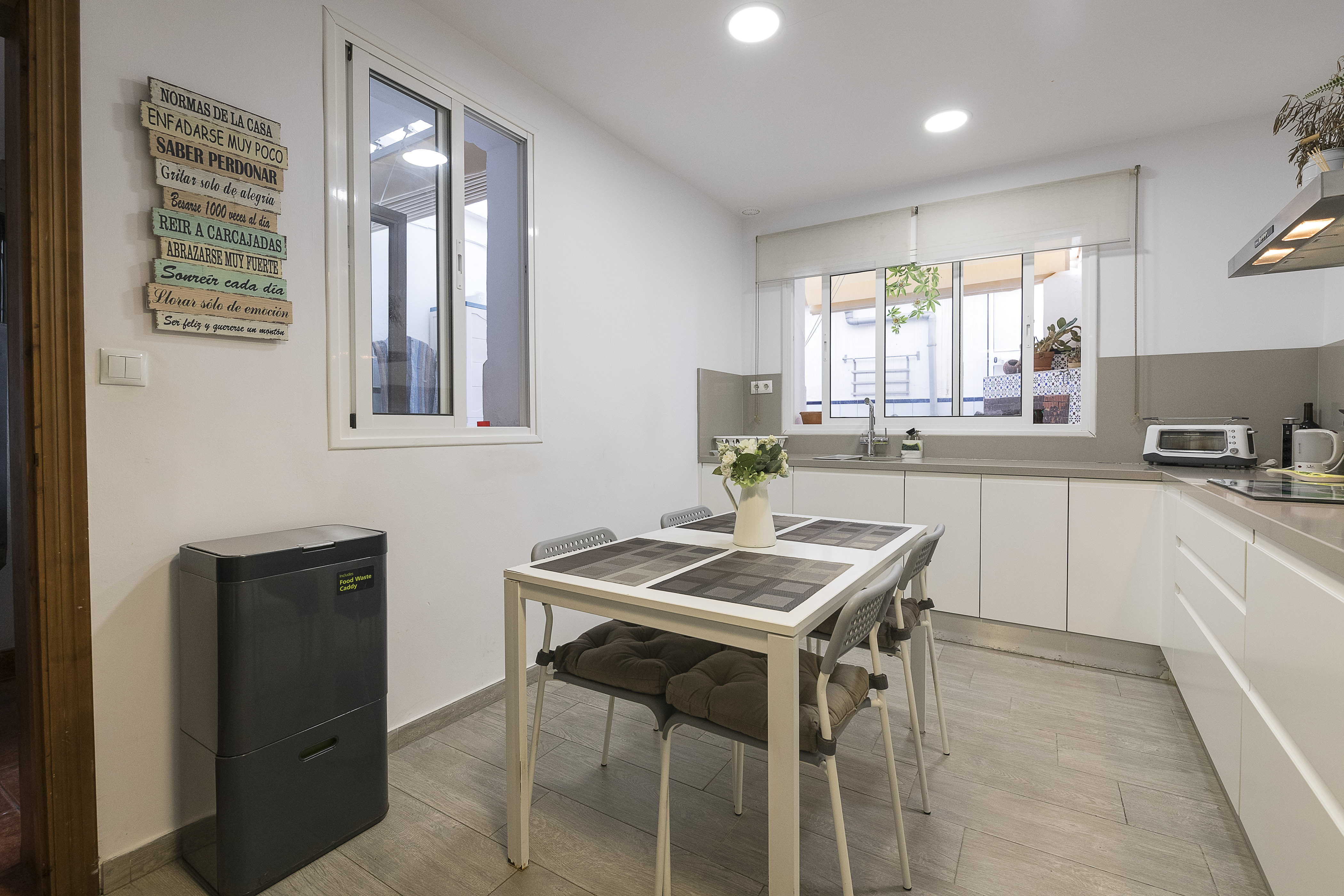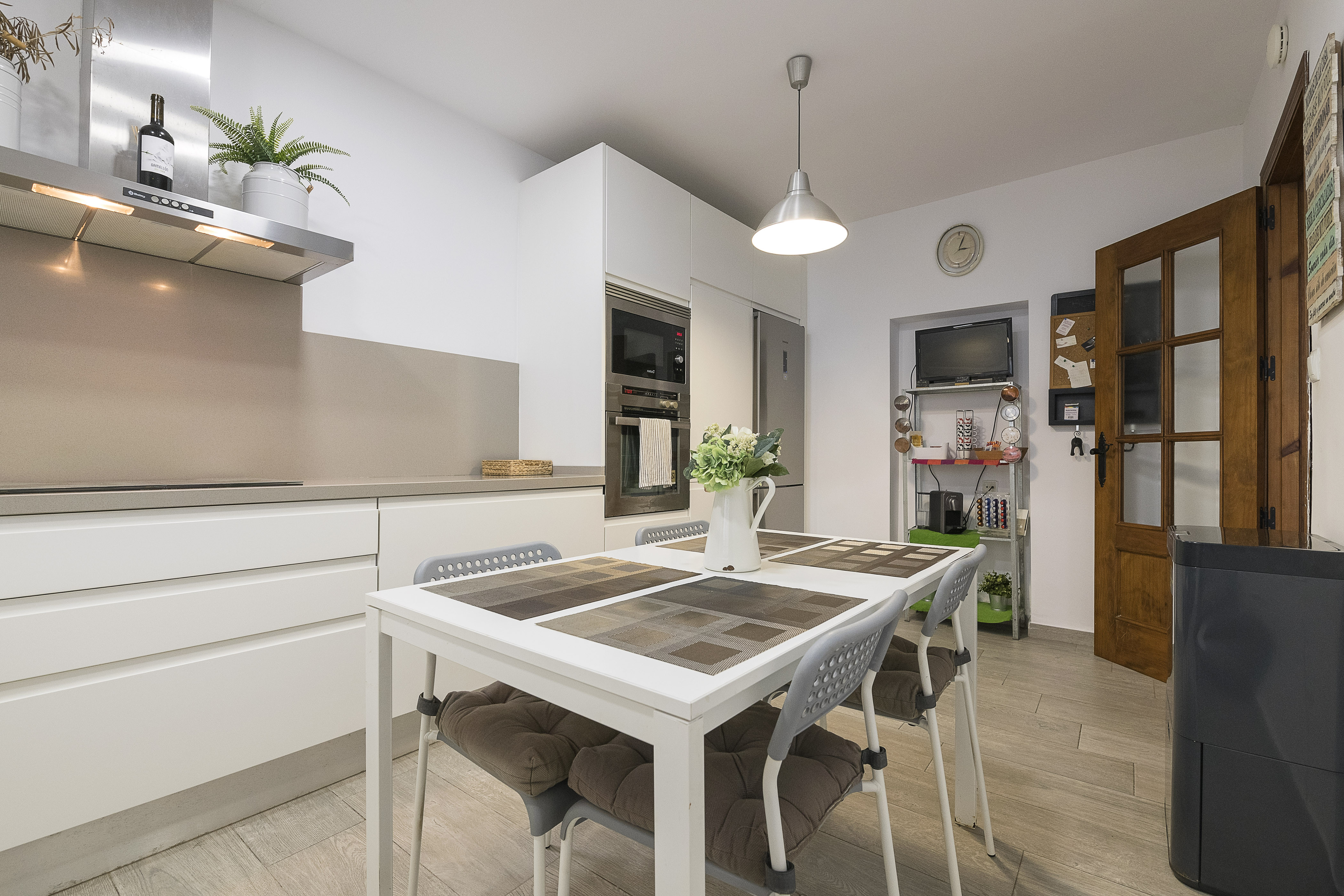 Het interieur van de twee verdiepingen tellende flat is ontworpen om u de rust te bieden die u verdient. Op de begane grond is er een gezellige woonkamer met TV-Sat en airconditioning, een ruime eetkamer en een moderne aparte keuken, die is uitgerust met een keramische kookplaat en al het benodigde keukengerei om comfortabel te kunnen koken. In het huis is er een wasmachine, droger, strijkijzer en strijkplank. Op dezelfde verdieping vindt u ook een badkamer met douche. Een trap leidt naar de twee slaapkamers, gelegen op de bovenverdieping van het pand. Eén ervan heeft een stapelbed en toegang tot het balkon, terwijl de andere een tweepersoonsbed, ventilator en tv heeft. Beide slaapkamers hebben airconditioning. Op deze verdieping bevindt zich een badkamer met bubbelbad. Als u met uw baby reist, kunnen wij een kinderbedje en kinderstoel ter beschikking stellen.