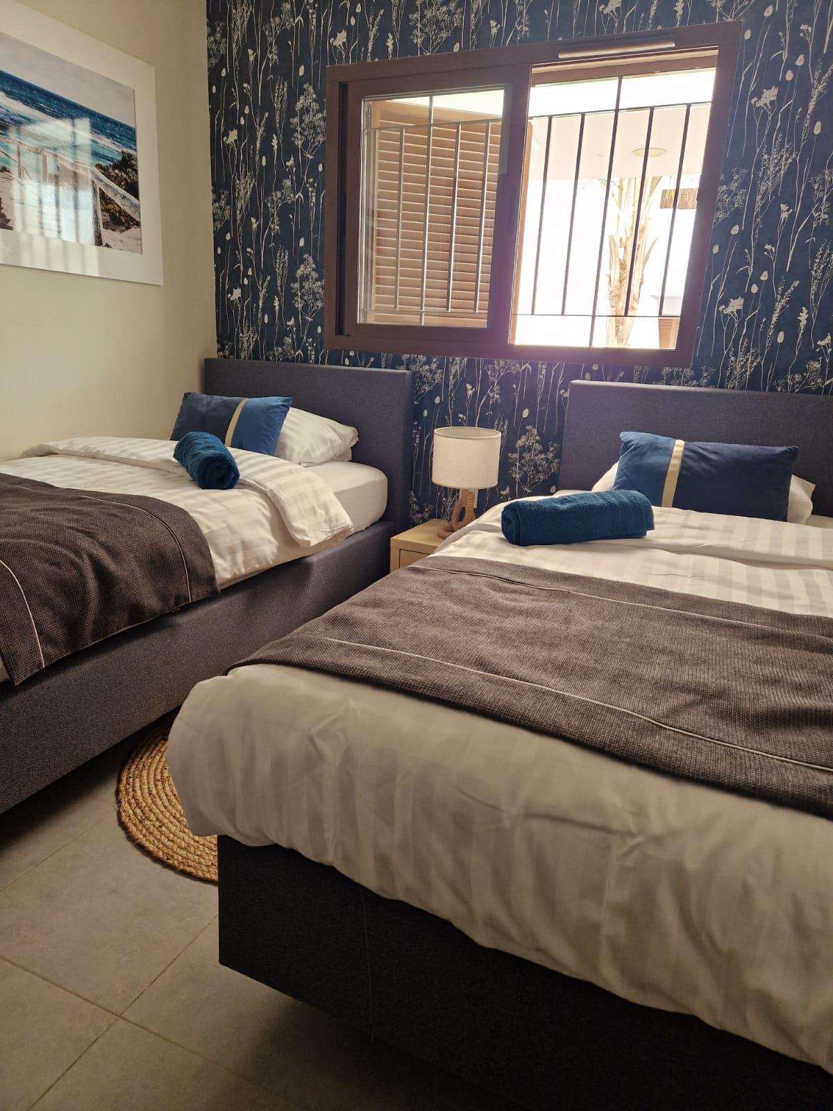 Slaapkamer met airconditioning en 2 eenpersoonsbedden (200 x 80 cm)