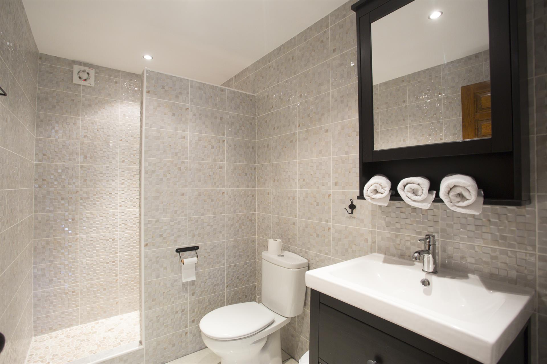- en-suite badkamer met enkele wastafel, douche en toilet