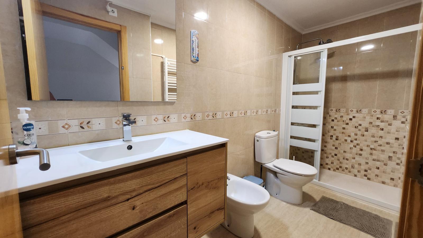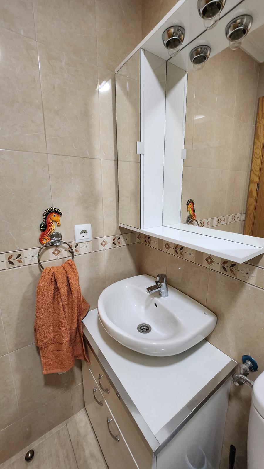 Badkamer met wastafel, bad/douchecombinatie, bidet en toilet
